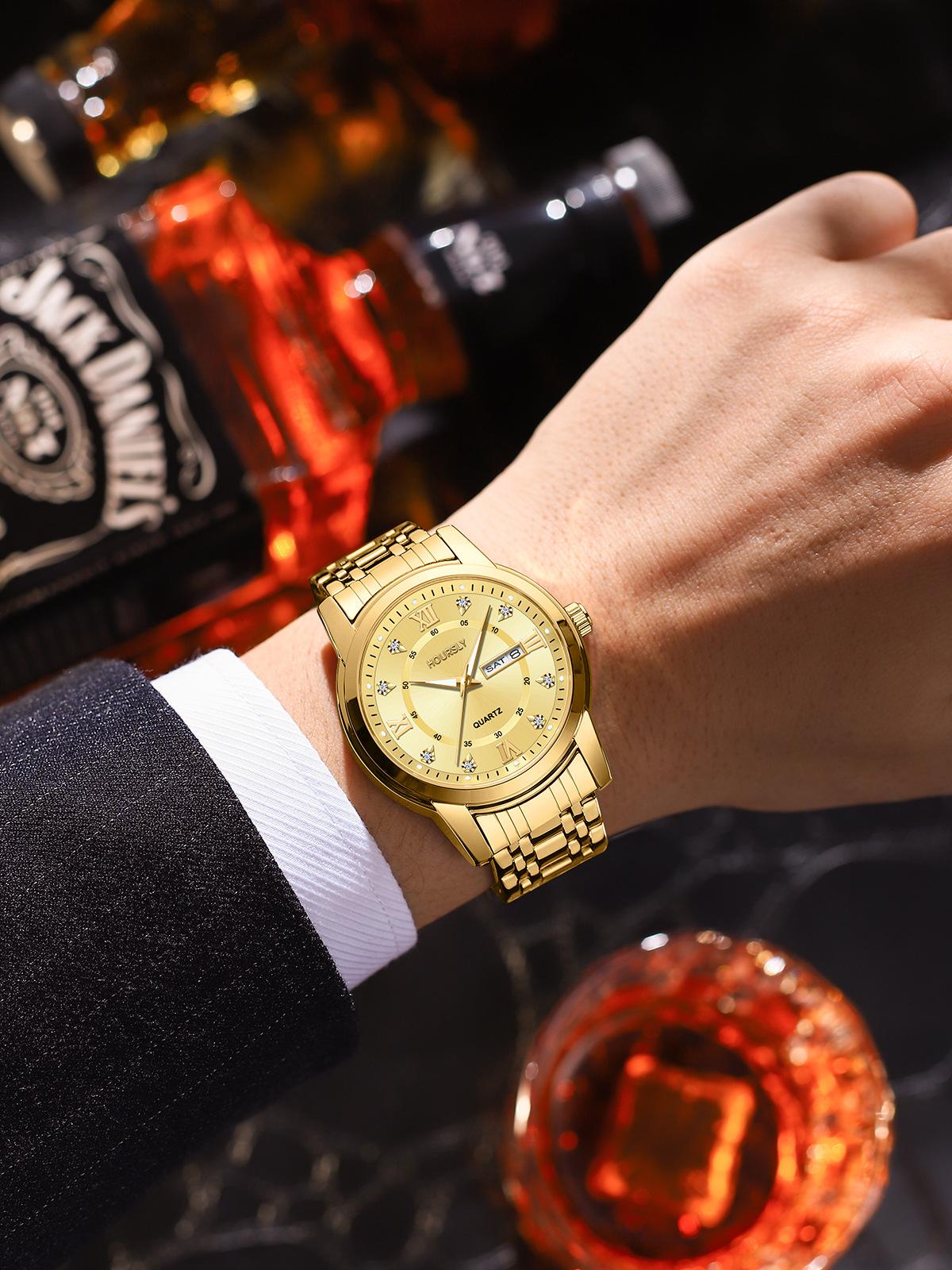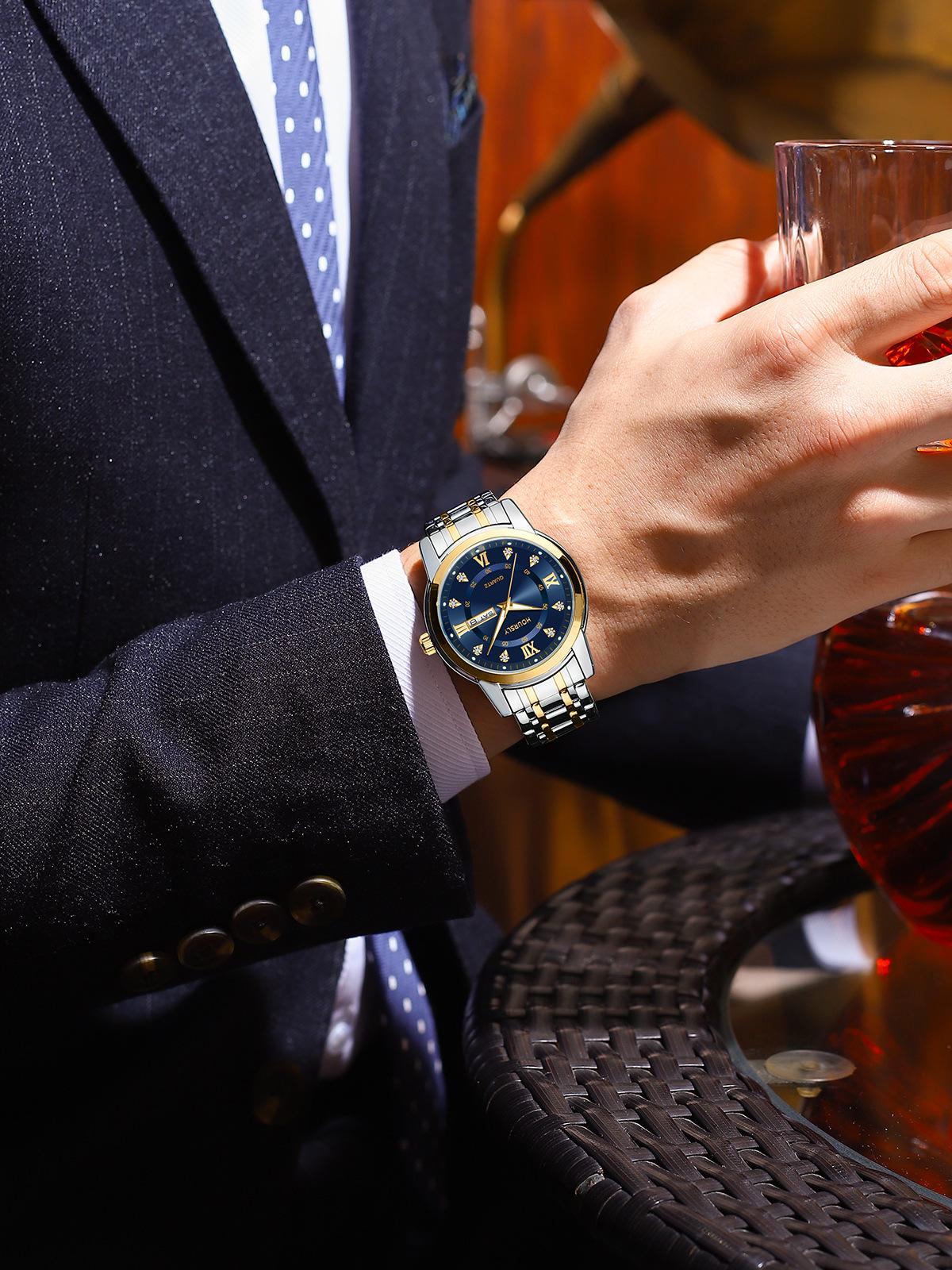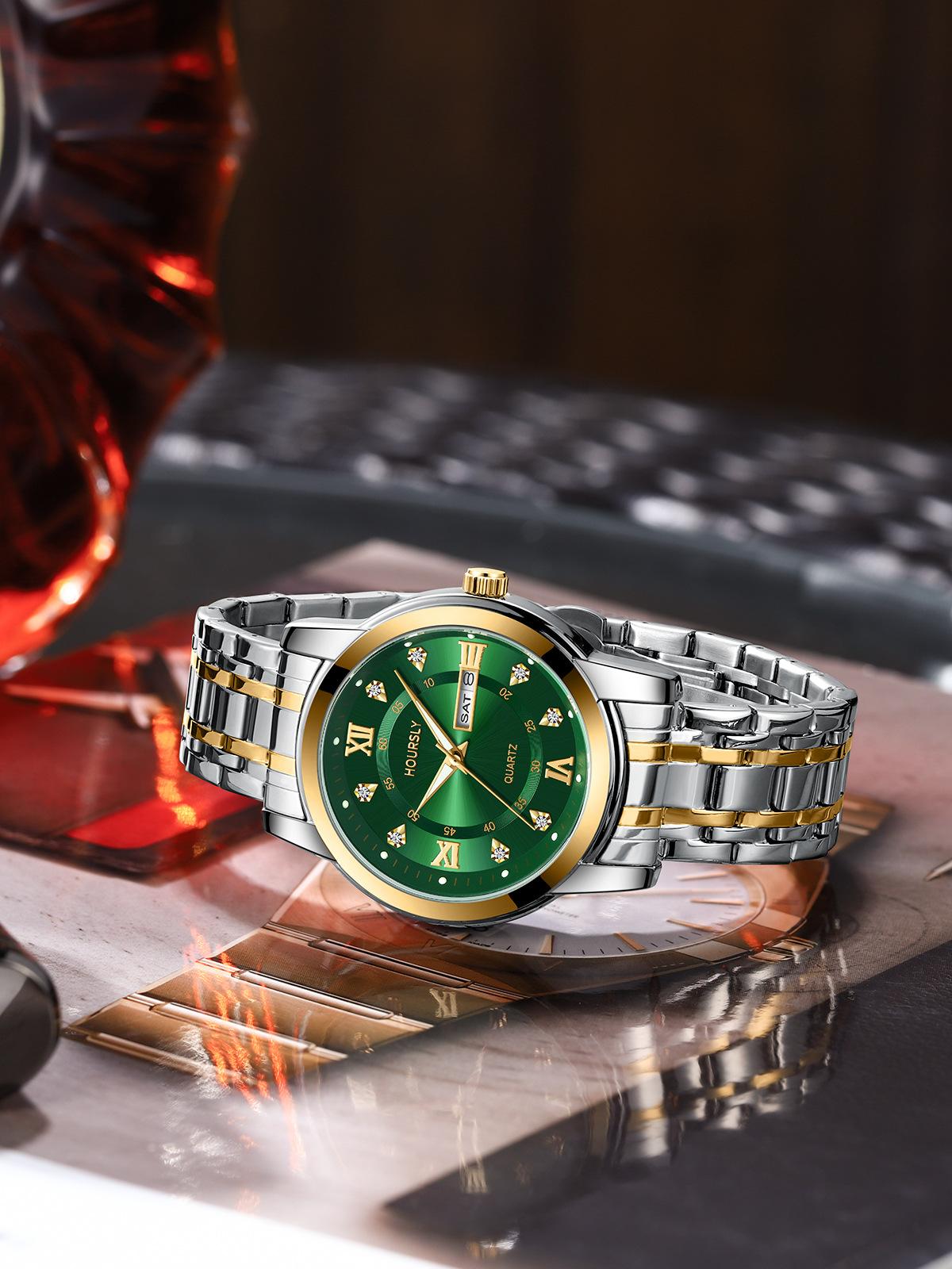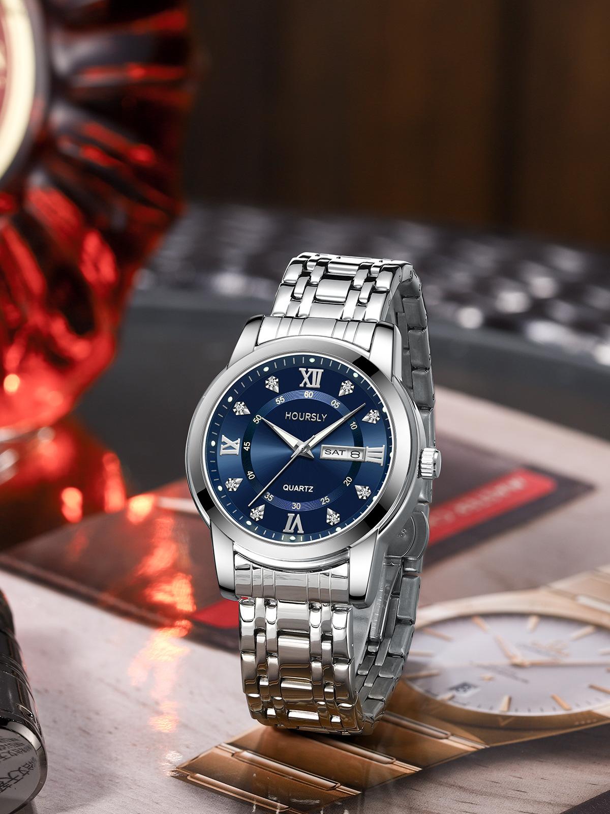 Relojes de cuarzo de negocios de moda, resistentes al agua, luminosos, con calendario, correa de acero con incrustaciones de diamantes para hombres y mujeres, venta al por mayor, una generación de cabello
