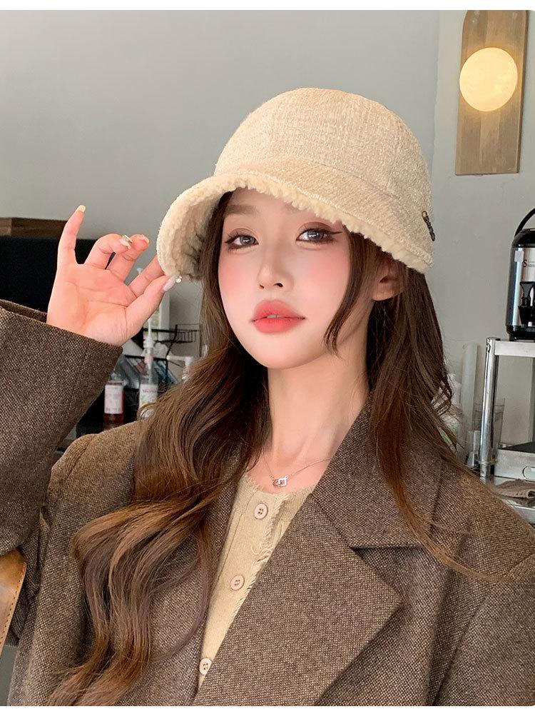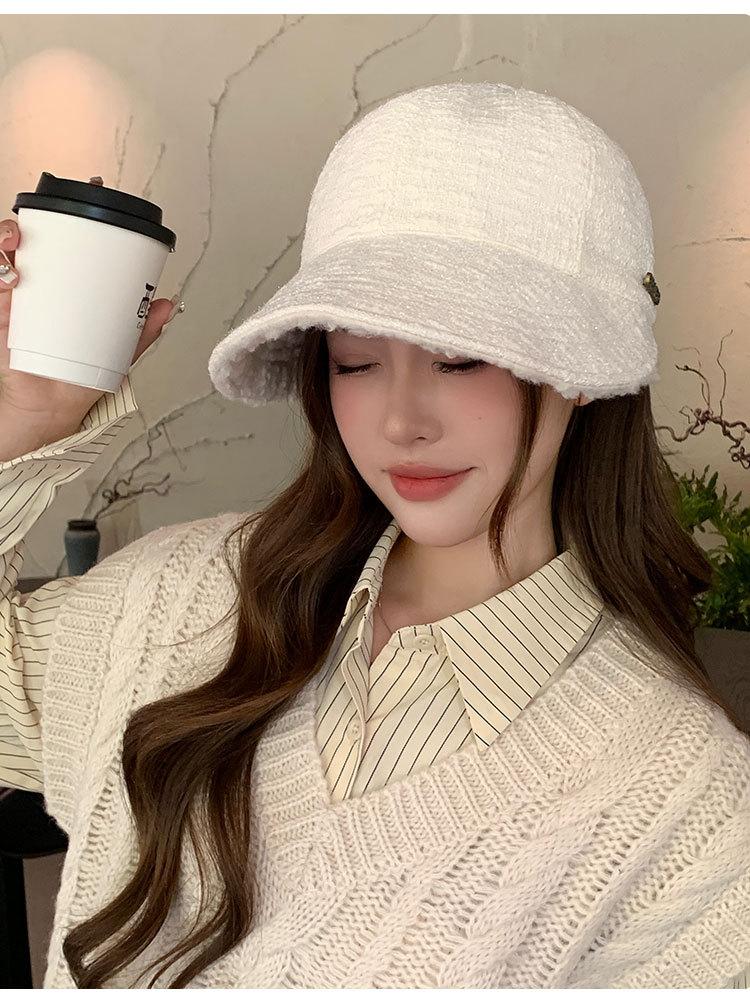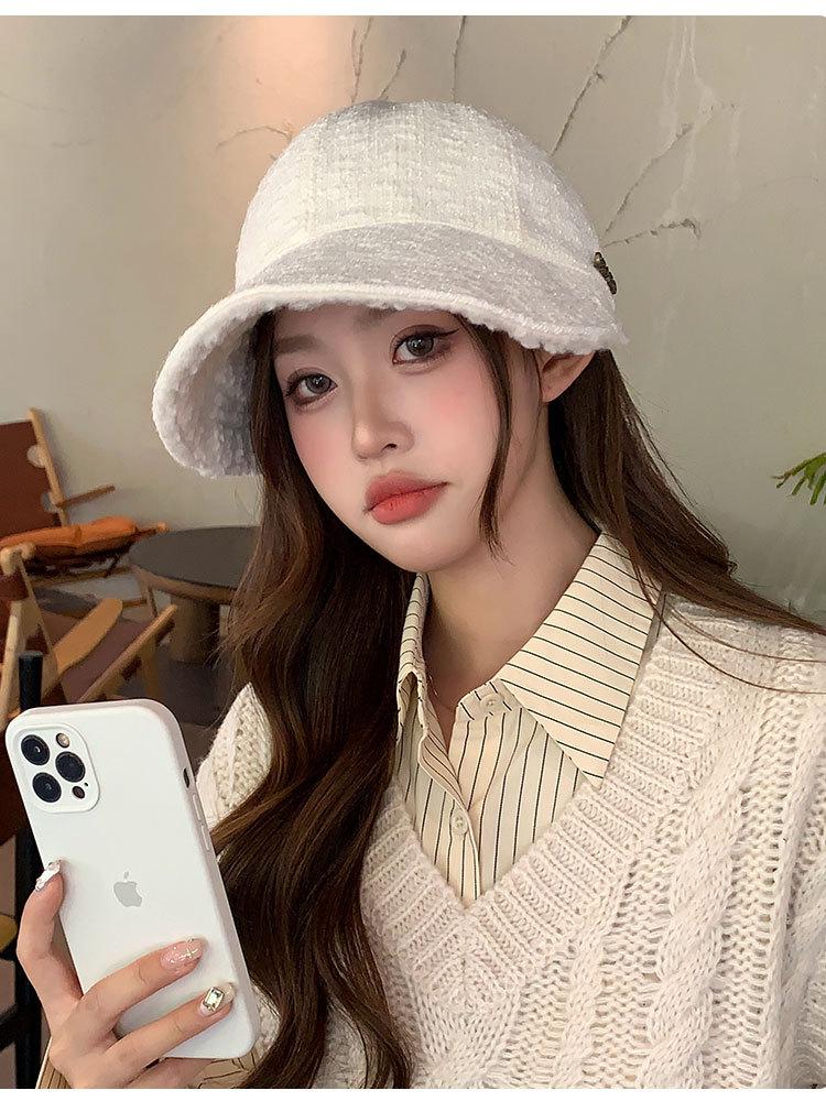 Nueva gorra Zhao Lusi del mismo estilo para mujer 2024, nueva gorra cálida de otoño e invierno con ala ancha y ala grande.