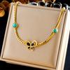 Same style stainless steel long necklace four-leaf clover gold diamond