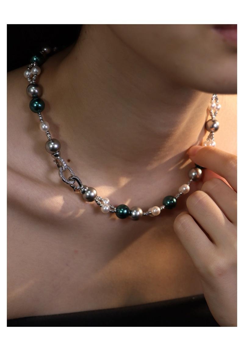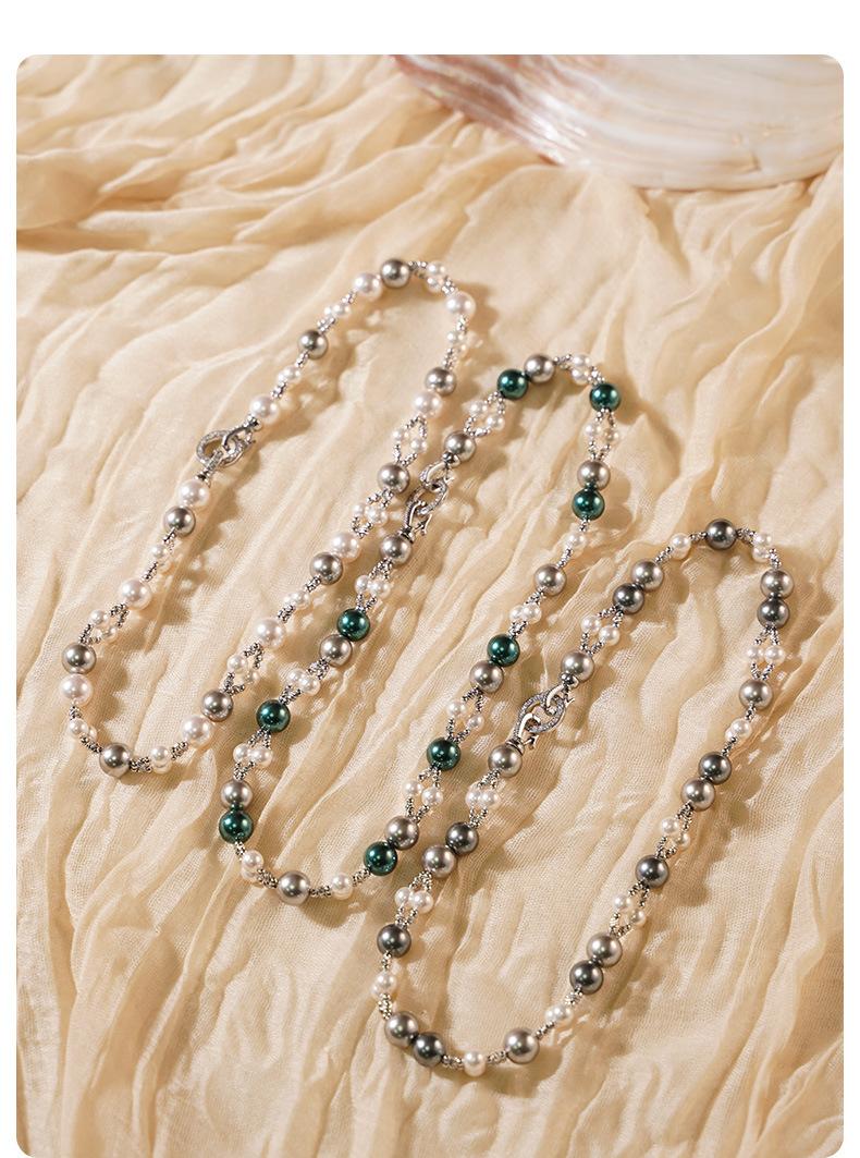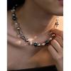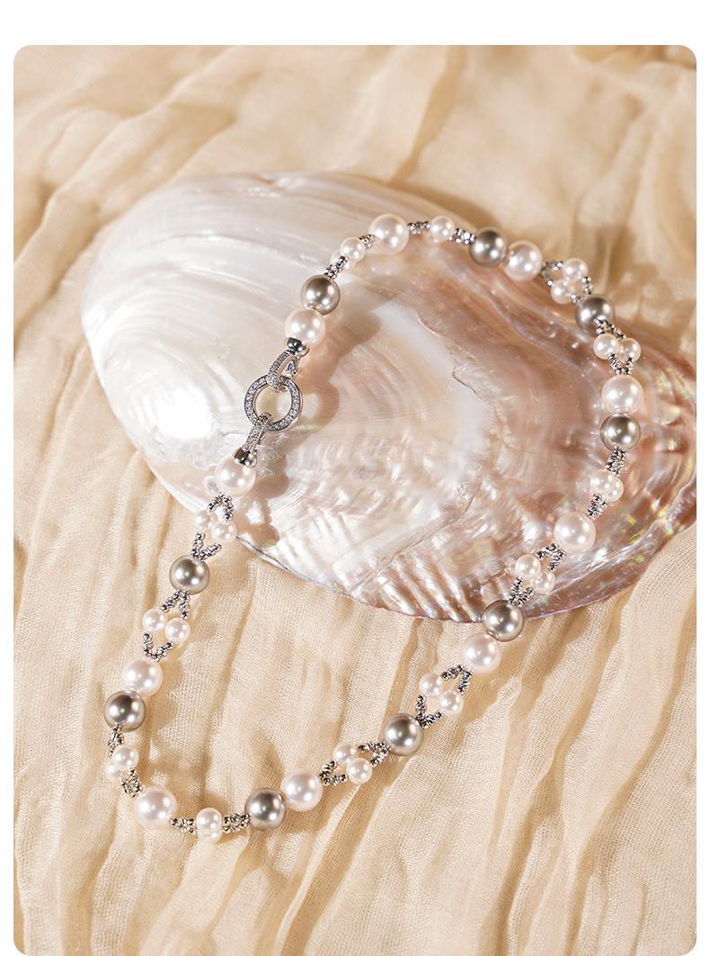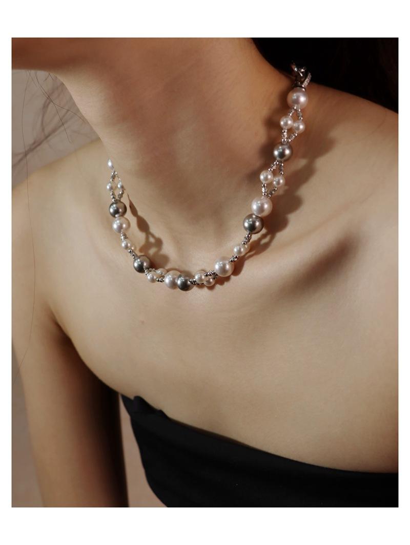 Collar de Perlas Irregulares Tejidas de Lujo Ligero Estilo Francés, Temperamento Nicho de Alta Gama Versátil Cadena para Clavícula Cadena para Suéter