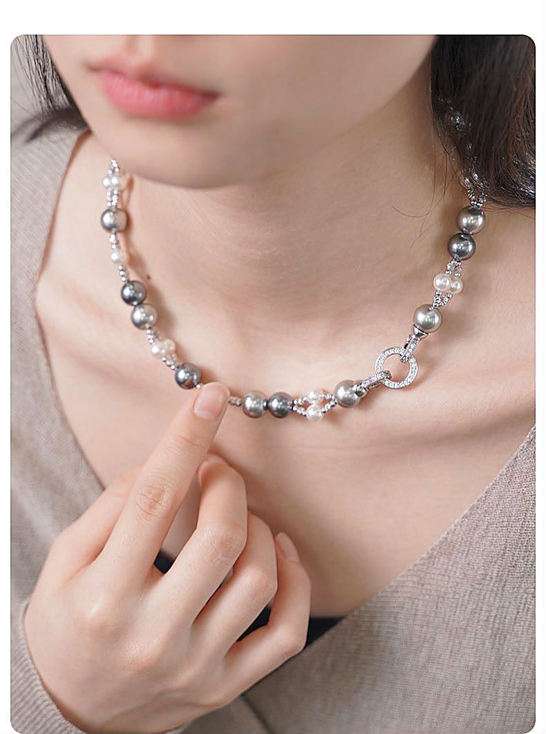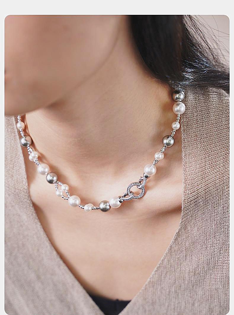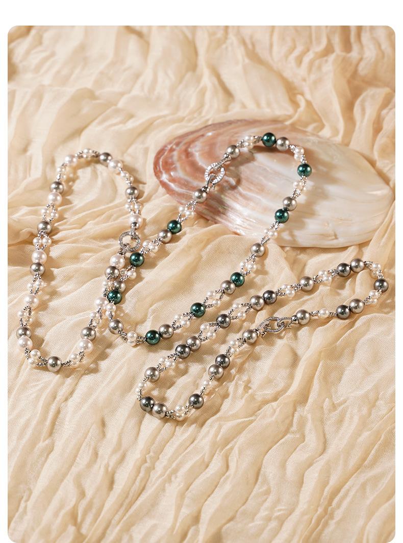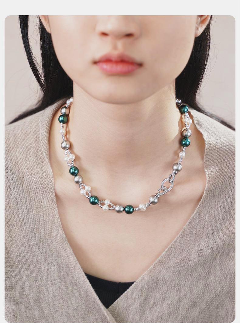 Collar de Perlas Irregulares Tejidas de Lujo Ligero Estilo Francés, Temperamento Nicho de Alta Gama Versátil Cadena para Clavícula Cadena para Suéter