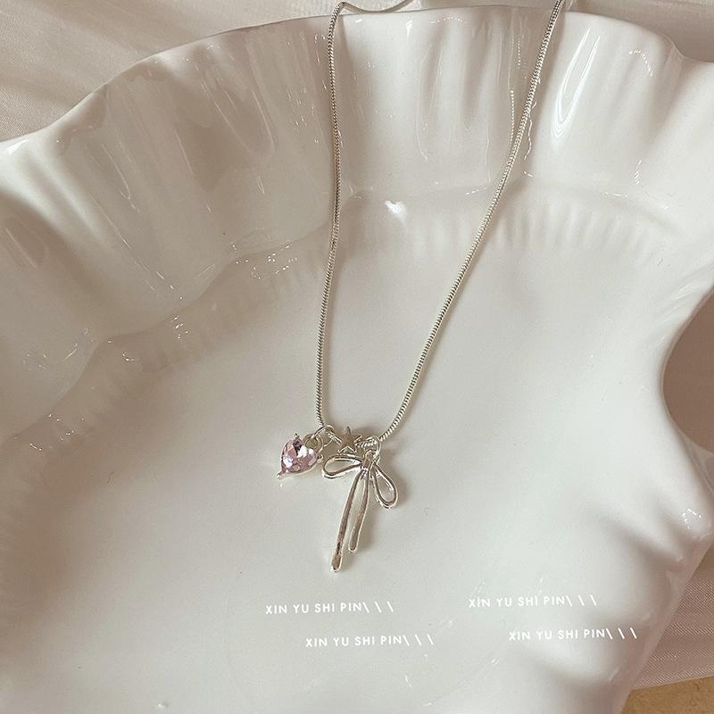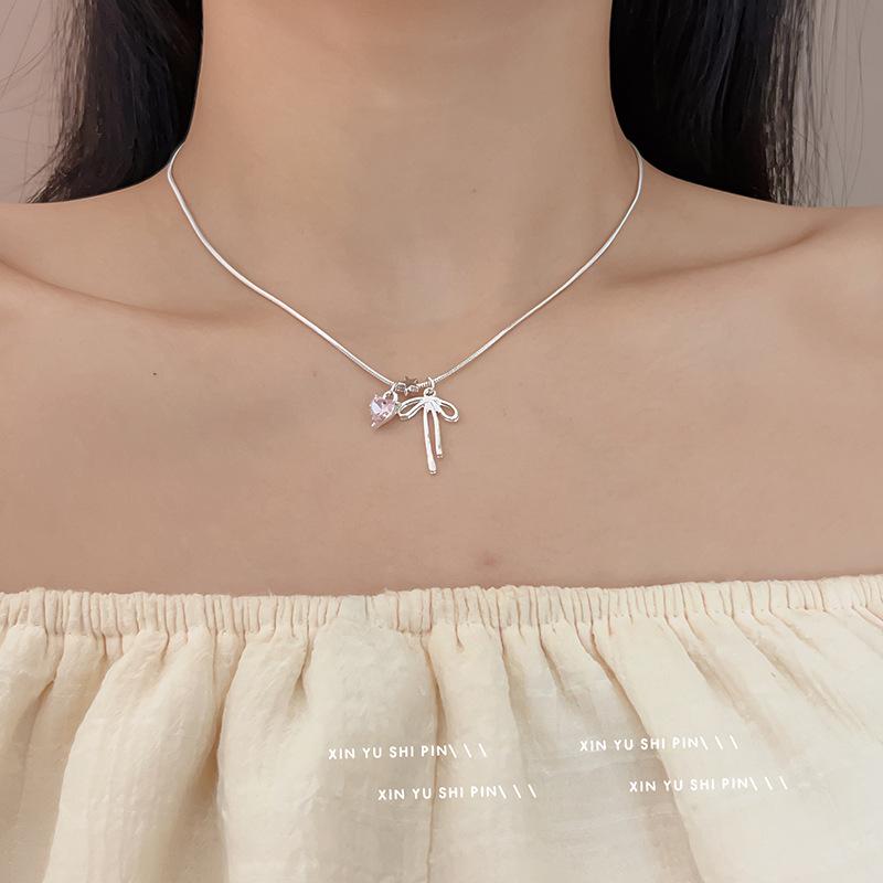 Collar francés con estrella de amor rosa dulce para mujer, pulsera elegante de lujo ligera, pulsera de cadena de clavícula exquisita que combina con todo, accesorios