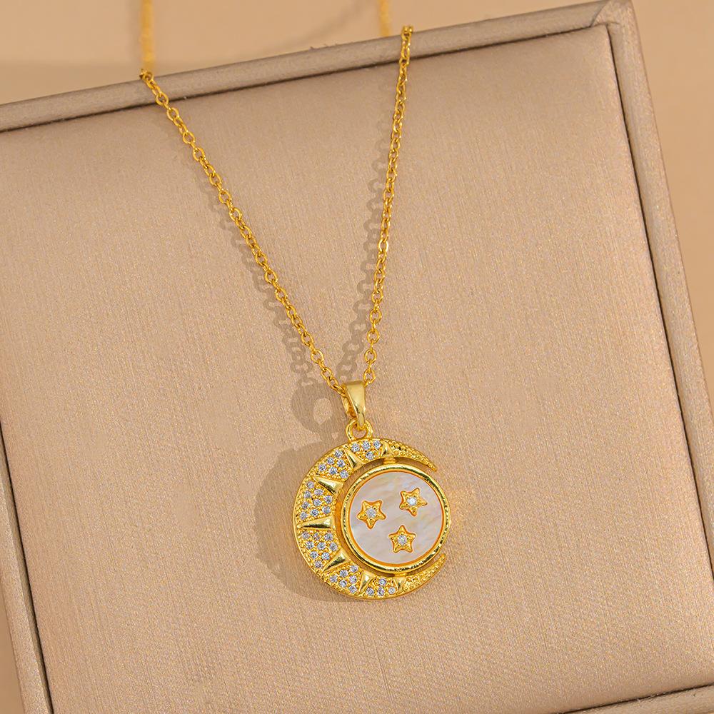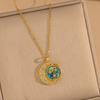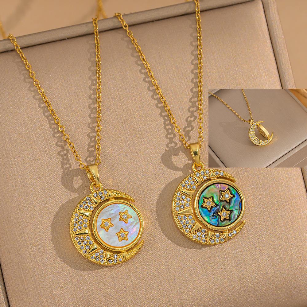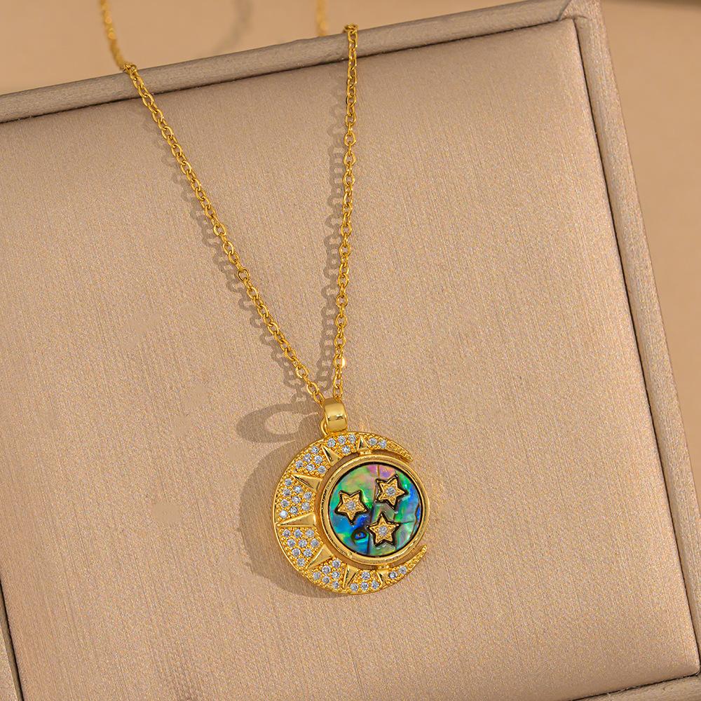 Collar de acero inoxidable con colgante de piedra natural vintage de oro de 18 quilates y circonitas para mujer, estilo INS, con el mismo estilo de celebración de Internet europeo y americano.