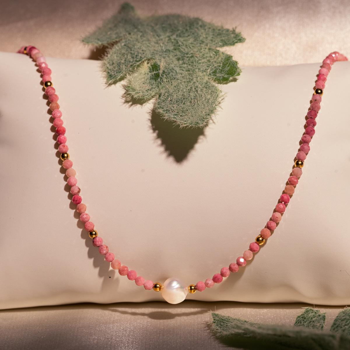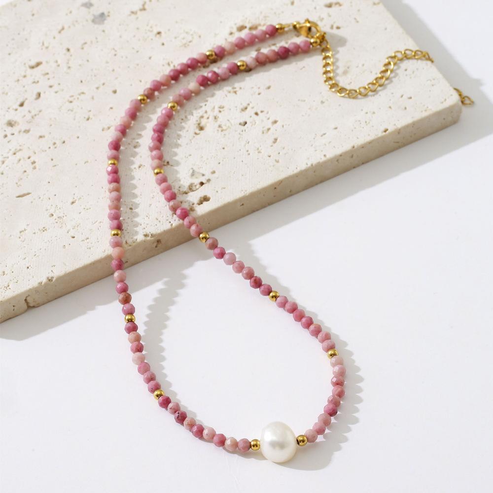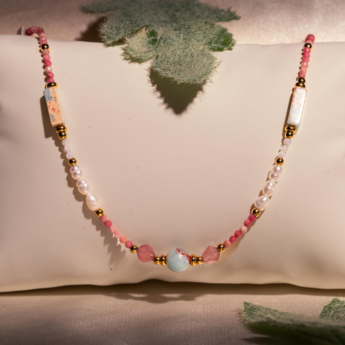 Nuevo Collar de Cuentas de Piedra Natural Apiladas con Cristal Rosa y Redstone y Perla de Agua Dulce Cadena Clavícula Joyería de Alta Gama