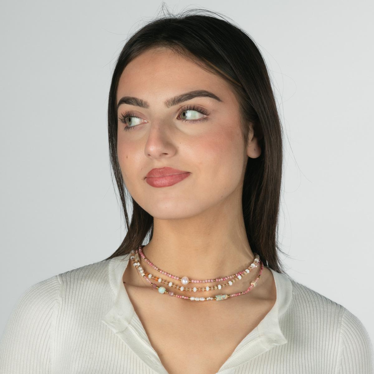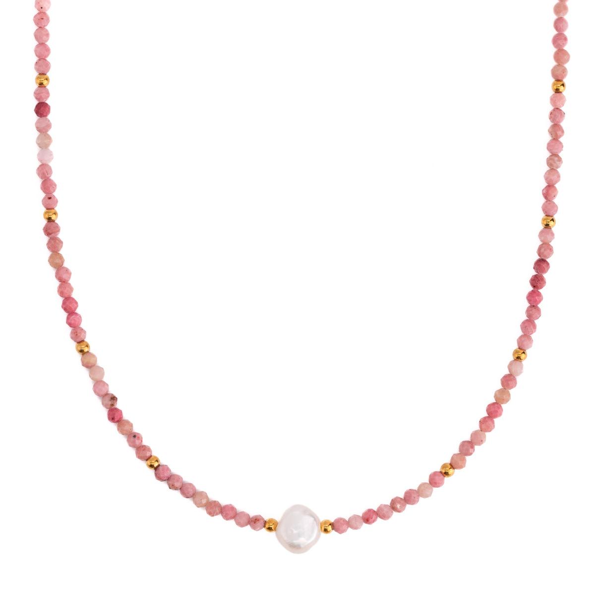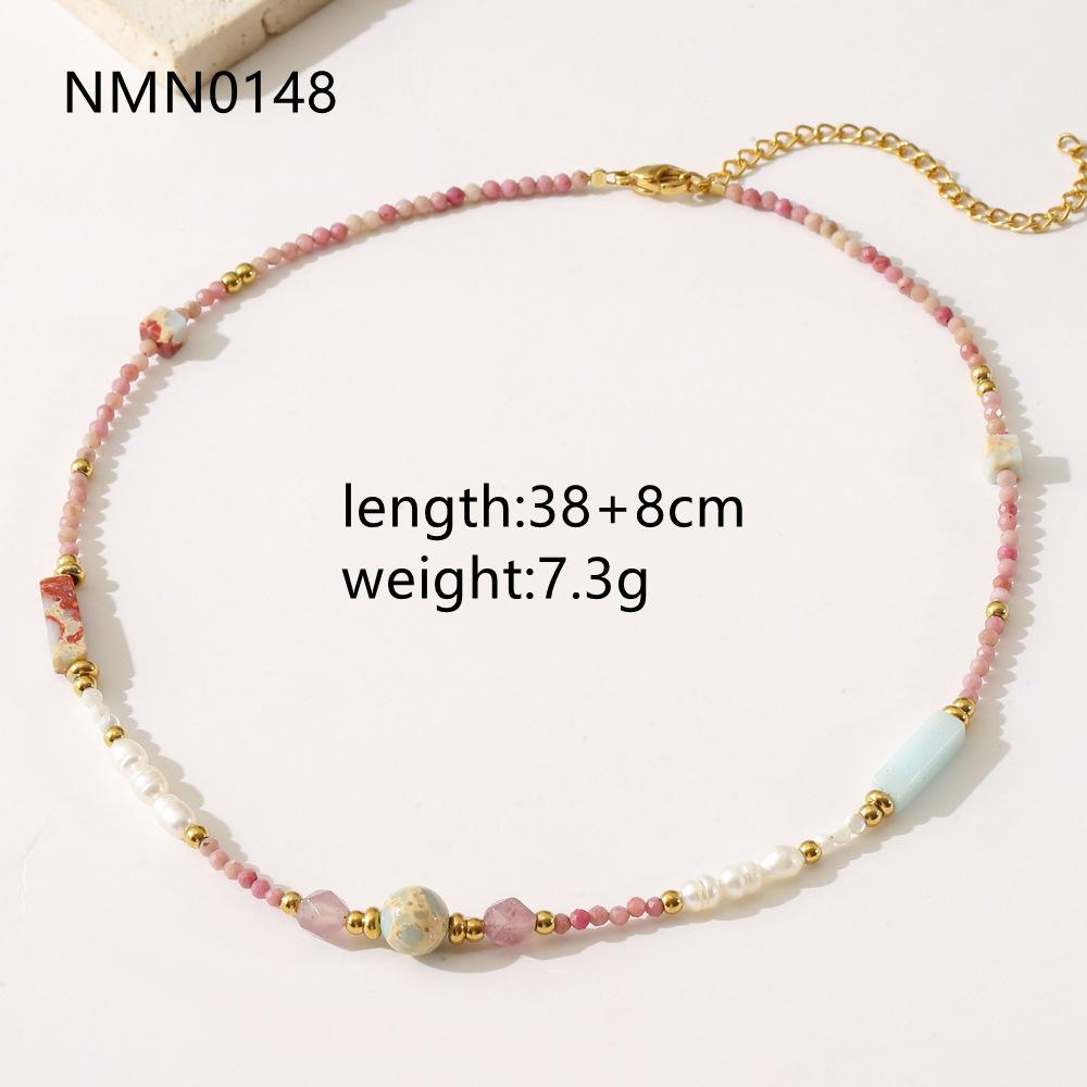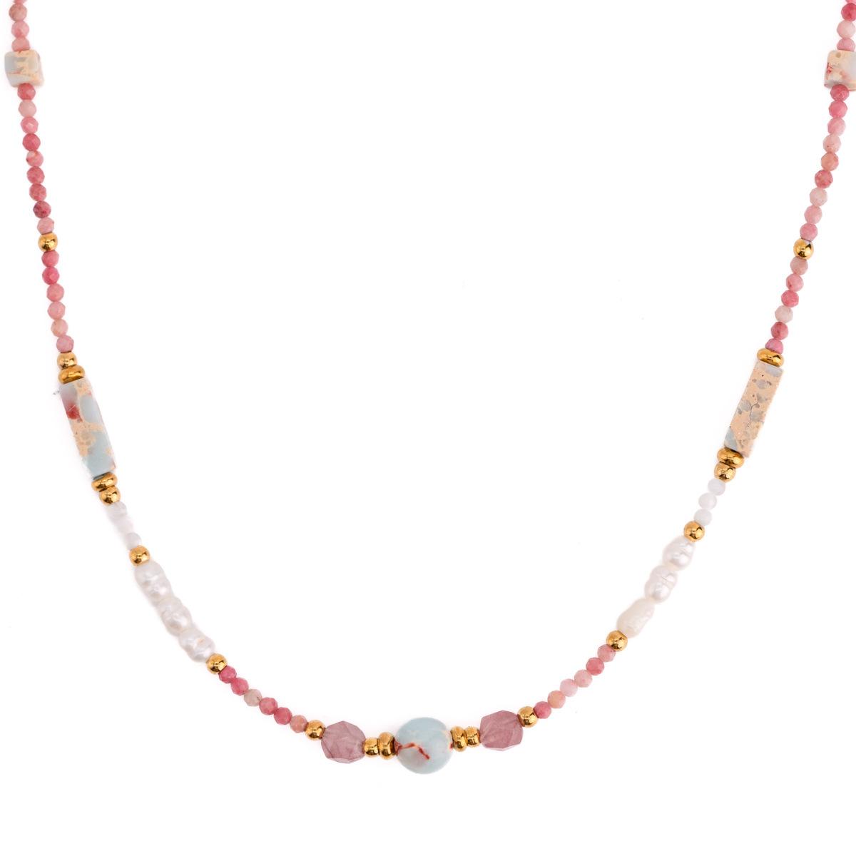 Nuevo Collar de Cuentas de Piedra Natural Apiladas con Cristal Rosa y Redstone y Perla de Agua Dulce Cadena Clavícula Joyería de Alta Gama