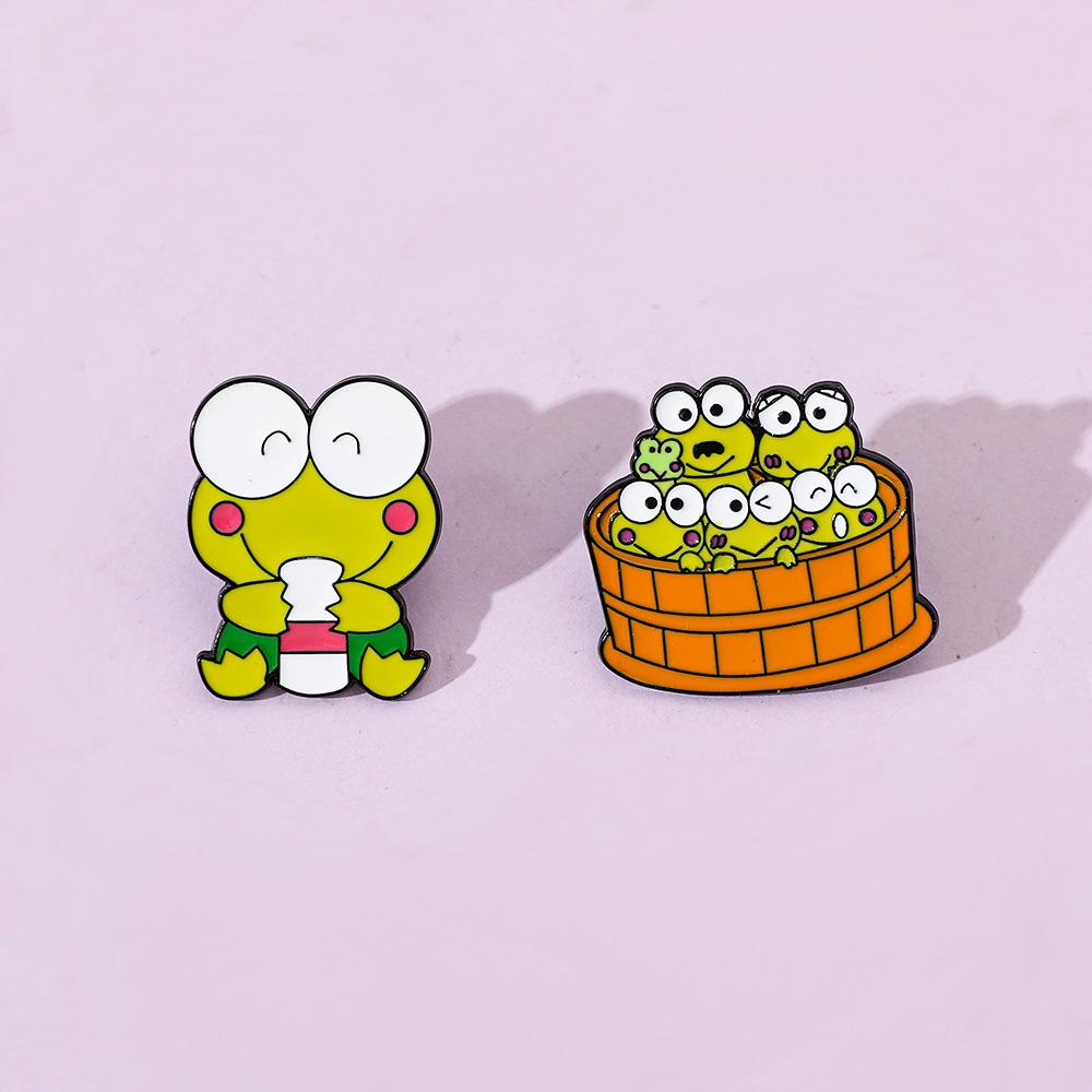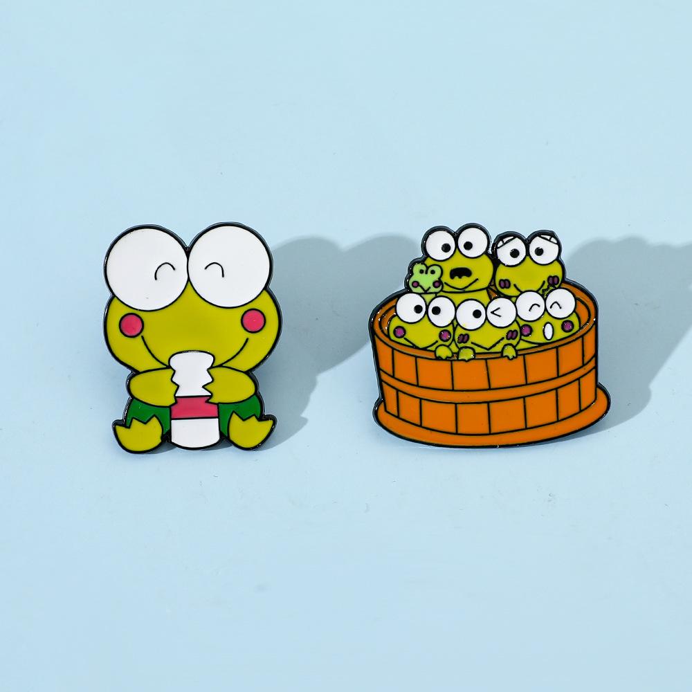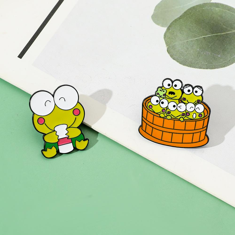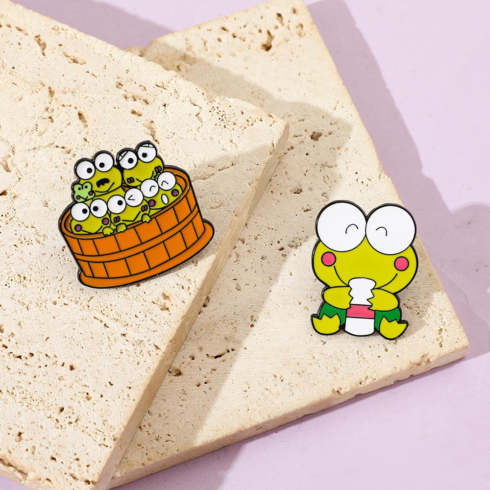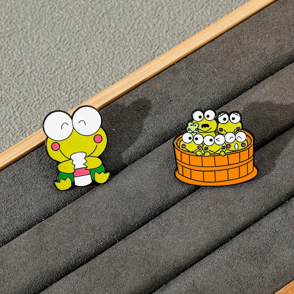 Broche de Aleación de Rana de Dibujos Animados Japoneses Lindo de Ojos Grandes Insignia de Metal Sanrio Pin de Metal de Rana Pequeña Accesorios