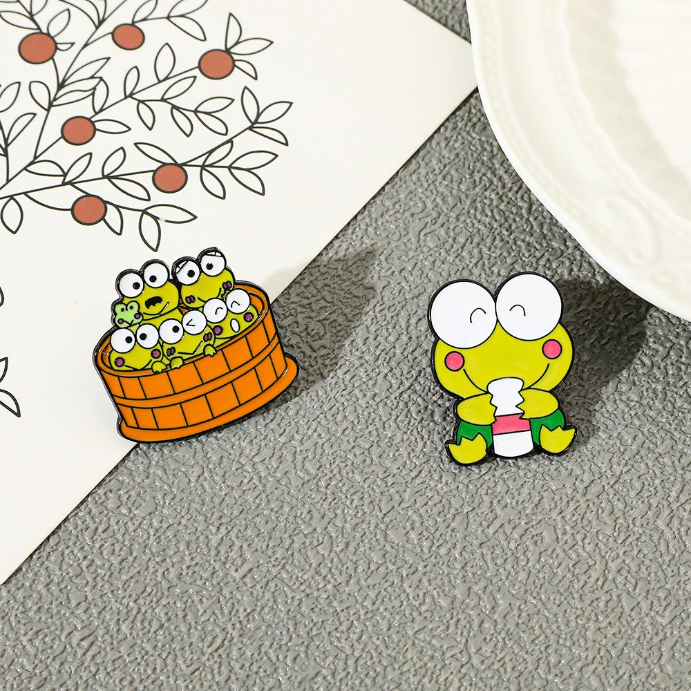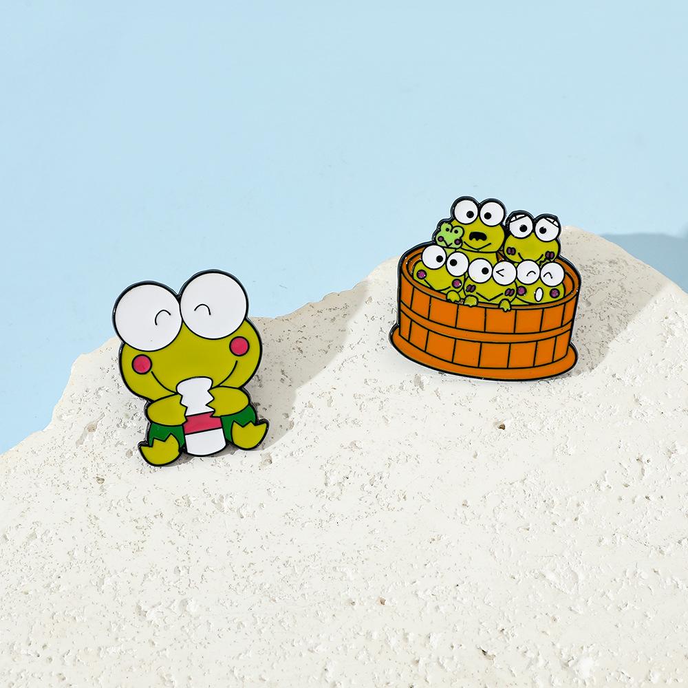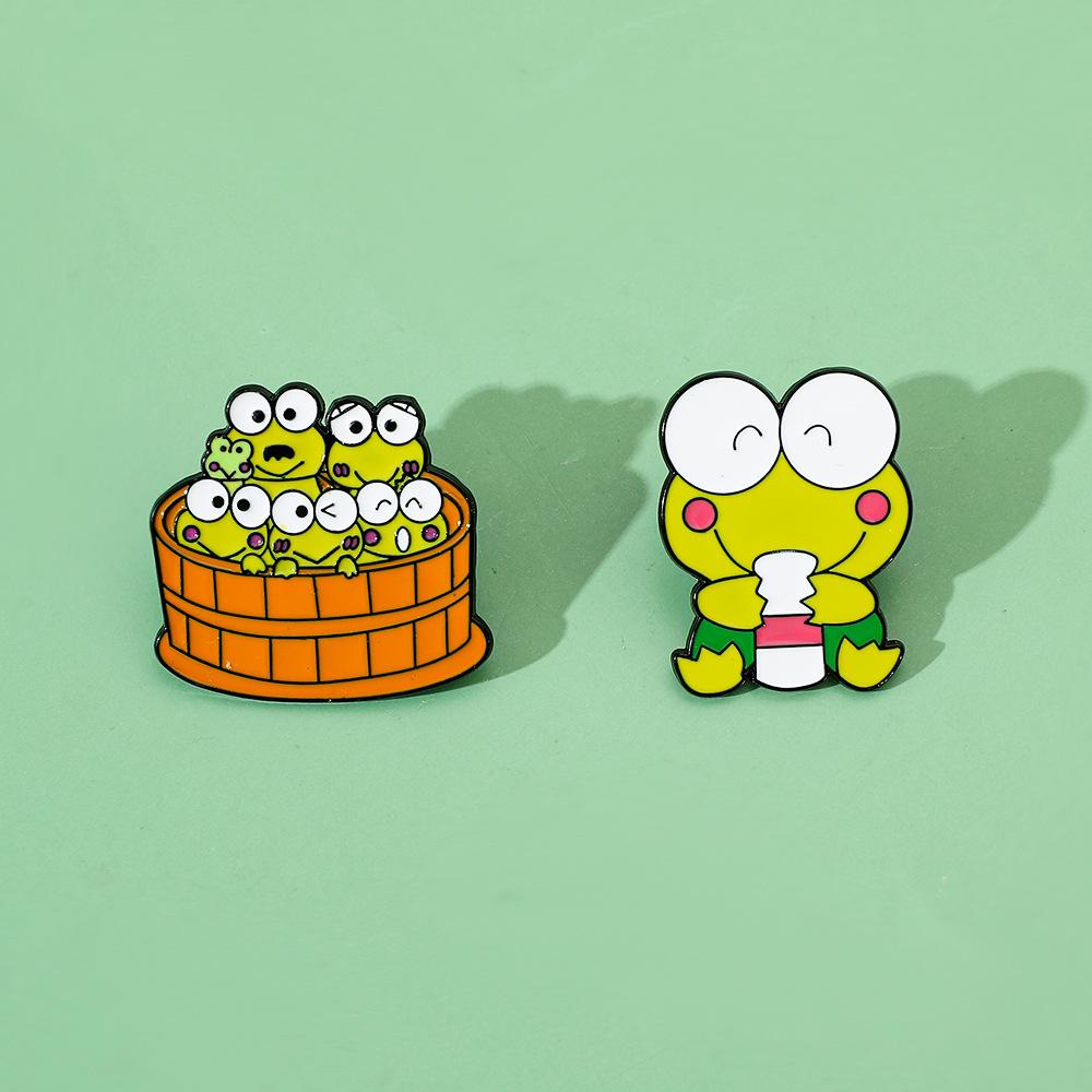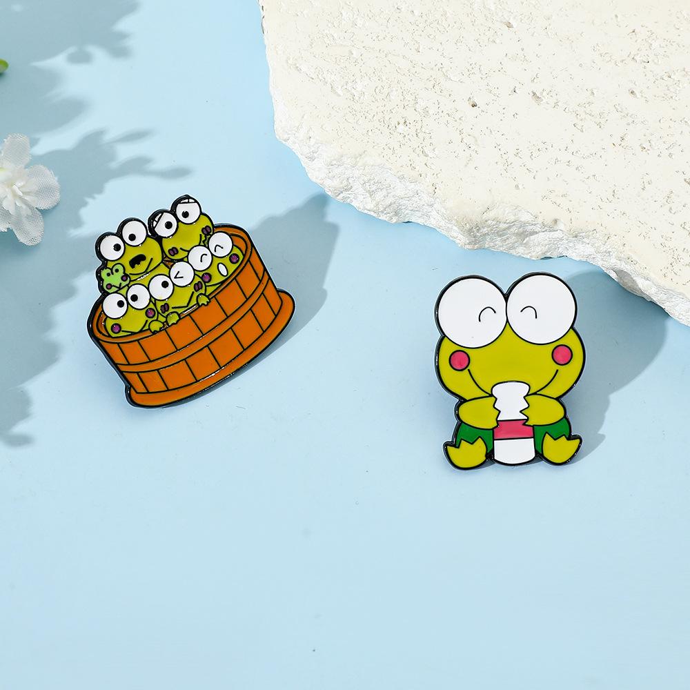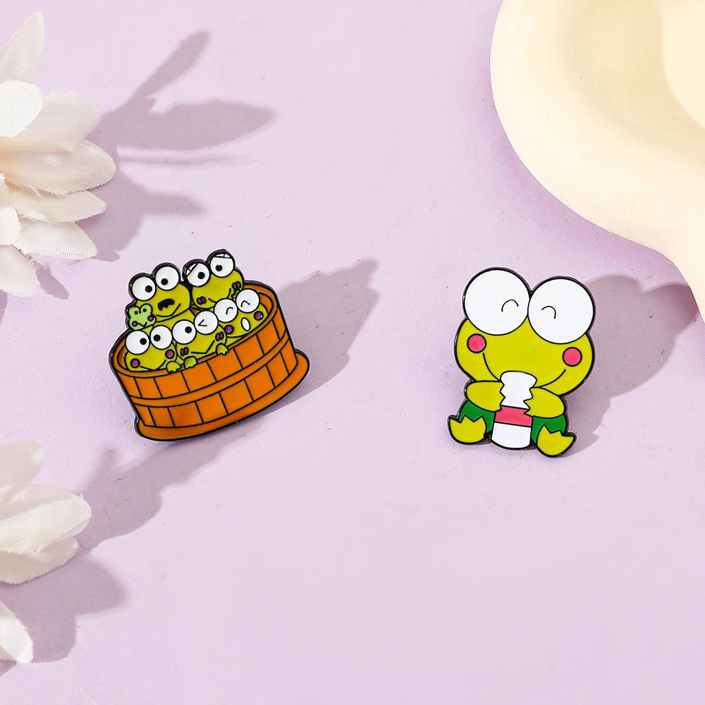 Broche de Aleación de Rana de Dibujos Animados Japoneses Lindo de Ojos Grandes Insignia de Metal Sanrio Pin de Metal de Rana Pequeña Accesorios