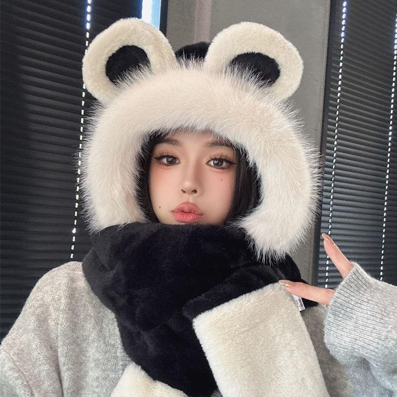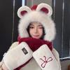 Nuevo Set de Tres Piezas de Gorro, Bufanda y Guantes de Peluche de Oso con Lazo para Mujer, Estilo Coreano Lindo, Gorro Grueso y Cálido