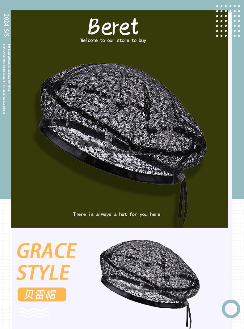 Boina de Lentejuelas de Encaje de Moda para Hombre y Mujer, Gorra de Pintor de Capullo Hueca Transpirable, Moda de Estilo Coreano, Sombrero de Moda Combinable