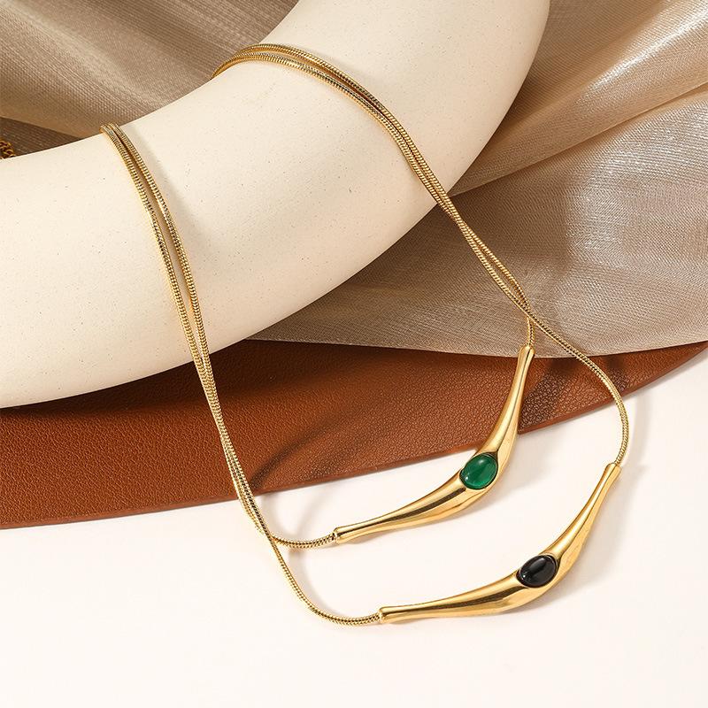 Xl 110084 Gold+greenstone, Xl110084Gold+black stone