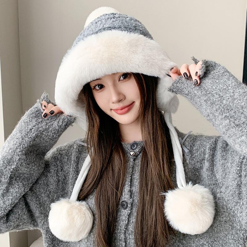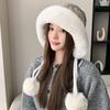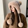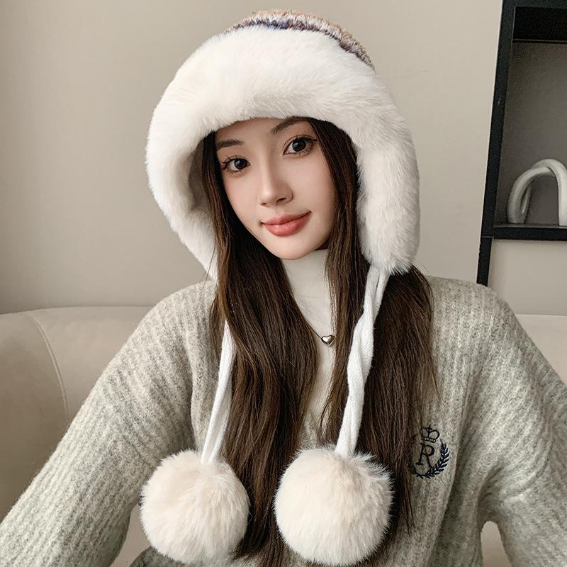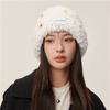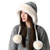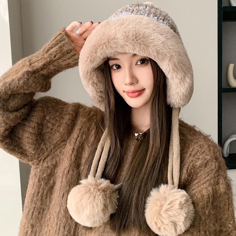 Sombrero Cálido de Invierno de Terciopelo Tejido Estilo Coreano Sombrero Colorido con Pompon de Piel Sombrero de Lana Grueso y Afelpado Sombrero de Mujer
