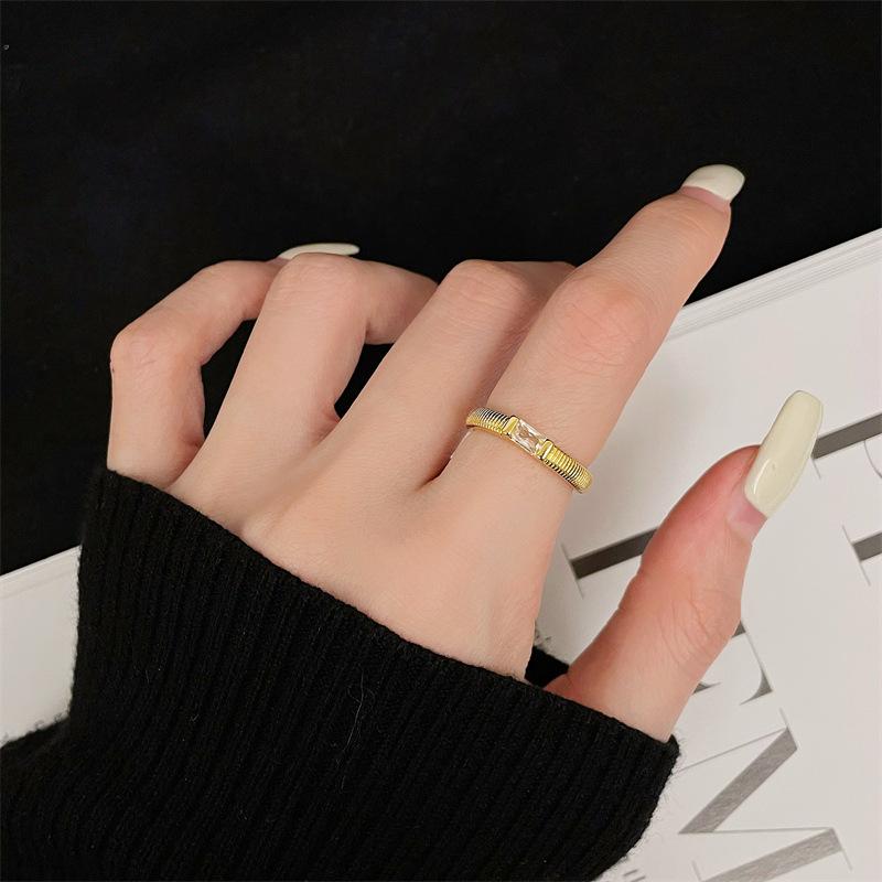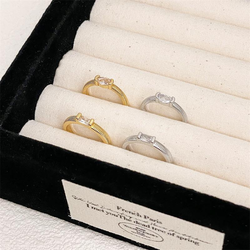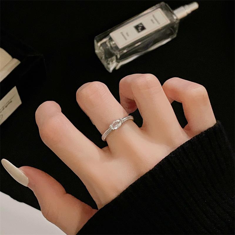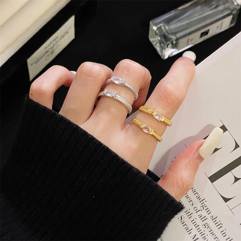 Anillo Simple y Moderno de Circonita en Forma de Huevo con Dibujo de Alambre Antiguo Medio, Anillo Abierto Cuadrado en T que Combina con Todo, Anillo de Dedo Elegante y Exquisito para Mujer