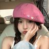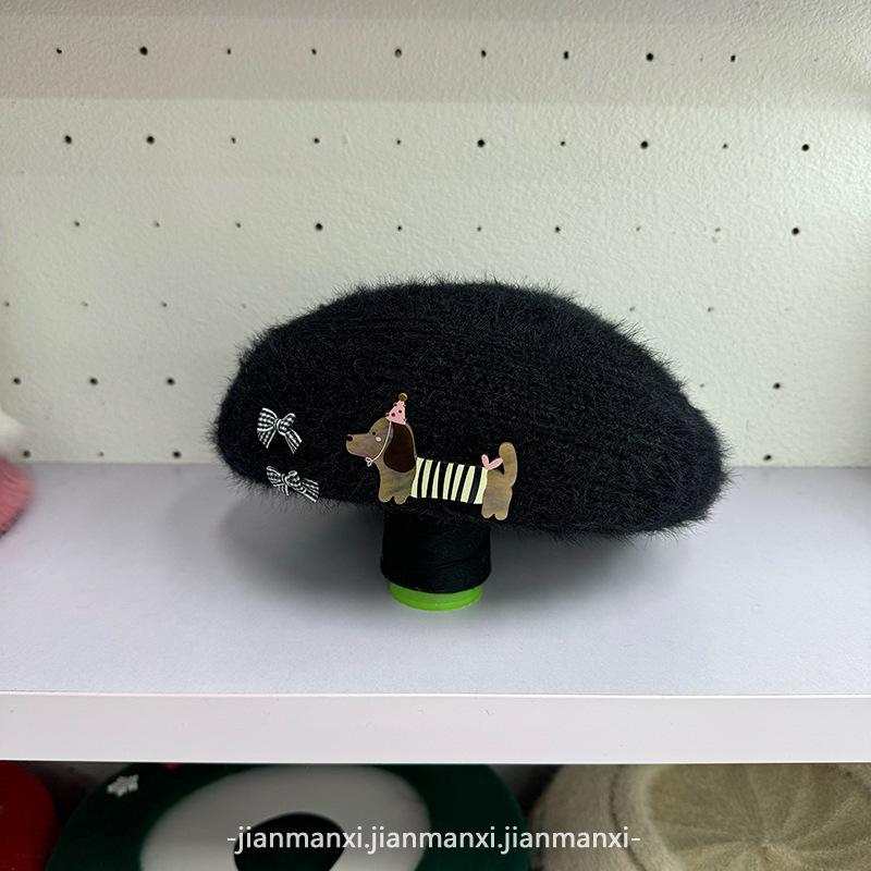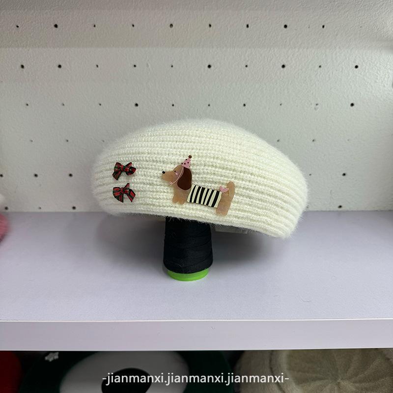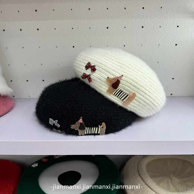 Boina decorativa de estilo coreano con bonito cachorro para mujer, gorro de pintor Wai de cabeza grande que combina con todo para lucir un rostro brillante, gorro de punto pequeño.