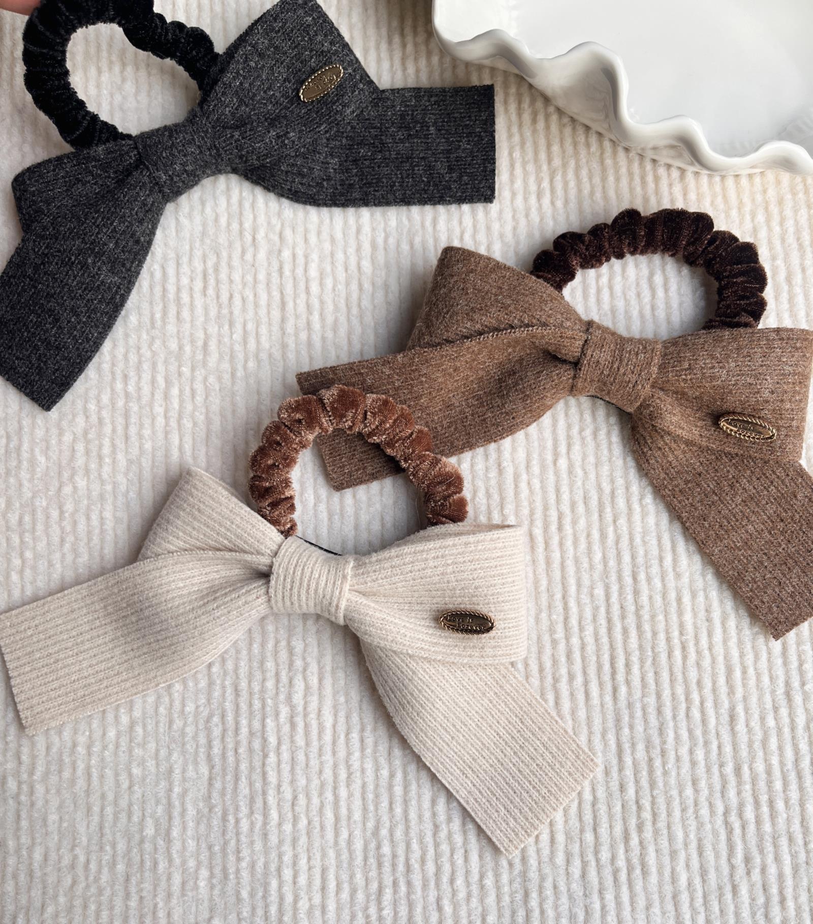 Gray bow headband, Off-white bow headband, Brown bow hair rope