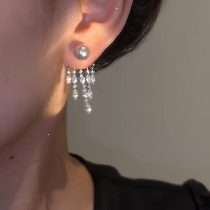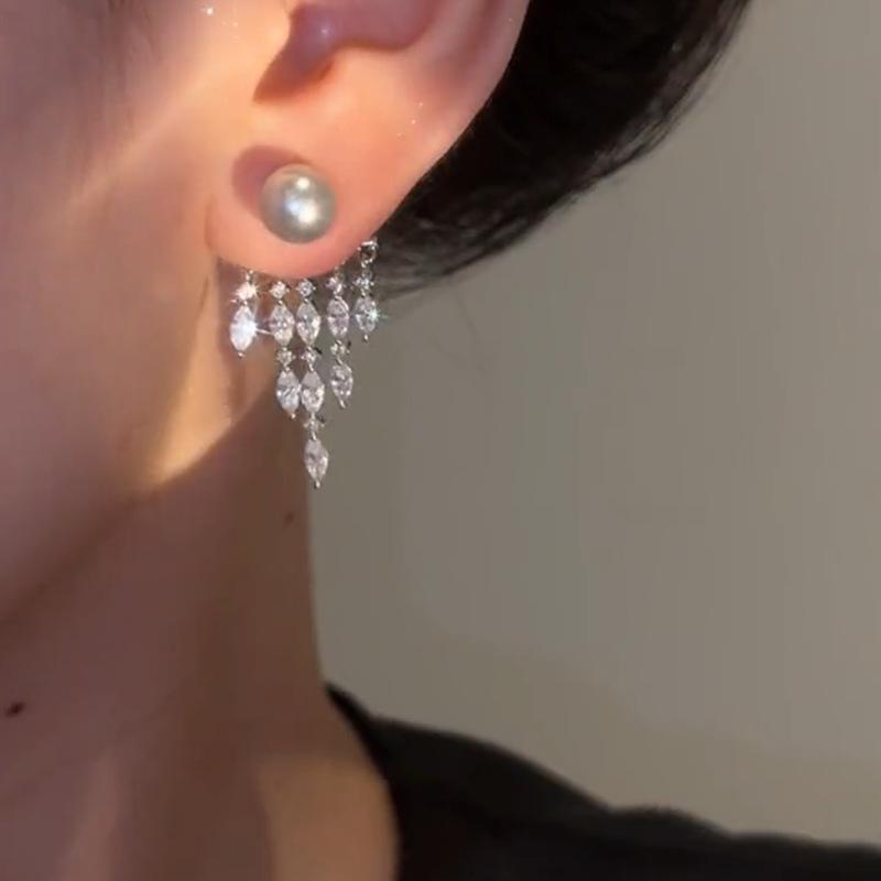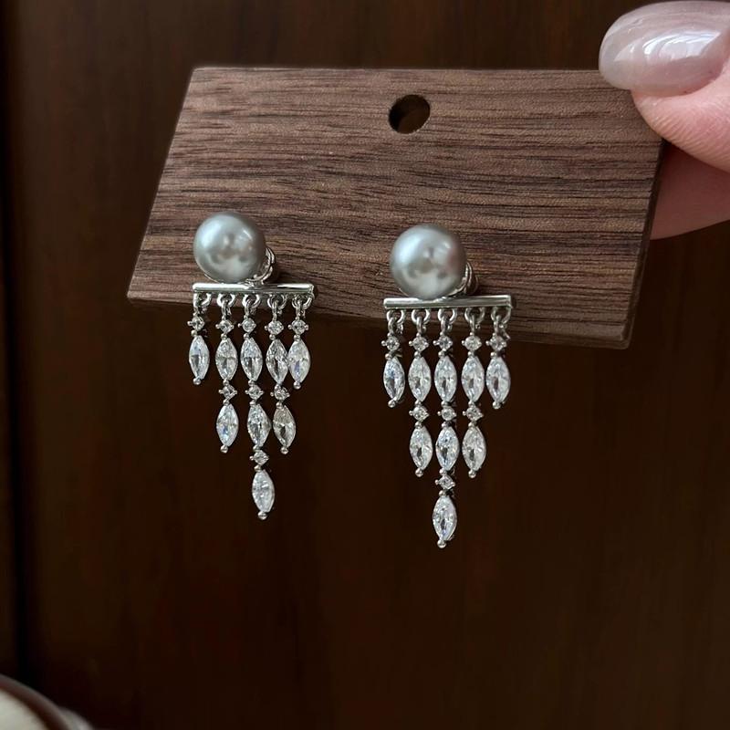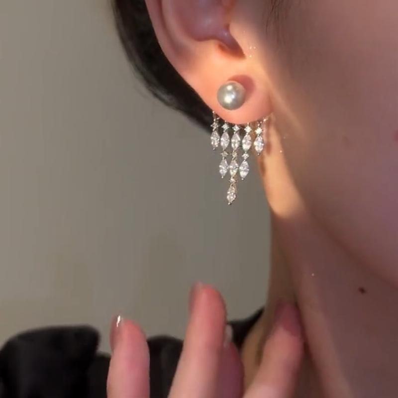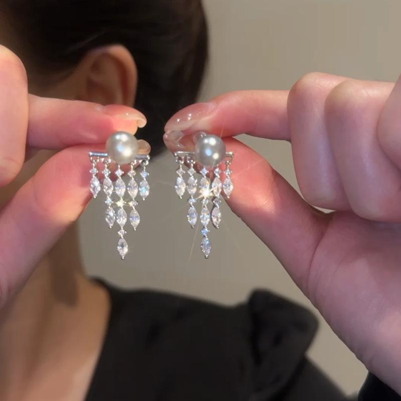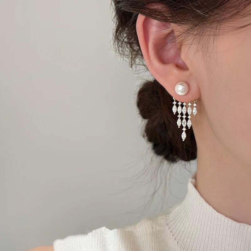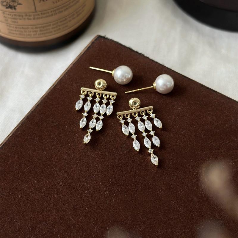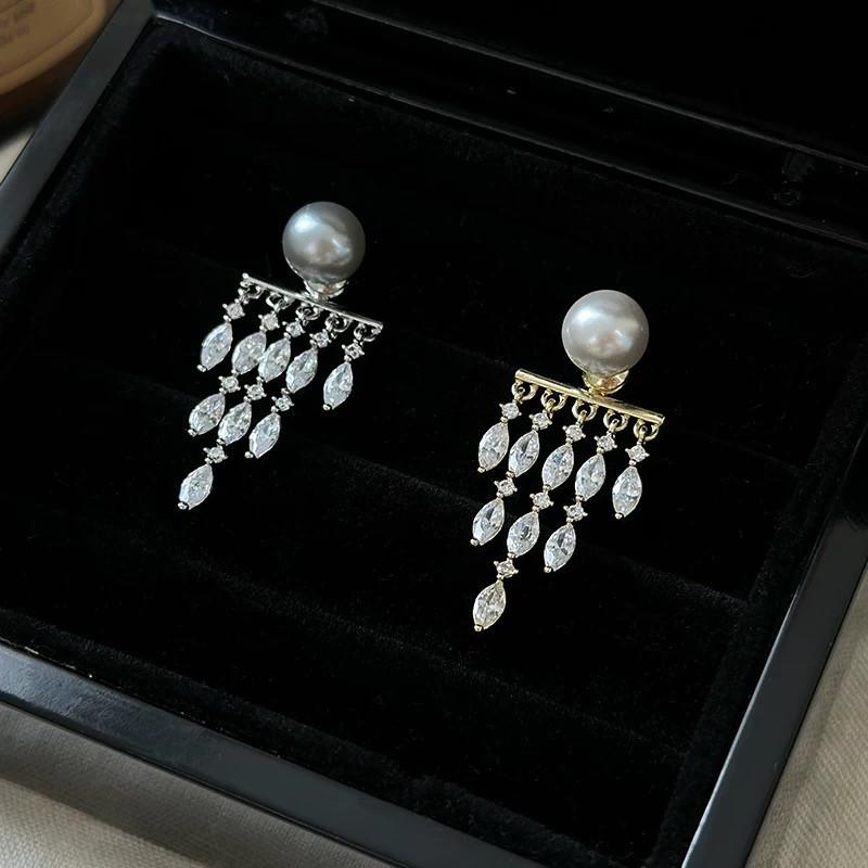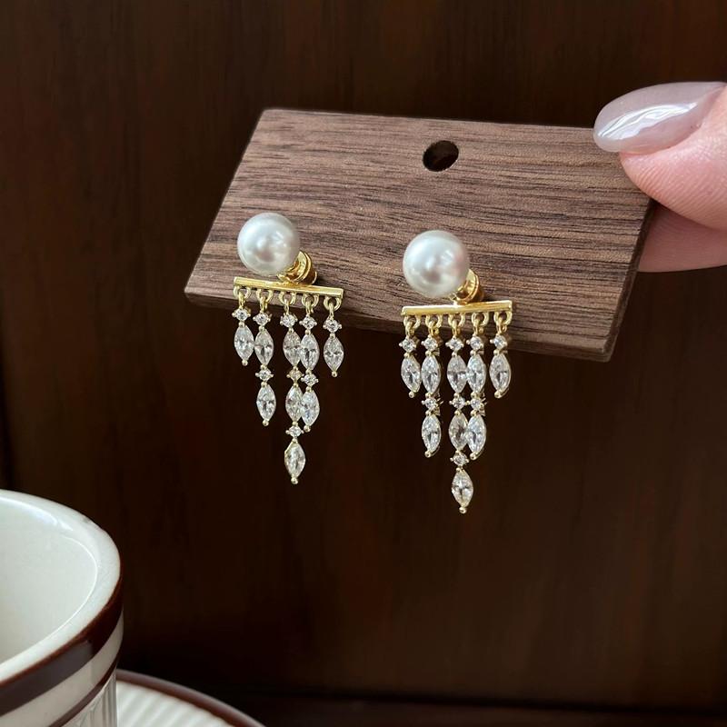 Compra Pendientes de perlas con borlas de circonitas microincrustadas de estilo francés para mujer, ligeros, de lujo, de alta gama, combinables con todo, elegantes y de moda. al por mayor en Joom.pro
