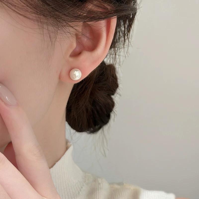 Gold-white pearl s925 silver needle, Silver - gray pearl s925 silver needle