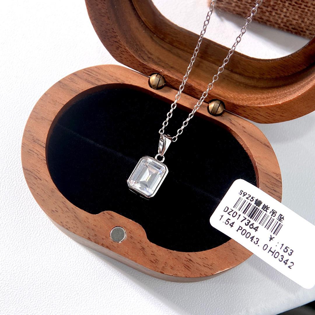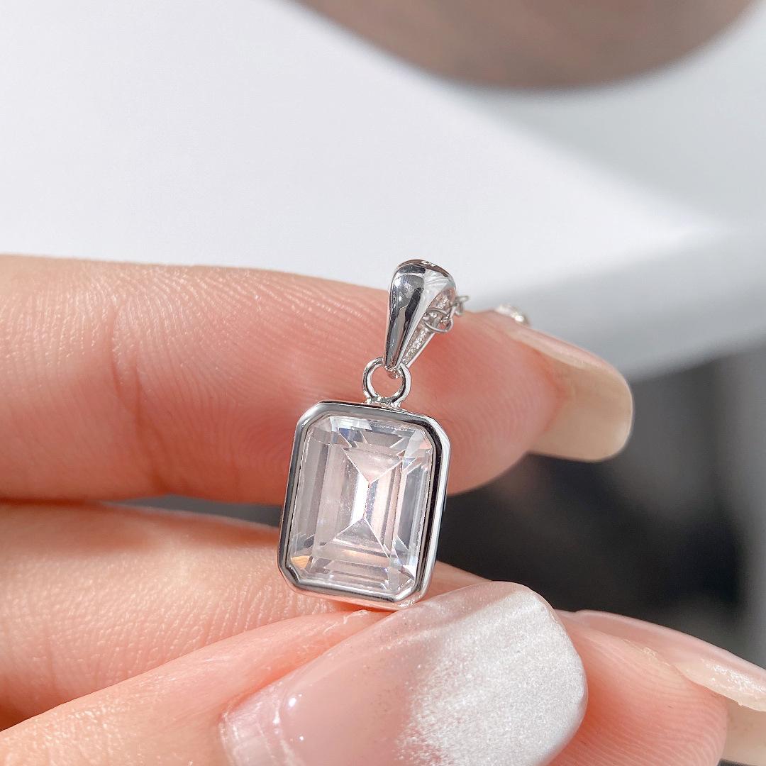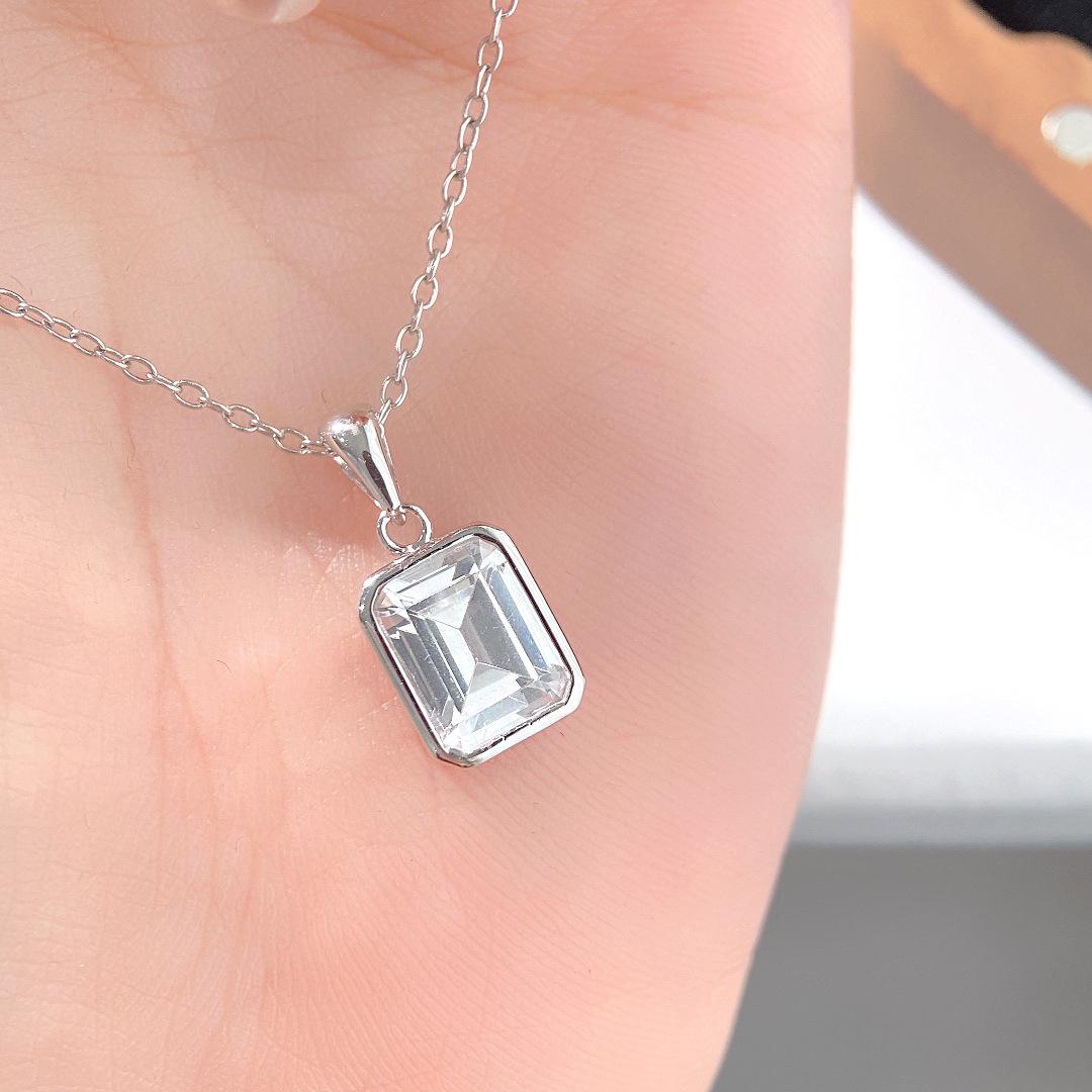 Collar de plata de ley S925 con forma de roca cuadrada y azúcar, elegante y sencillo, con colgante de circonita cuadrada y cadena para clavícula.