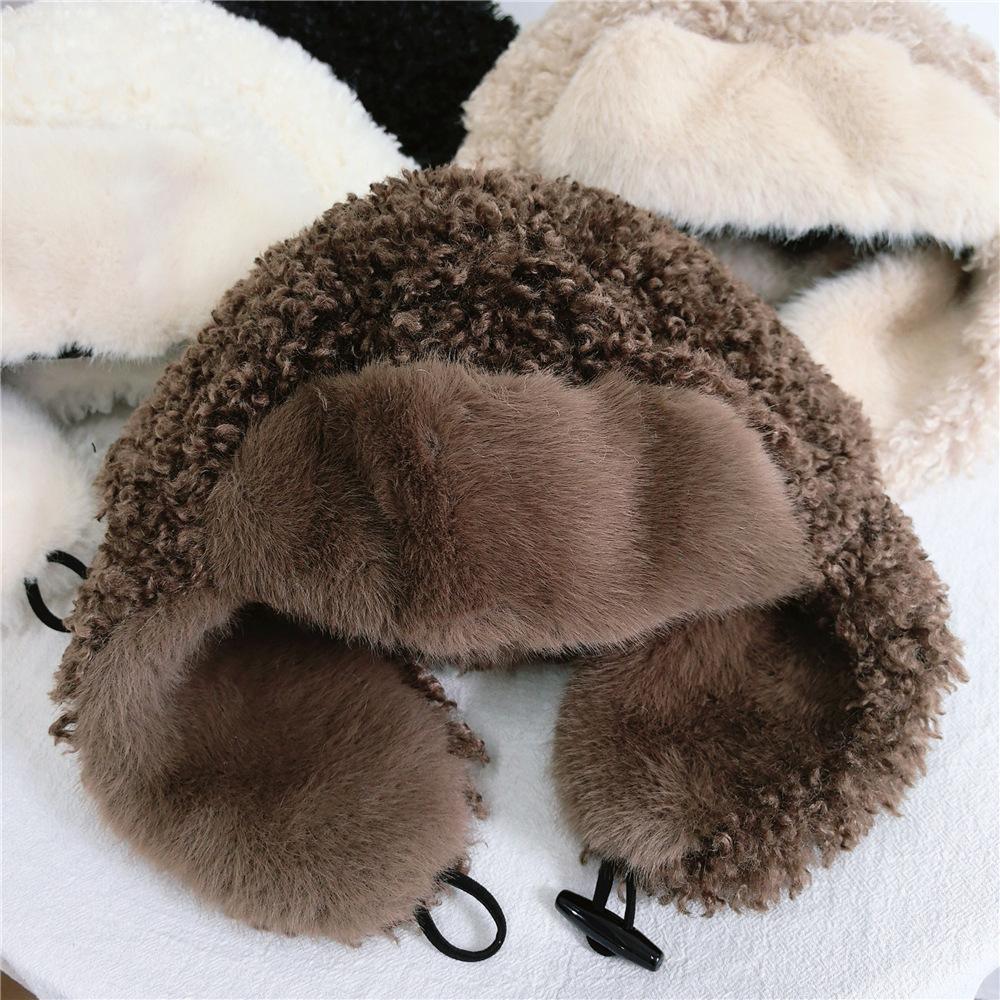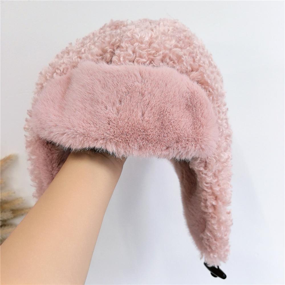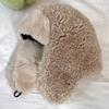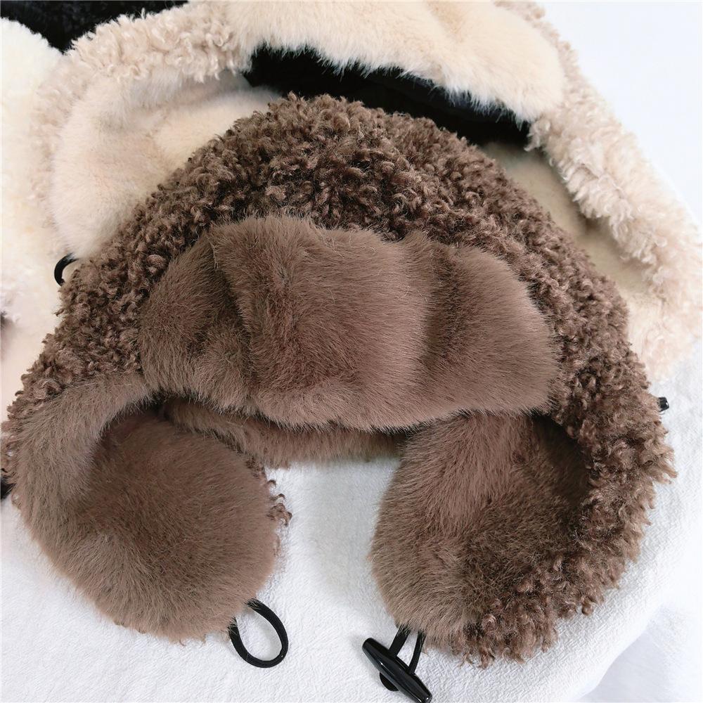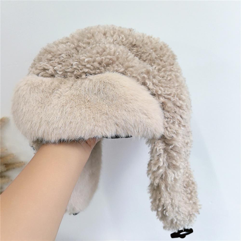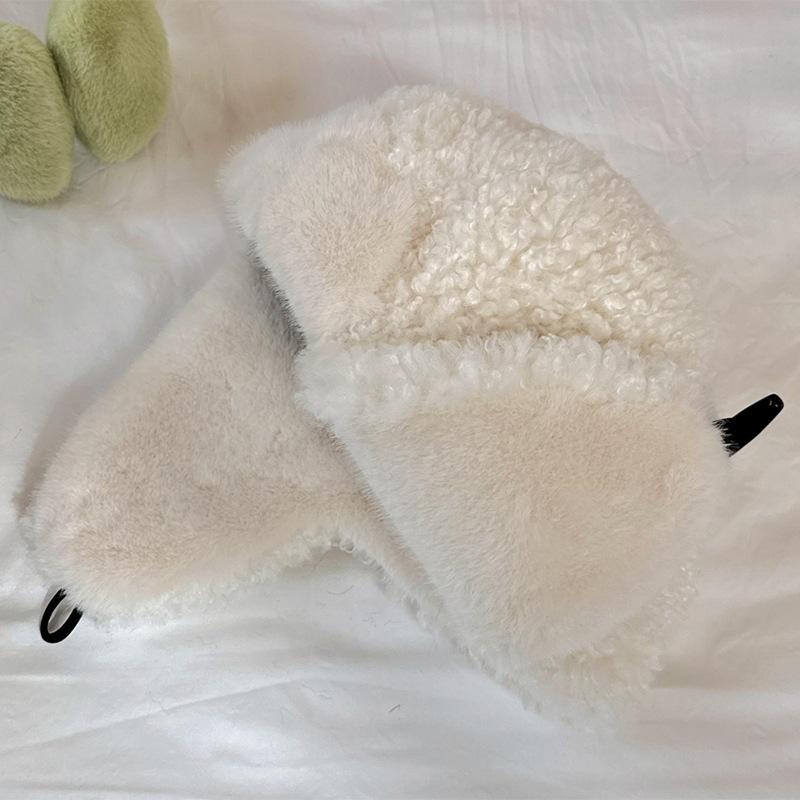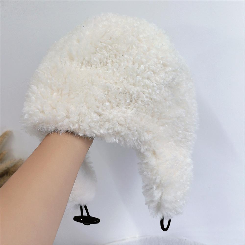 Sombrero Lei Feng de Lana de Cordero Blanco para Mujer Otoño e Invierno Cara Pequeña a Prueba de Frío Cálido Protección para las Orejas Sombrero para Esquiar al Aire Libre Sombrero de Aviador
