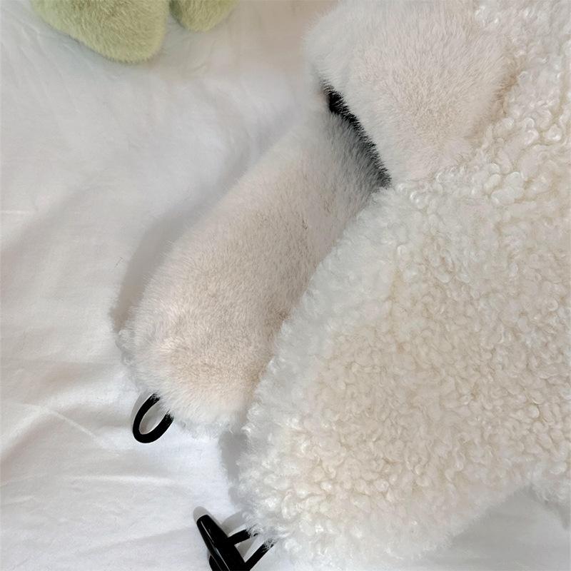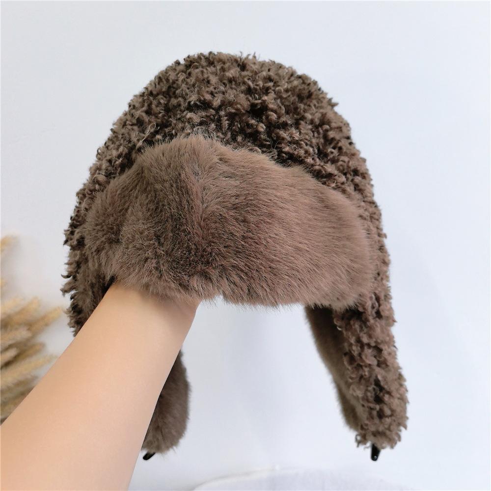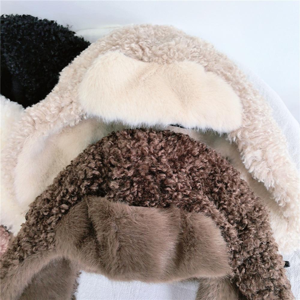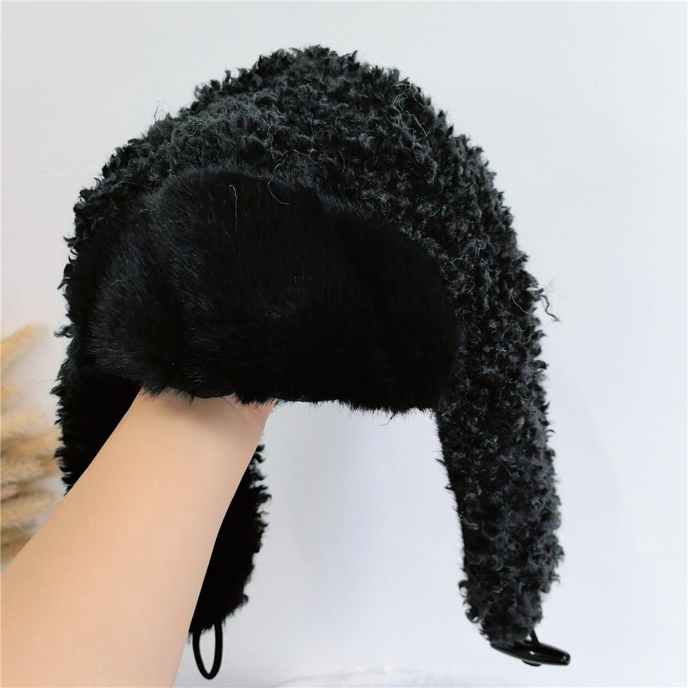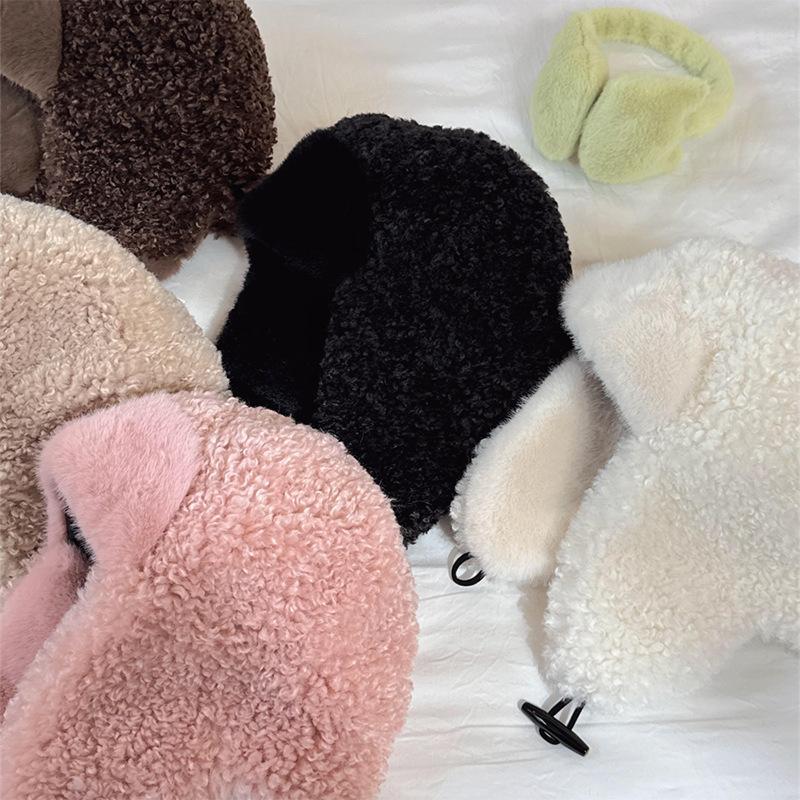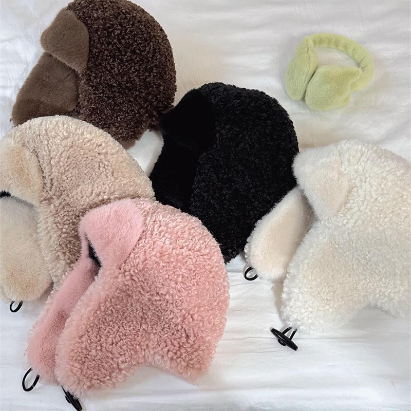 Sombrero Lei Feng de Lana de Cordero Blanco para Mujer Otoño e Invierno Cara Pequeña a Prueba de Frío Cálido Protección para las Orejas Sombrero para Esquiar al Aire Libre Sombrero de Aviador