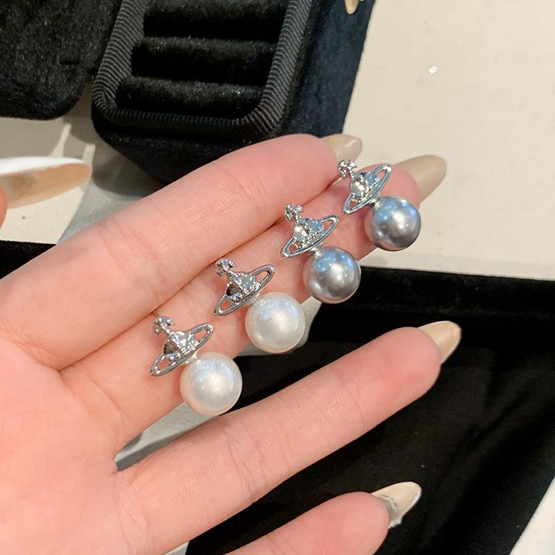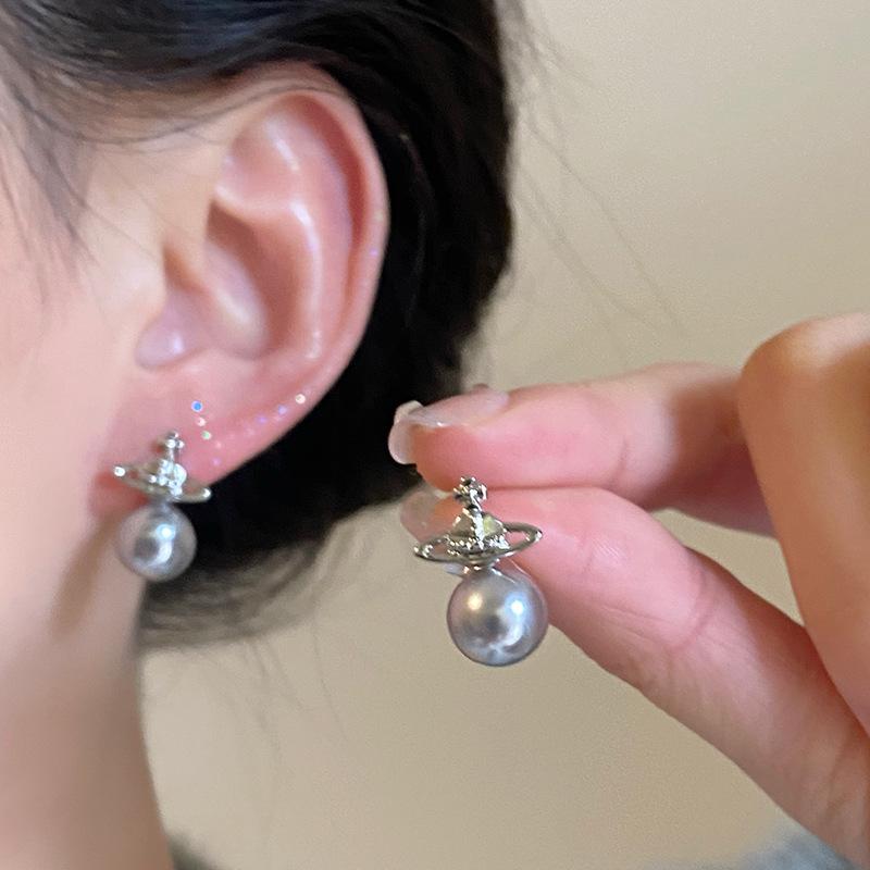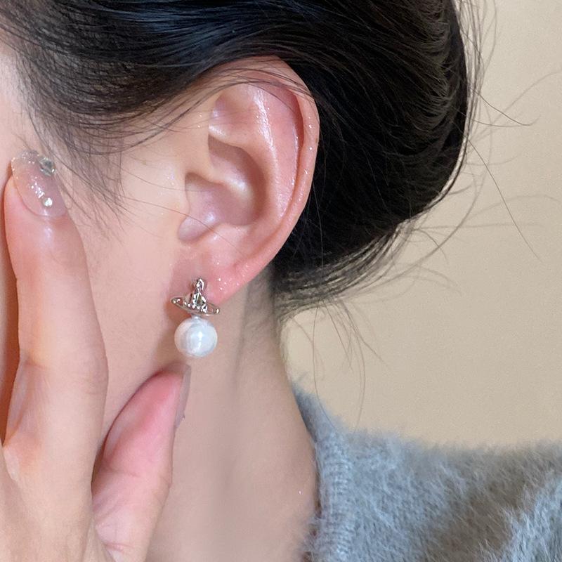 Compra Pendientes de perla de Saturno para mujer, elegantes, 2024, nuevos pendientes de alta gama con hebilla para la oreja, joyería para mujer al por mayor en Joom.pro