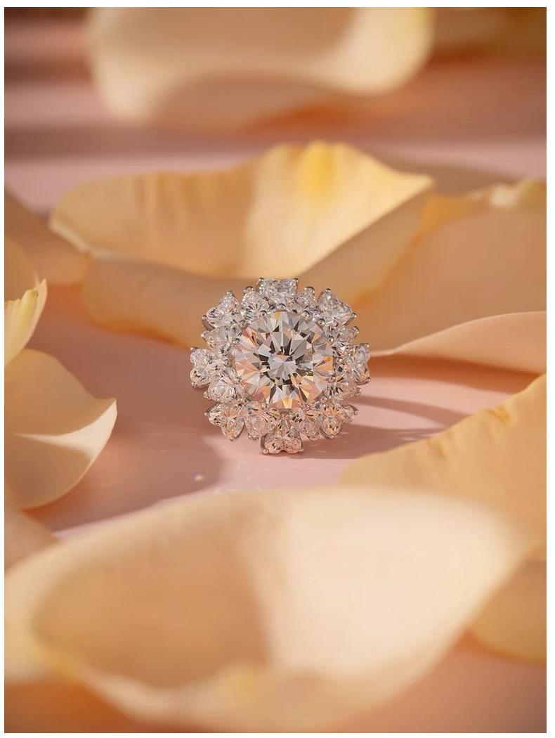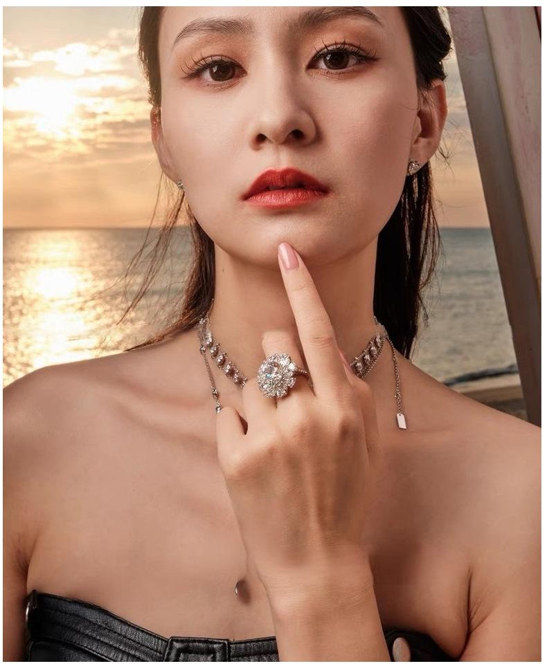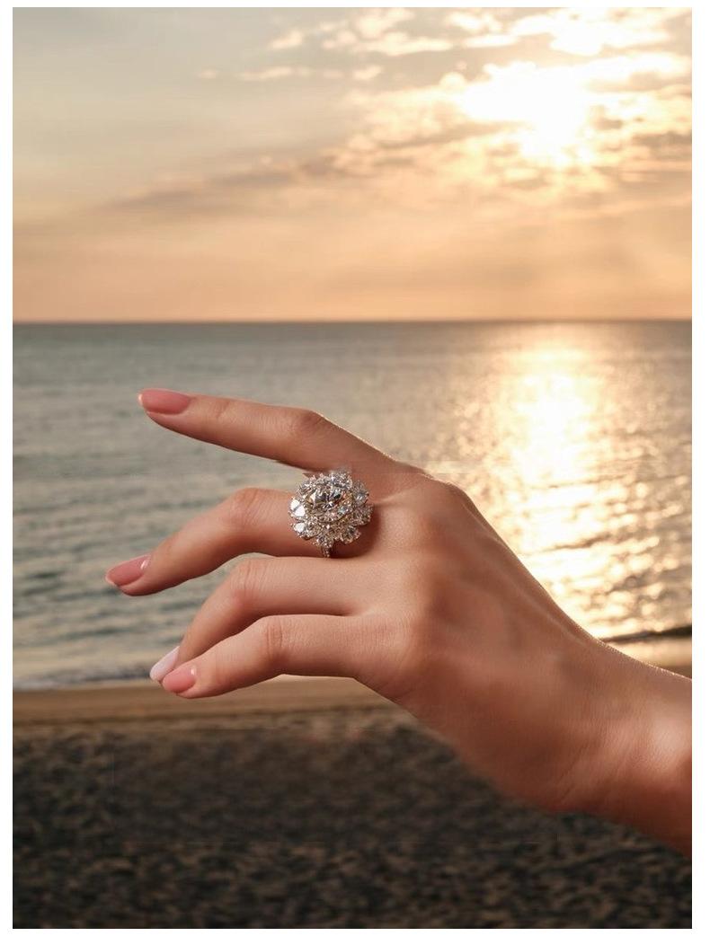 Anillo Grande para Mujer de Plata de Ley S925 Transfronterizo Anillo de Propuesta de Cinco Quilates Moissanita Fabricante de Piedras de Alto Carbono Soporte Vacío Venta al por Mayor al Contado