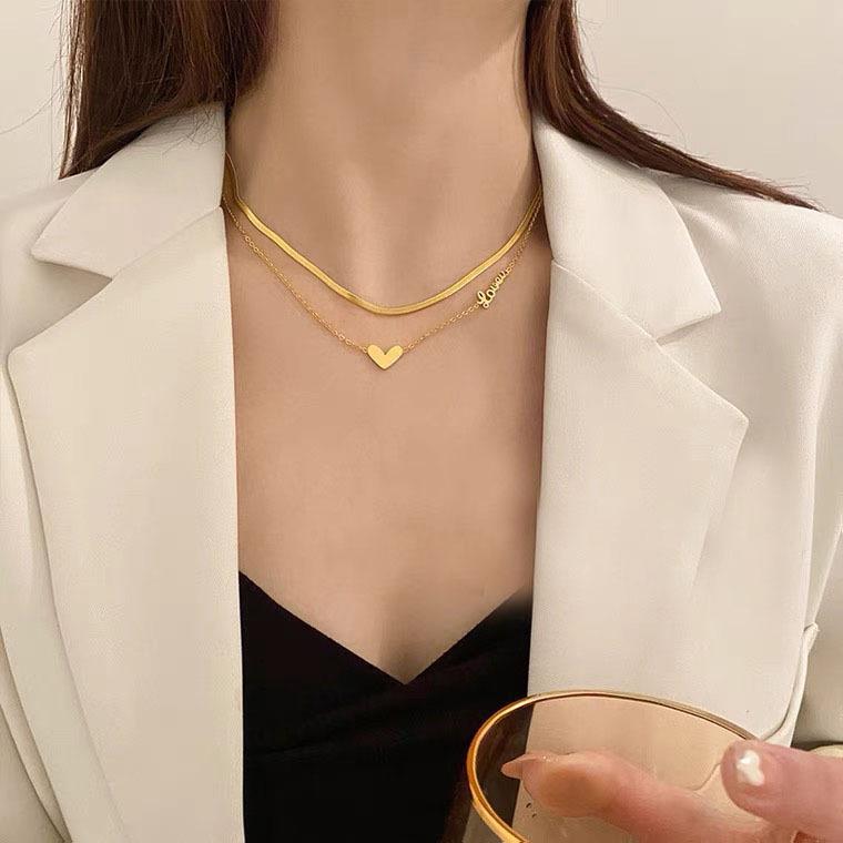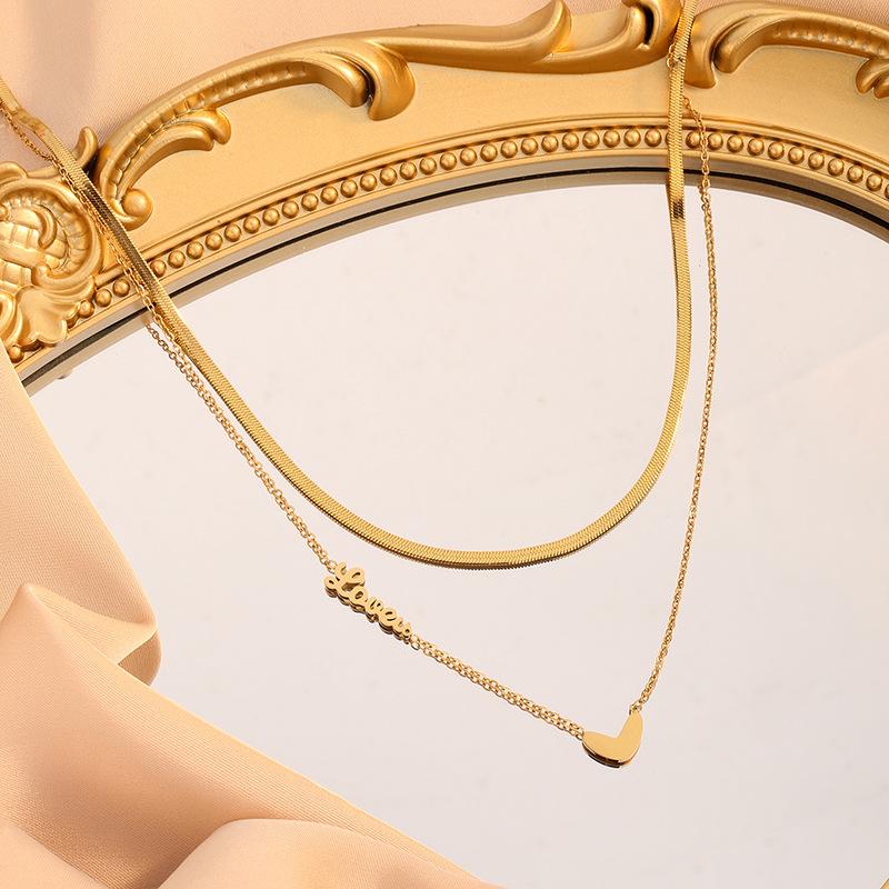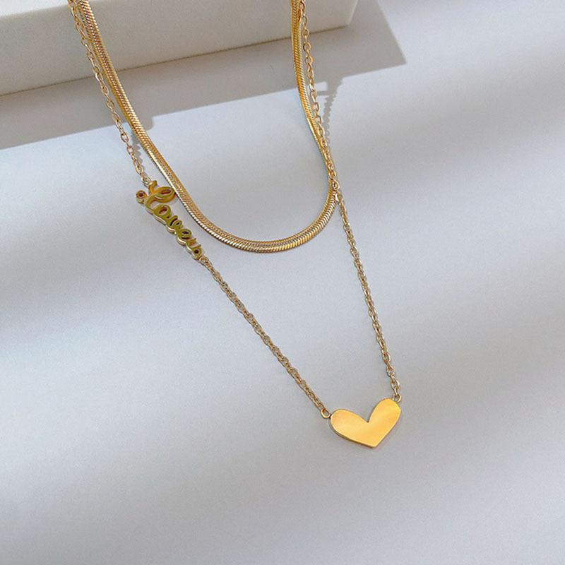 Compra Collar con colgante de cadena de clavícula para mujer, con carta de amor de doble capa, chapado en acero de titanio y oro rosa de 18 quilates. al por mayor en Joom.pro