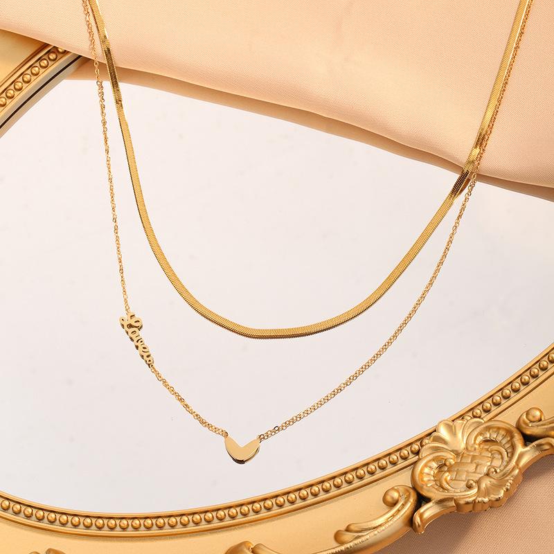 Collar con colgante de cadena de clavícula para mujer, con carta de amor de doble capa, chapado en acero de titanio y oro rosa de 18 quilates.