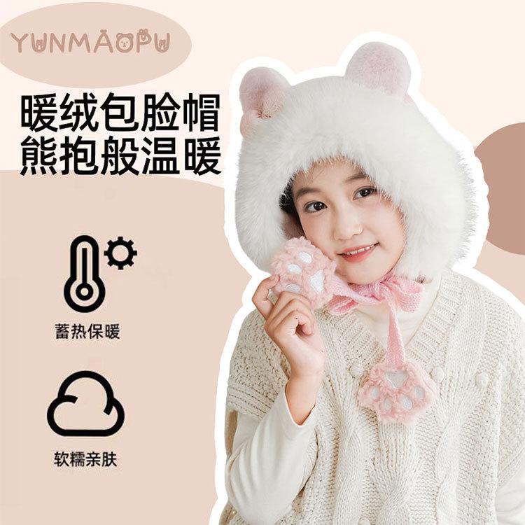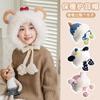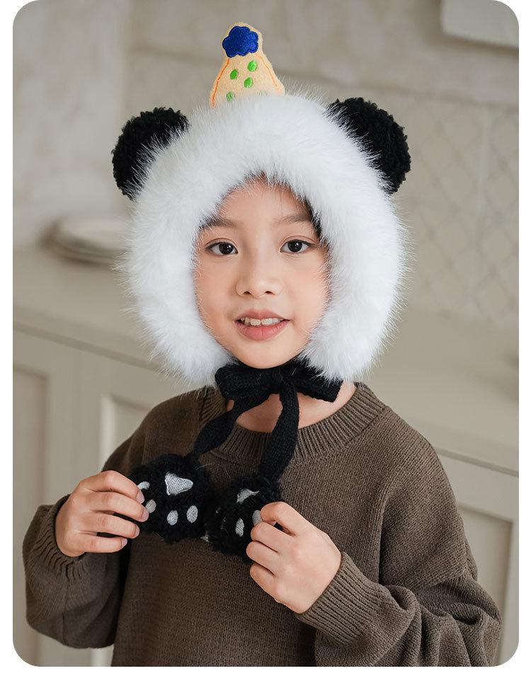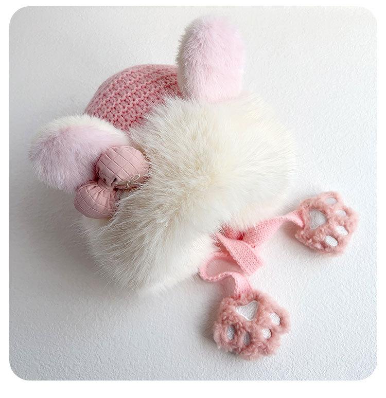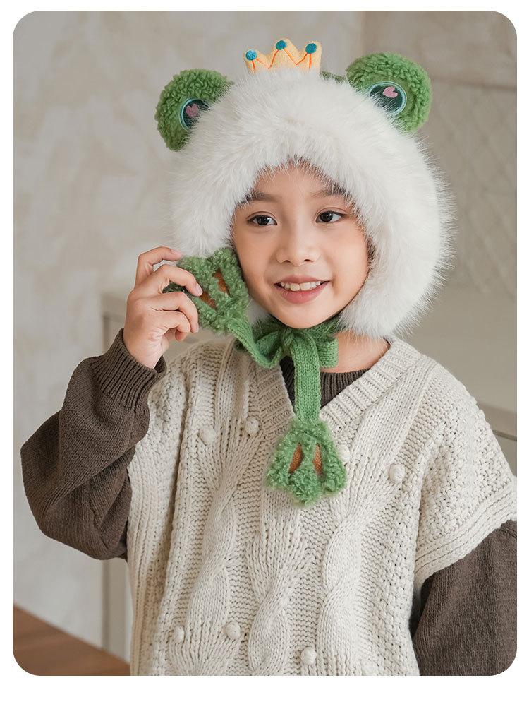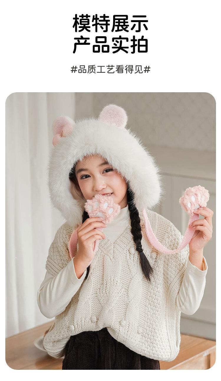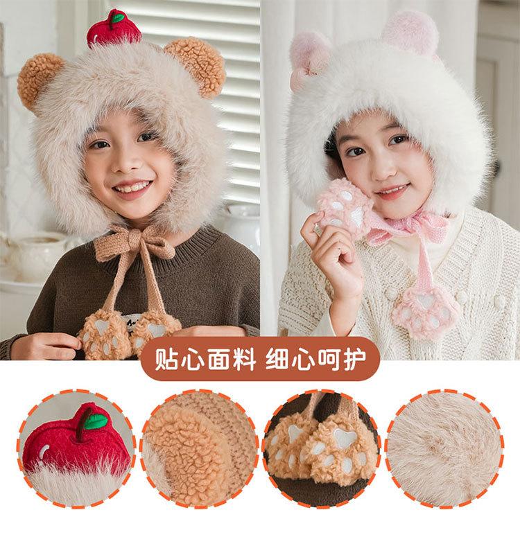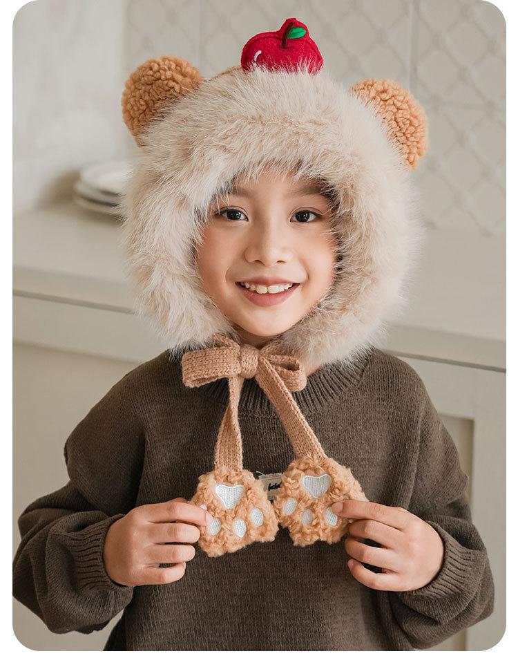 Gorro para niños, gorro todo en uno, bonito gorro de lana con forro polar y lazo, cálido gorro para bebés y niños, protección para los oídos en invierno.