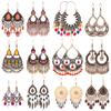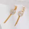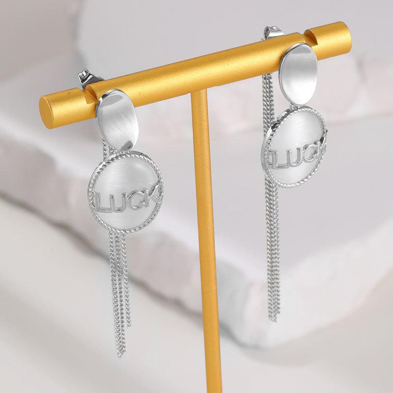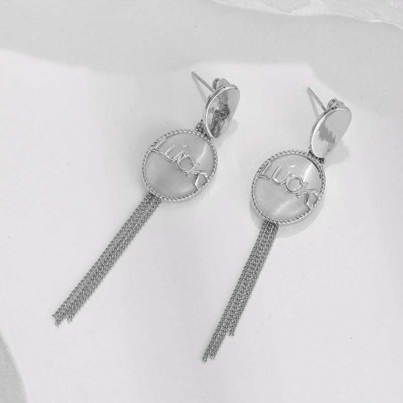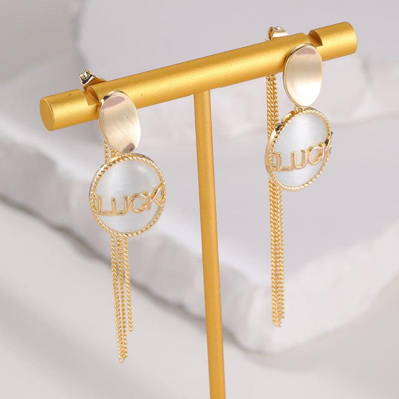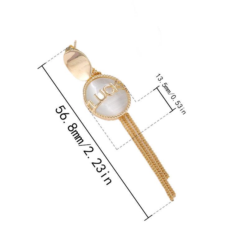 Pendientes transfronterizos nuevos con piedras preciosas redondas y letras LUCK, con textura de moda, pendientes largos con borlas de temperamento.