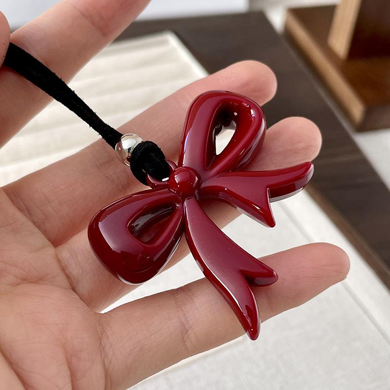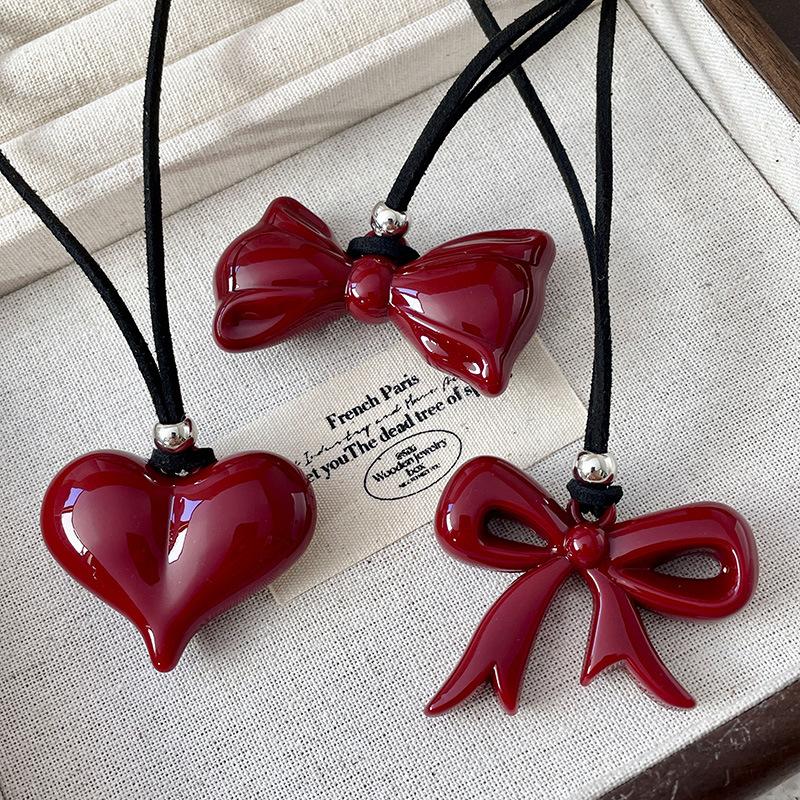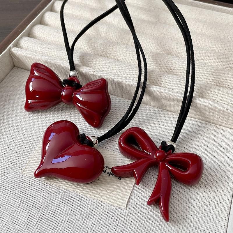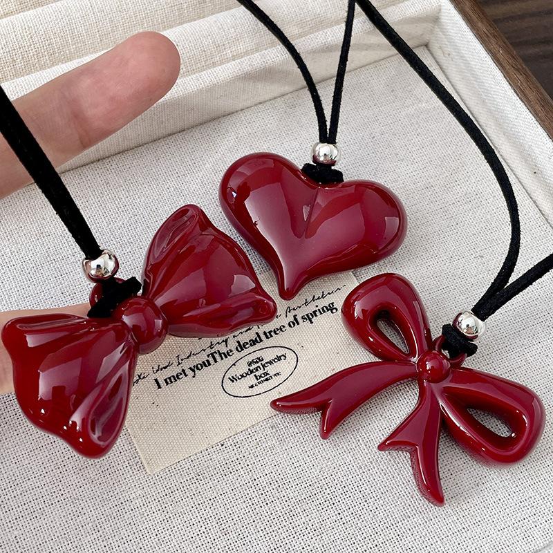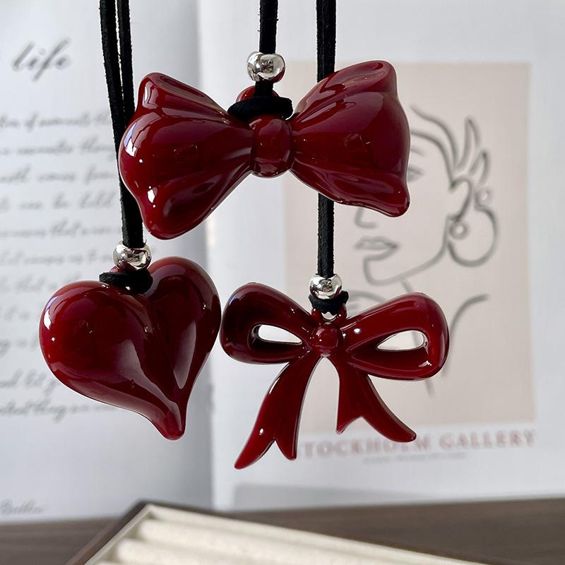 A bow tie bow pendant, B red love pendant, C hollow bow pendant