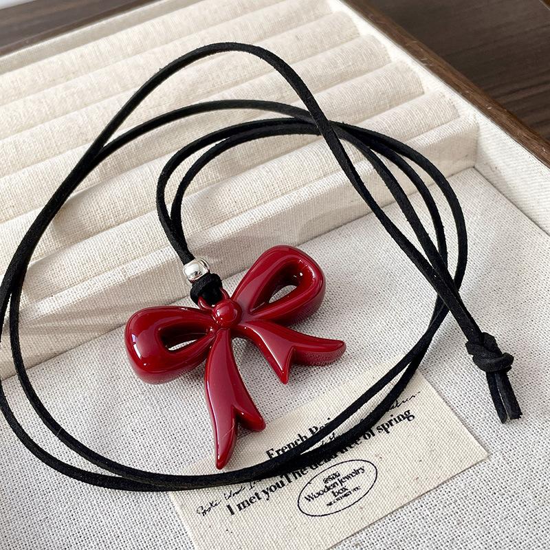 Collar de Lazo Rojo Ancora para Mujer Estilo Nuevo 2024 Minimentary Cadena para el Sudor Nicho Versátil Accesorios de Cordón de Cuero Negro