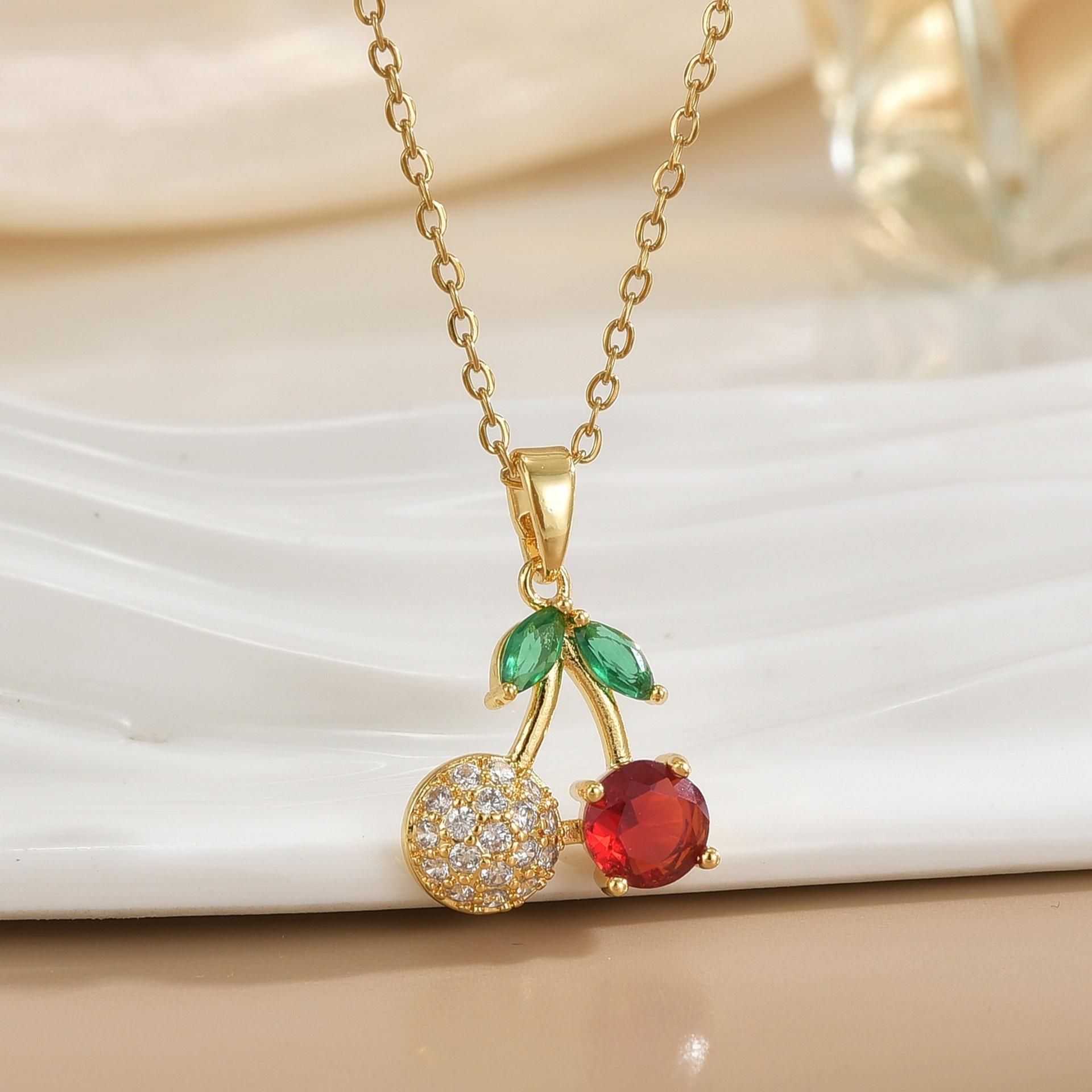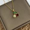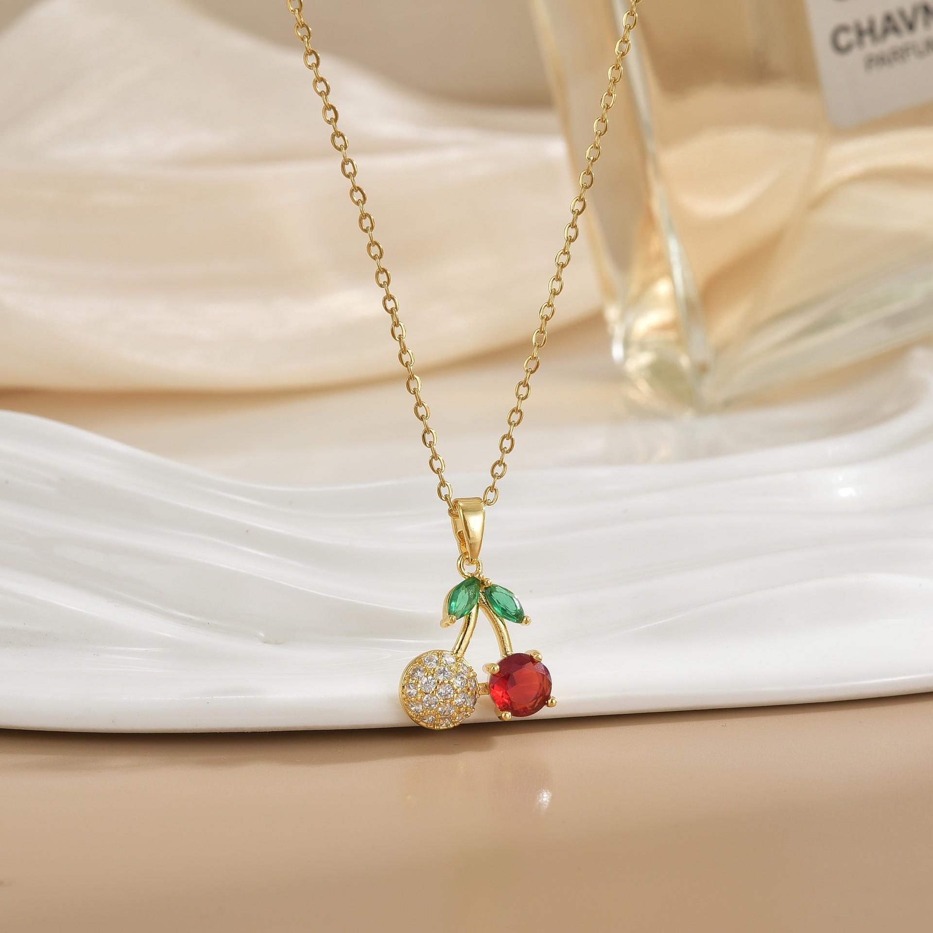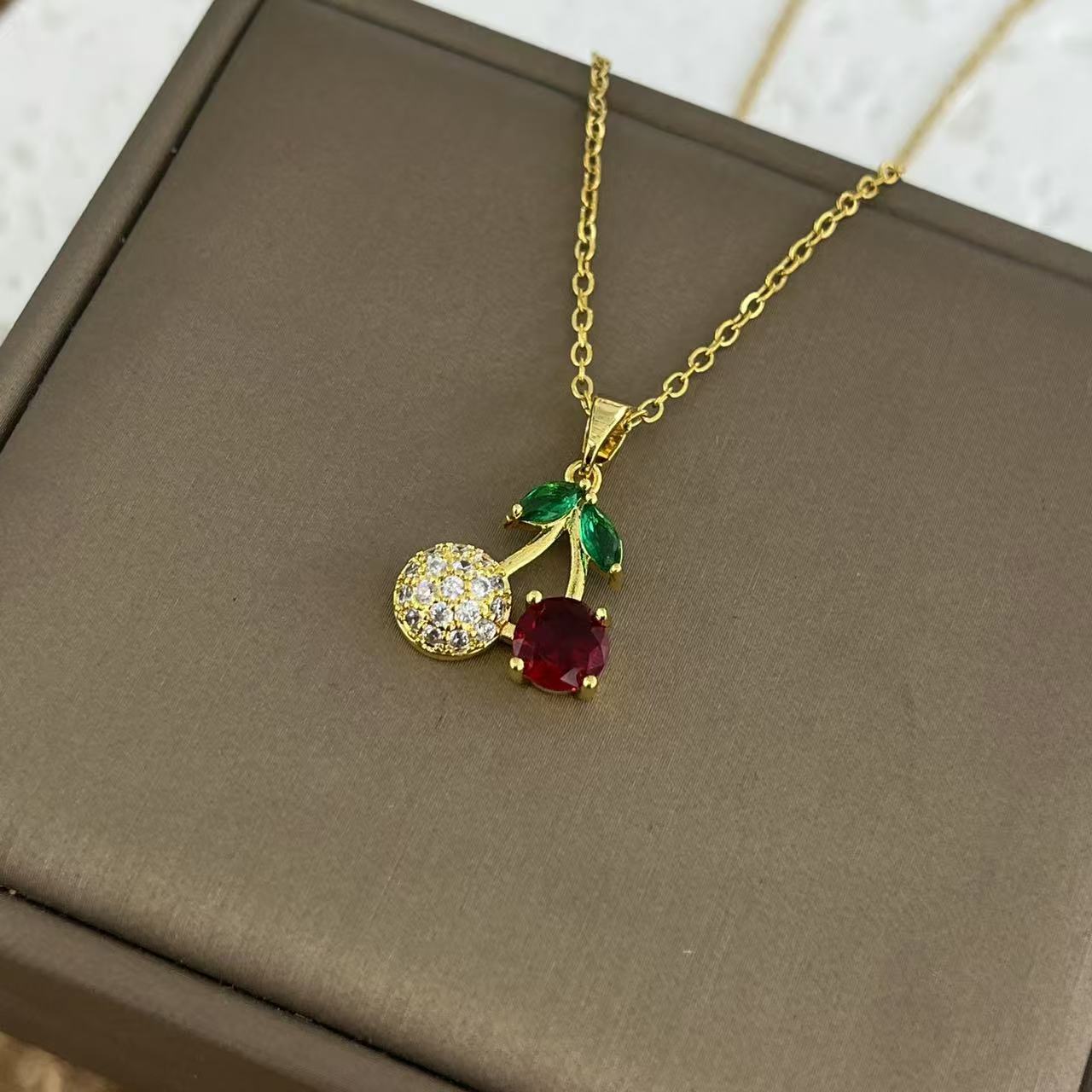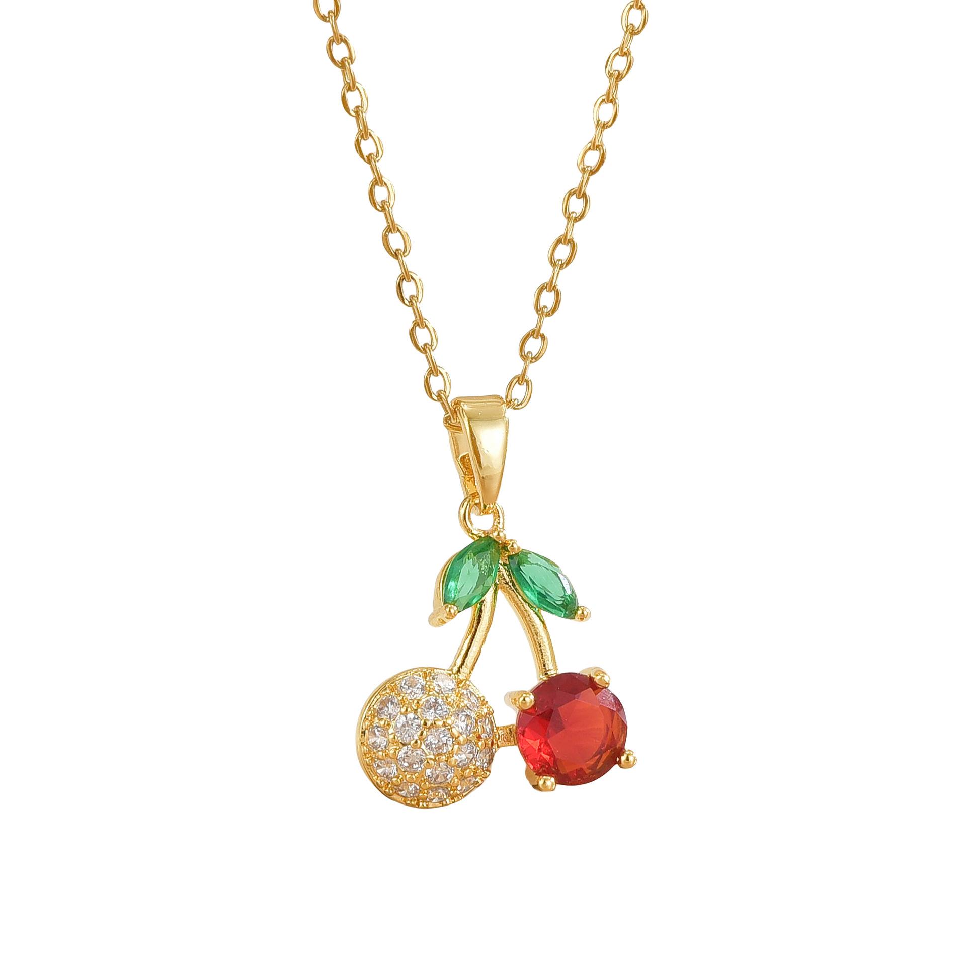 [Circón microincrustado de cobre] Collar colgante de circón de cereza doble europeo y americano, temperamento, diseño de nicho de lujo, cadena de clavícula