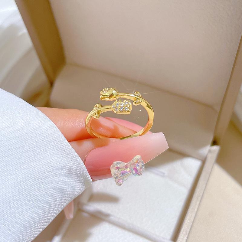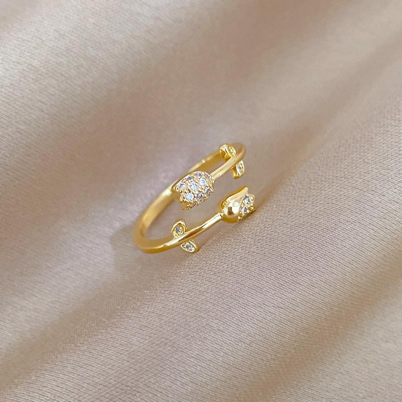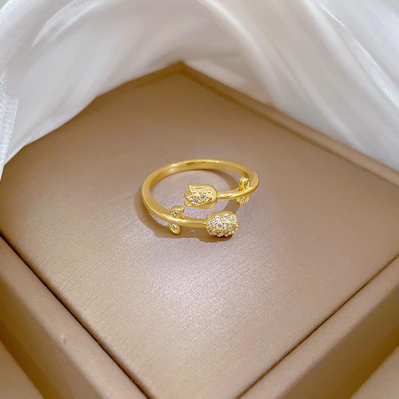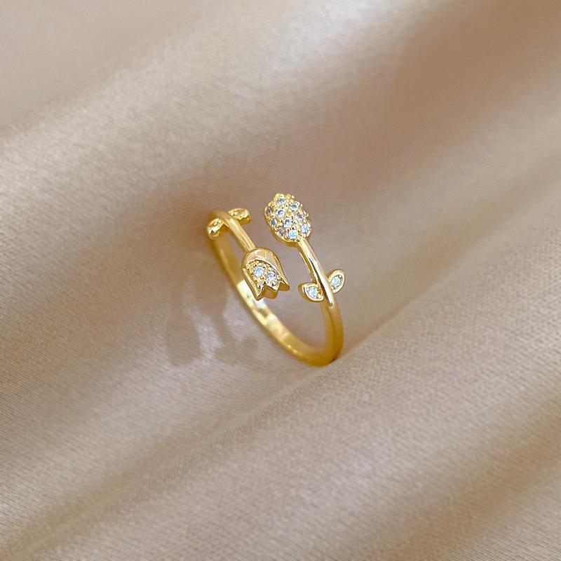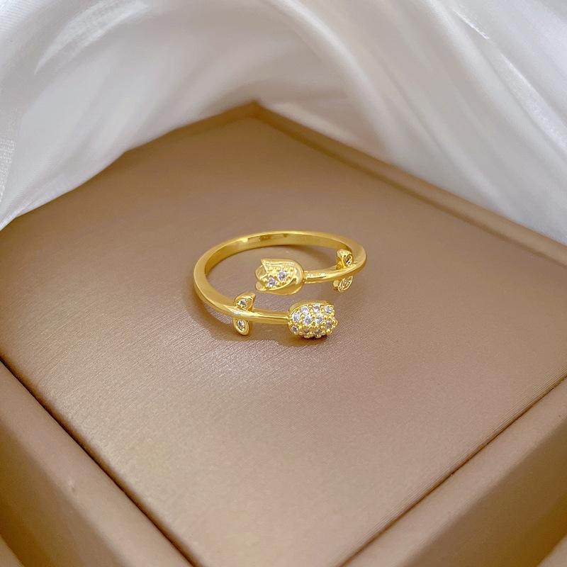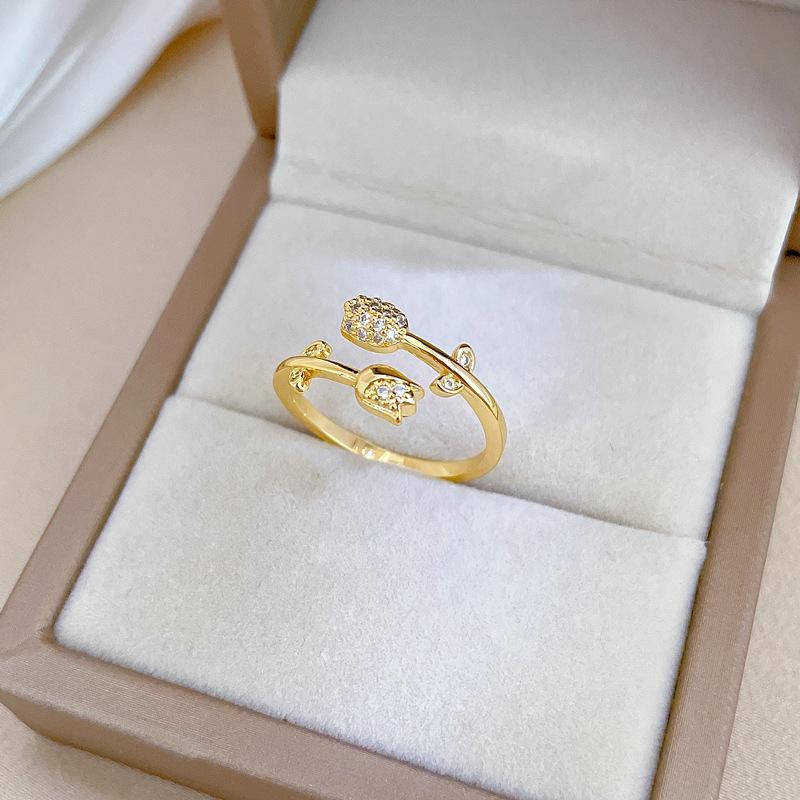 [Oro Verdadero] Anillo Rosa de Diamantes Completos Apertura Ajustable Joyería Simple Anillo Japonés Anillo de Pareja