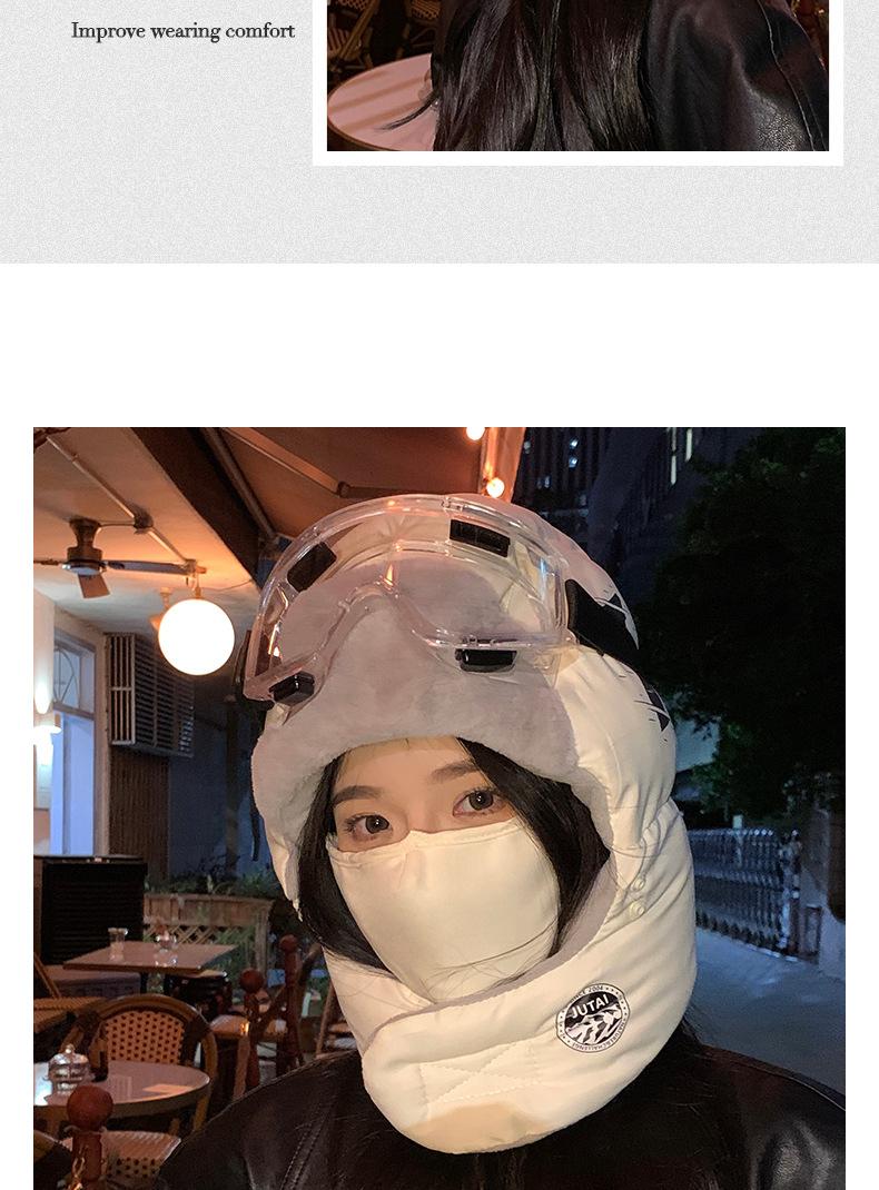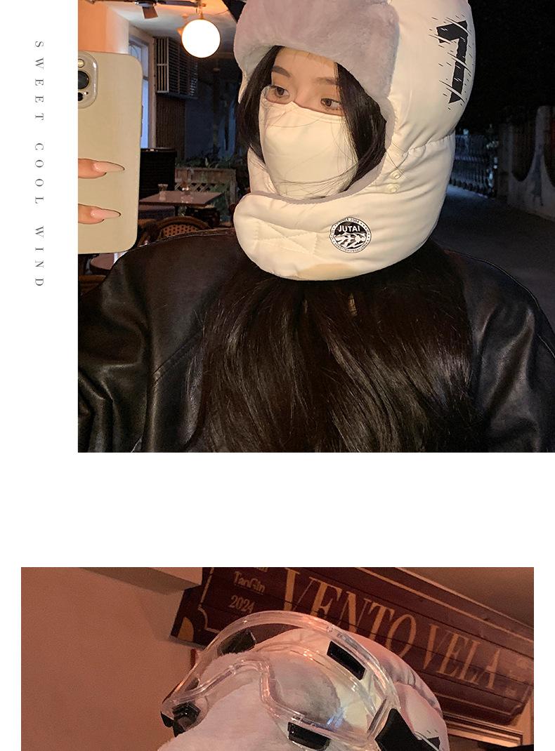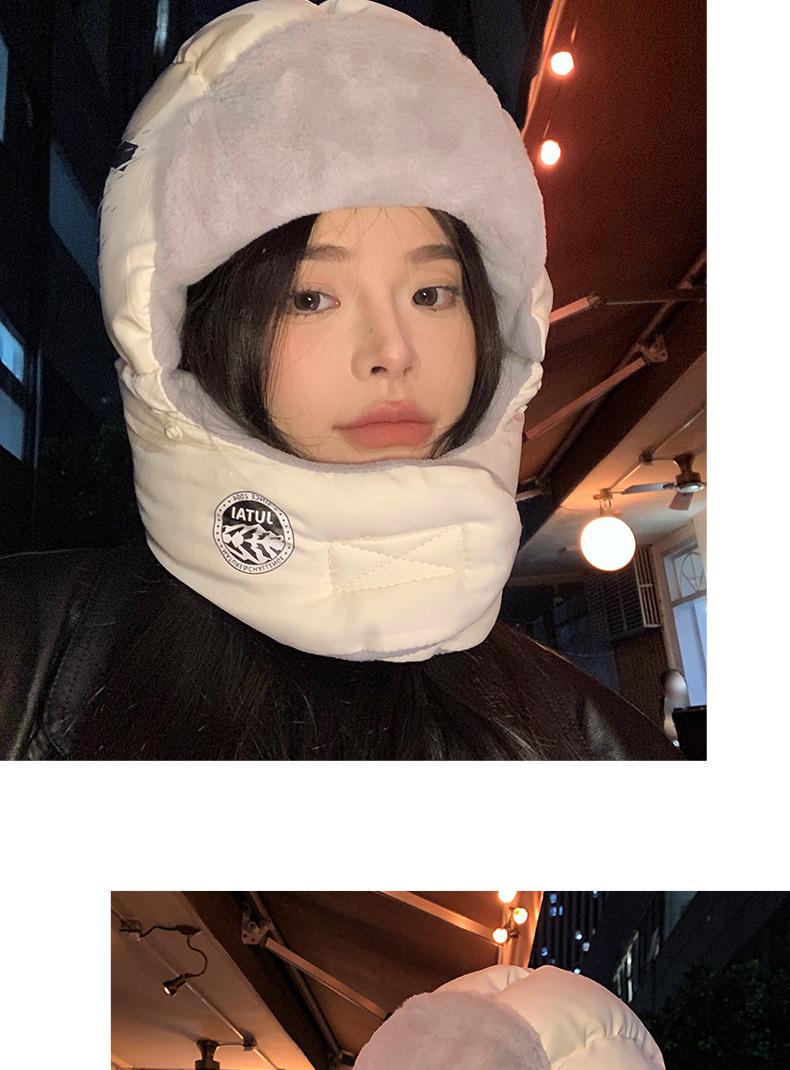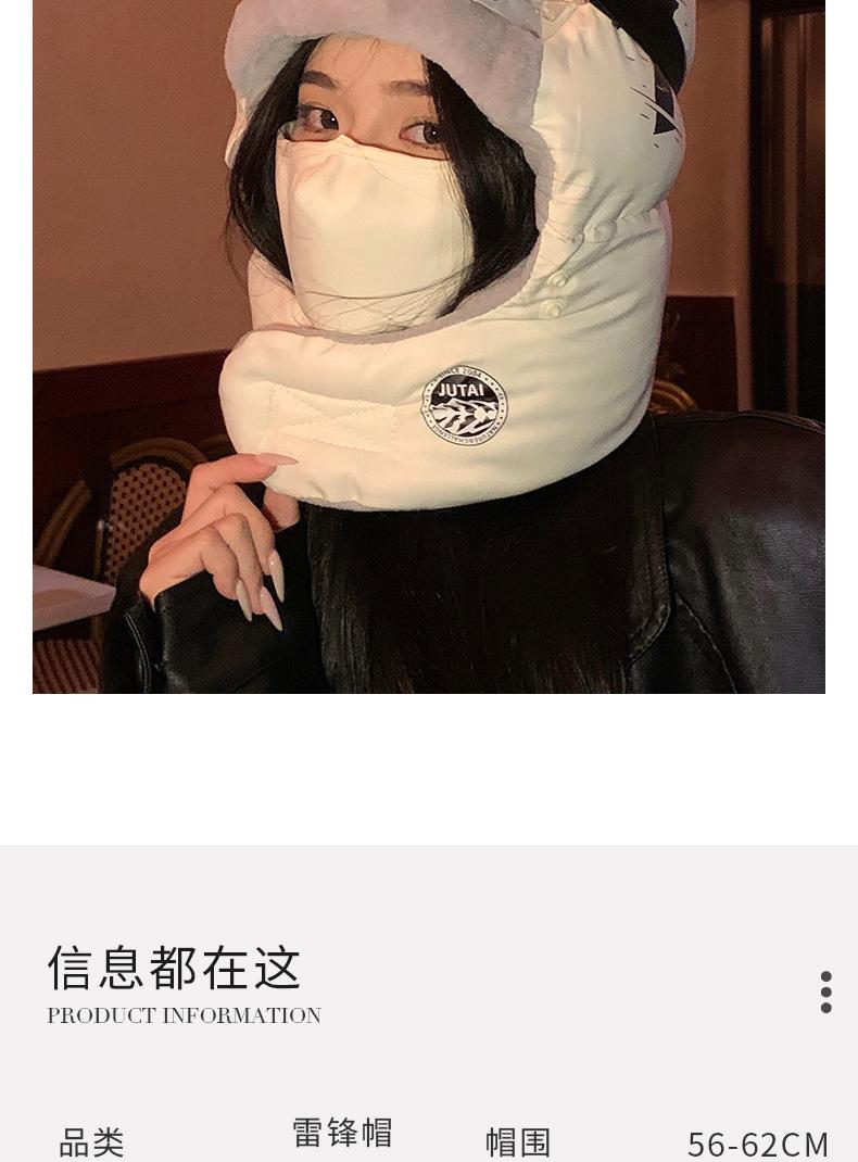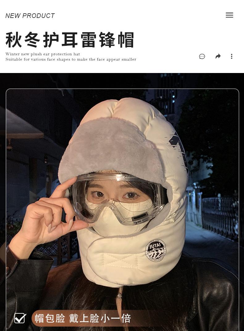 Gorra Lei Feng con Letras Coreanas para Mujer para Ciclismo al Aire Libre, Esquí, Gorro de Piloto, Invierno, Gruesa, con Forro Polar, Protección para las Orejas, Algodón, Vieja