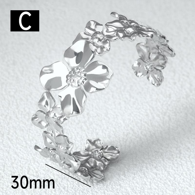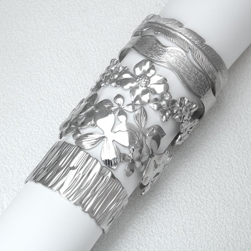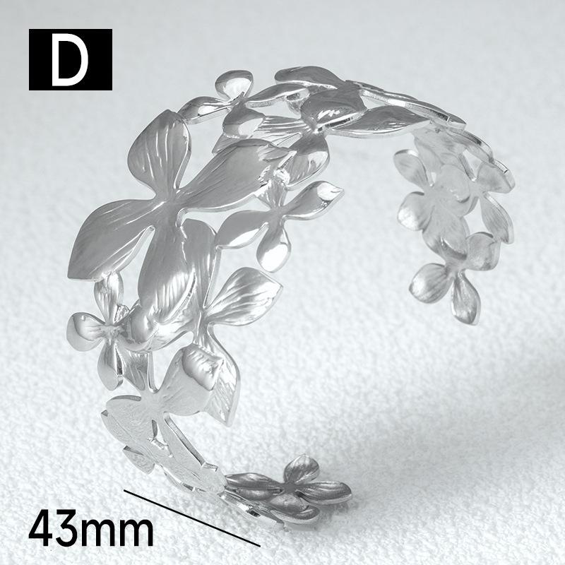 Acero Inoxidable Transfronterizo Moda Personalidad Creativo Flor Hojas Acero Titanio Pulsera Hidráulica Abierta para Mujer Anillo de Brazo Pulsera
