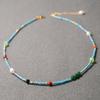 Titanium steel-freshwater pearl natural stone beaded necklace