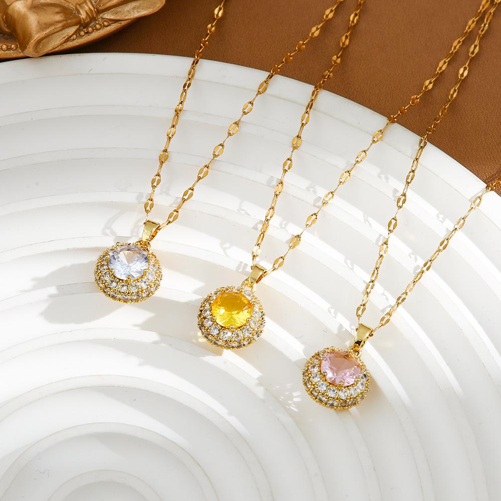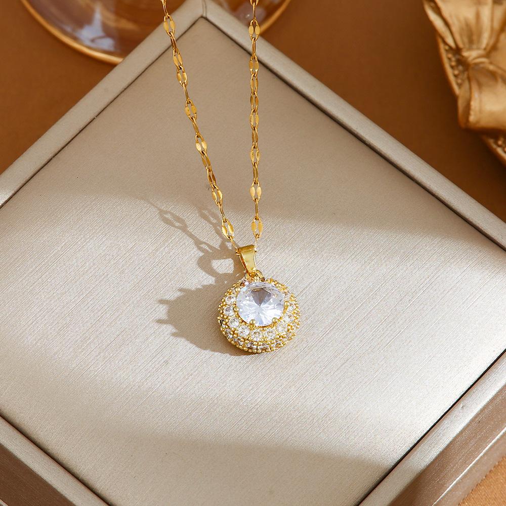Collar con colgante de diamantes redondos de moda coreana con circonitas, joyería Joker sencilla de moda, cadena de clavícula, fabricantes al por mayor