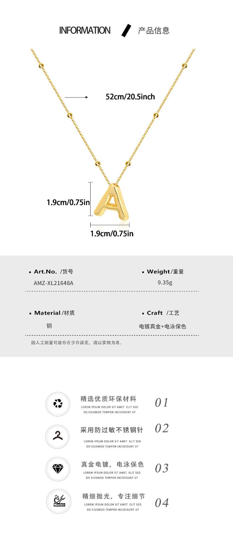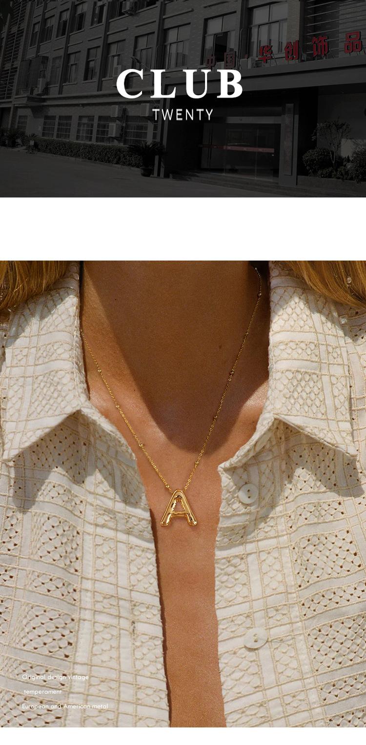 Collar transfronterizo europeo y americano para mujer, cadena de suéter de otoño e invierno, cadena de clavícula INS, cobre chapado en oro de 18 quilates, letra A, decoración de alta gama