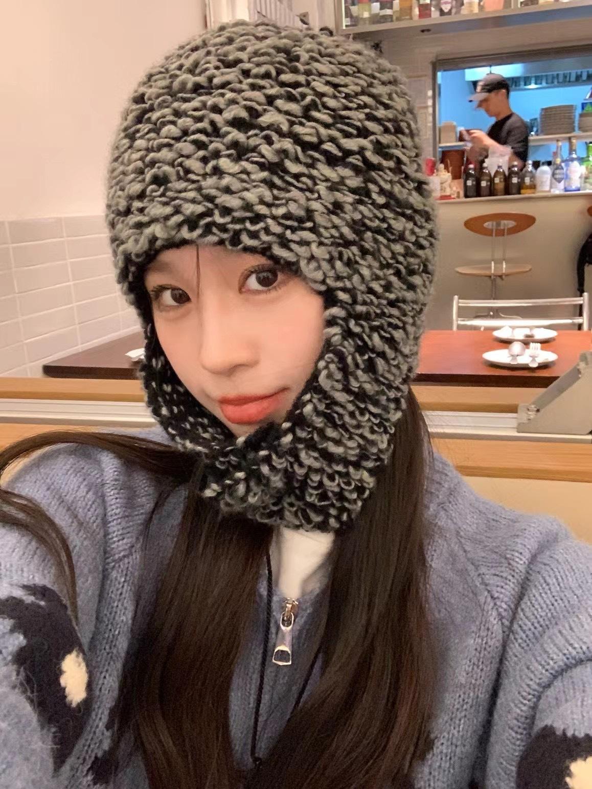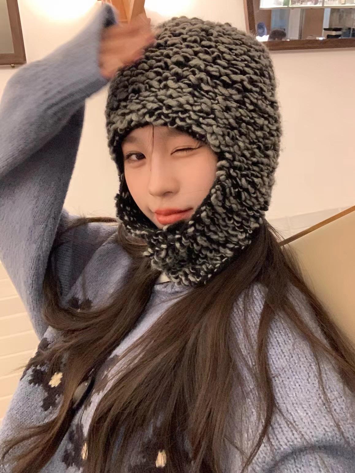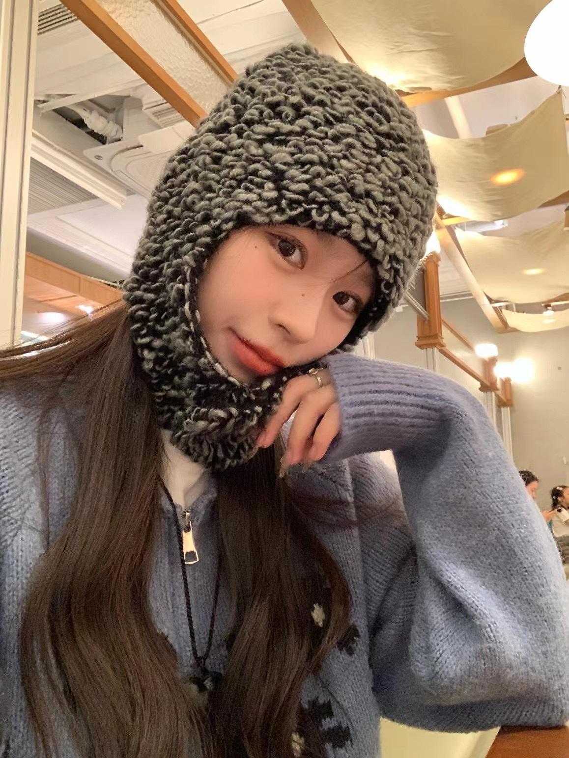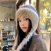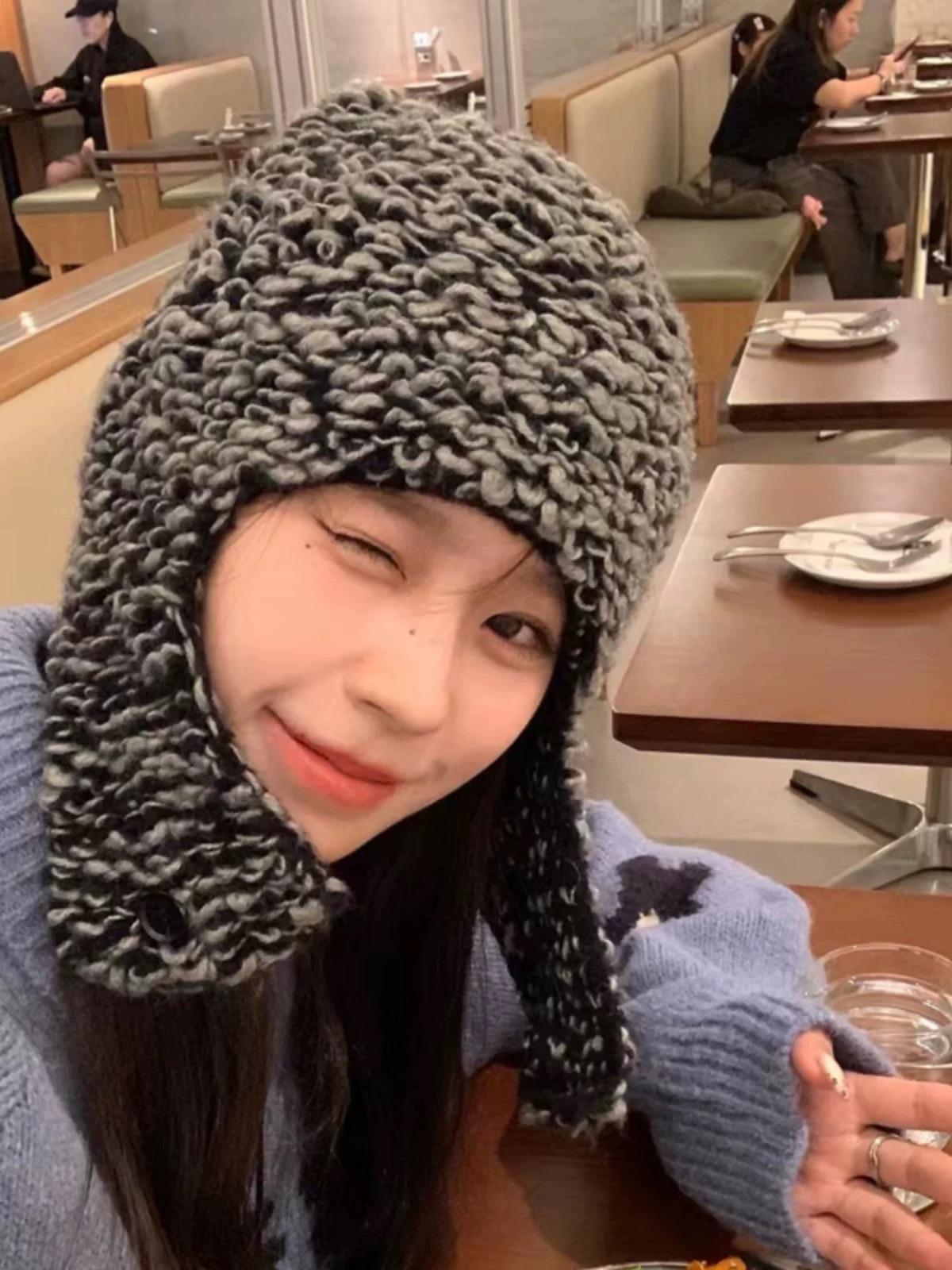 Sombrero de punto de felpa versátil para otoño e invierno de Corea del Sur para mujer, nicho, cálido, con protección para las orejas, gorro de aviador, a prueba de frío, que realza el rostro, pequeño sombrero Lei Feng