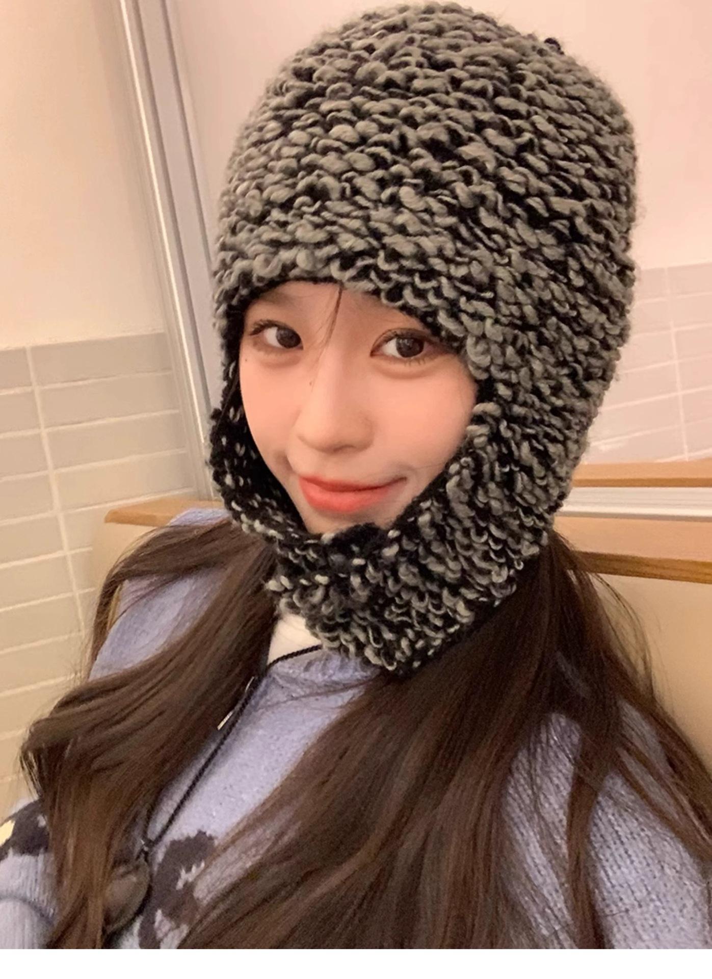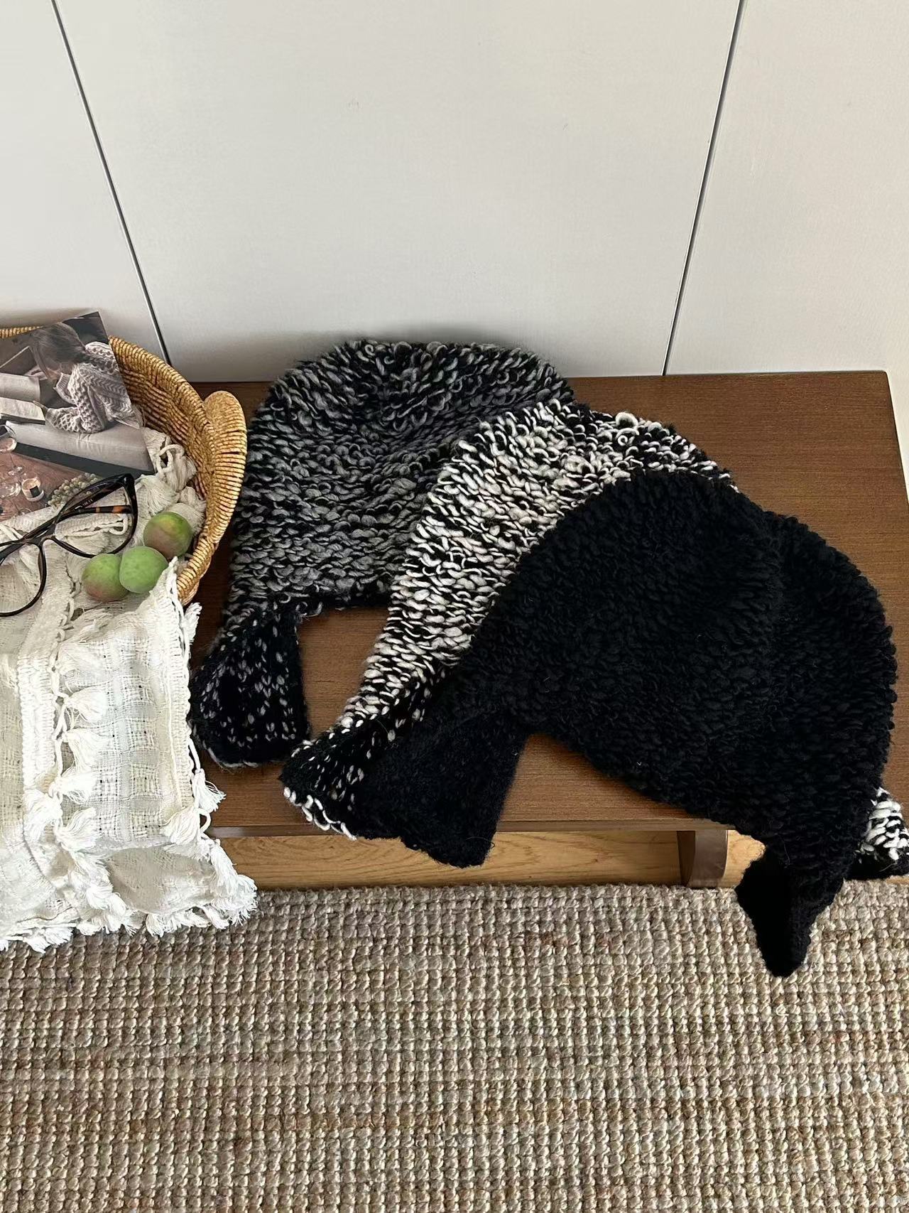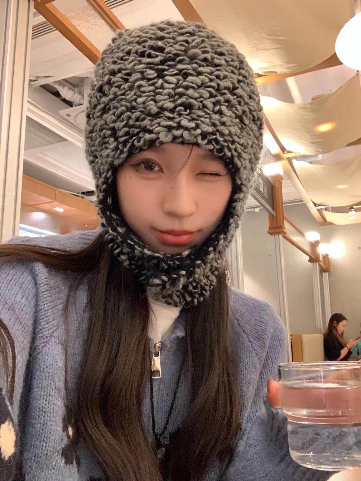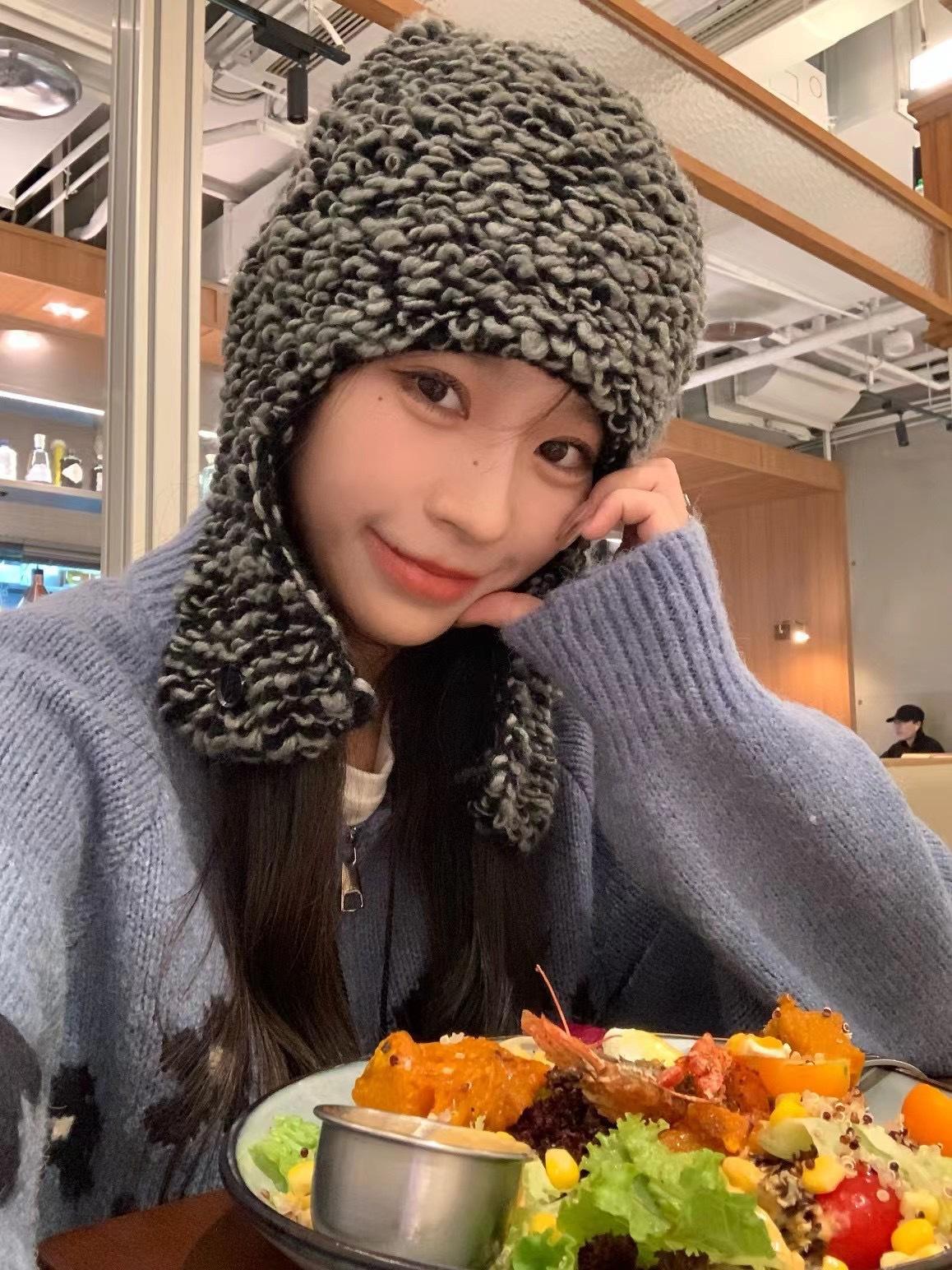 Sombrero de punto de felpa versátil para otoño e invierno de Corea del Sur para mujer, nicho, cálido, con protección para las orejas, gorro de aviador, a prueba de frío, que realza el rostro, pequeño sombrero Lei Feng