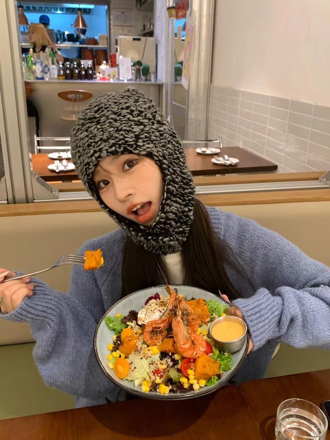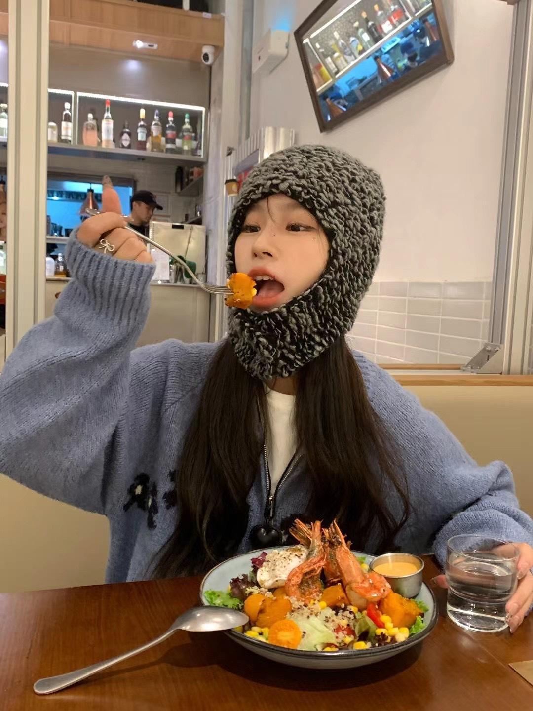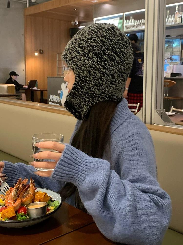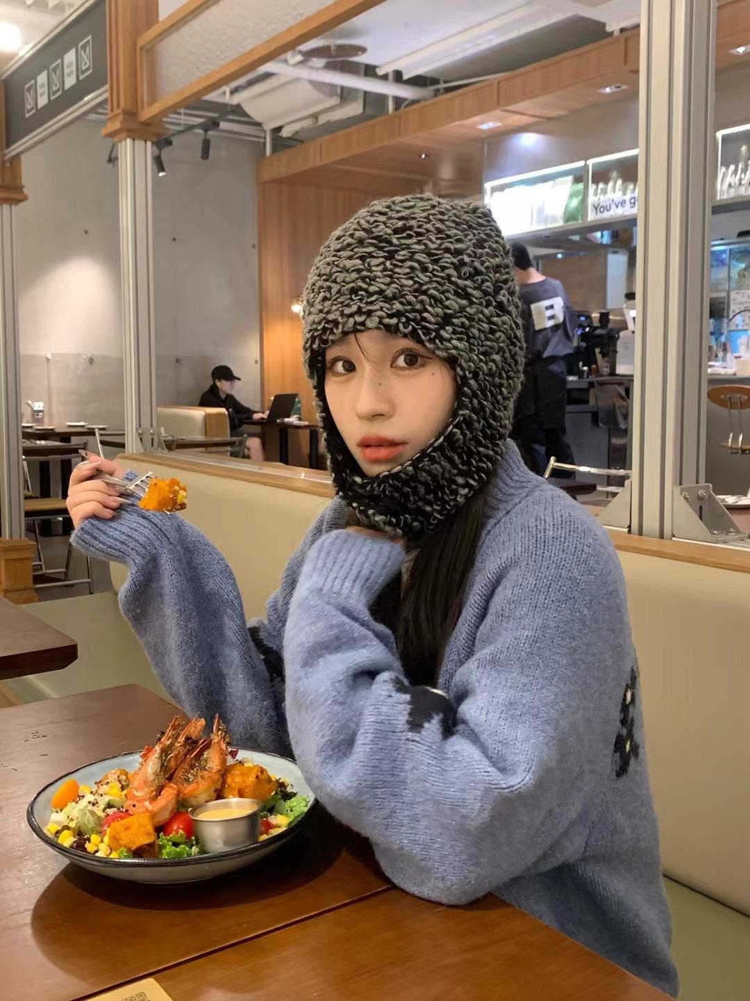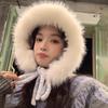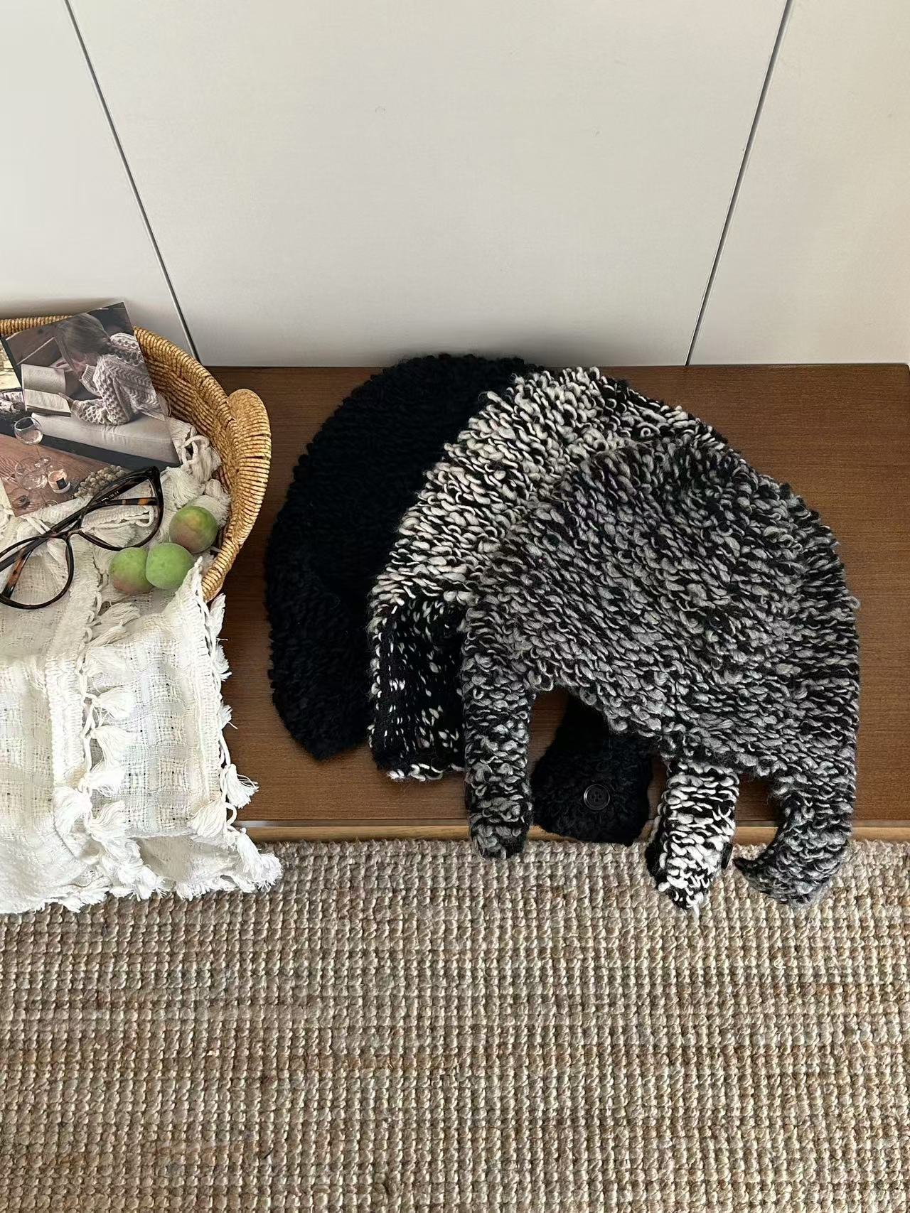 Sombrero de punto de felpa versátil para otoño e invierno de Corea del Sur para mujer, nicho, cálido, con protección para las orejas, gorro de aviador, a prueba de frío, que realza el rostro, pequeño sombrero Lei Feng