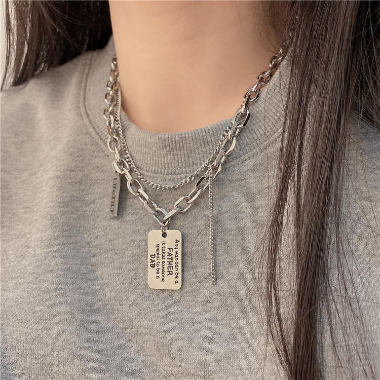 Collar con colgante de acero de titanio doble para mujer, estilo hip hop, cadena larga para el sudor, para hombre, 2024, nuevas explosiones, cadena de clavícula
