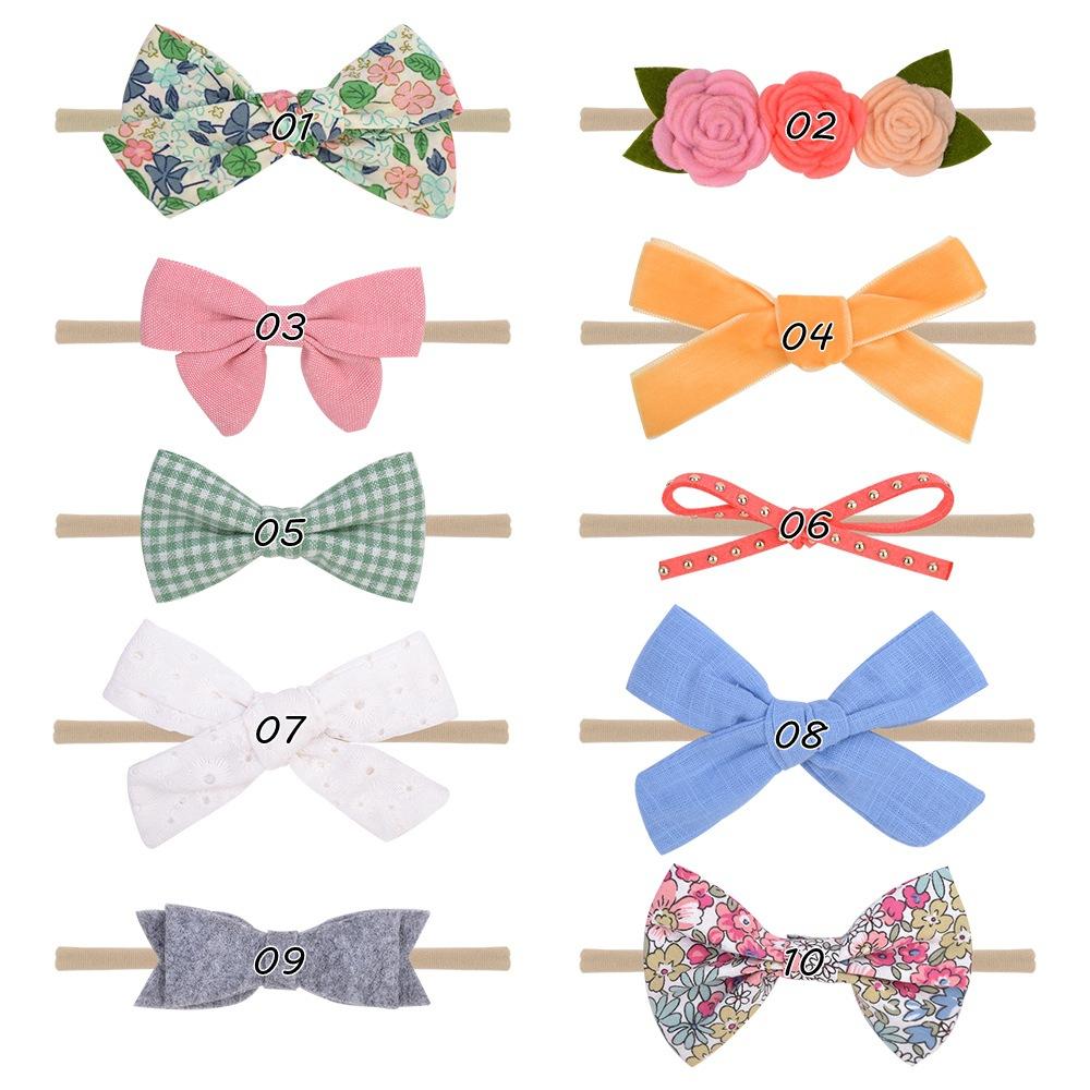 [Nombre] 355 Diademas de lazo para bebé europeas y americanas 10 piezas 1 tarjeta set de diademas suaves sin costuras para niños adorno para la cabeza de tela floral