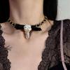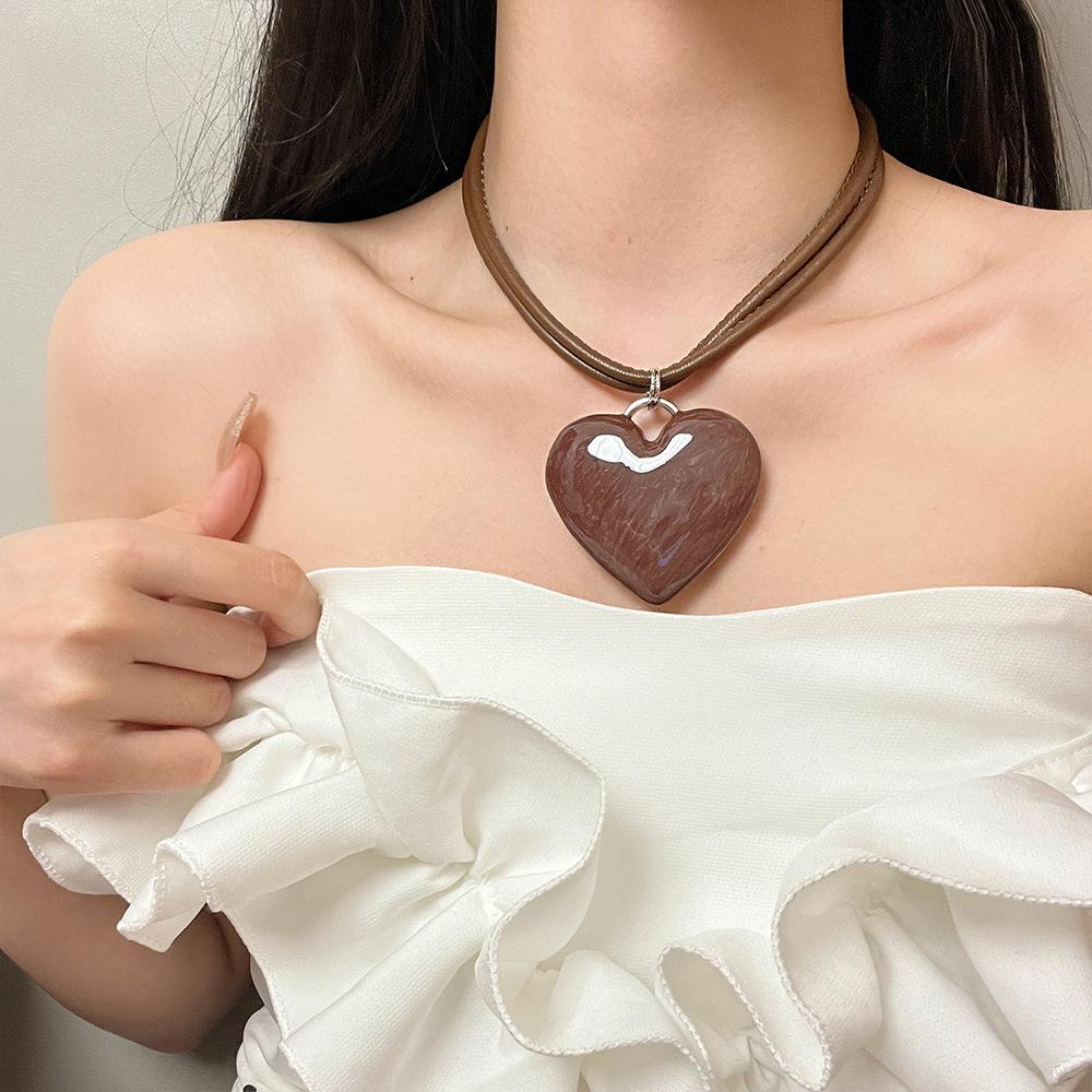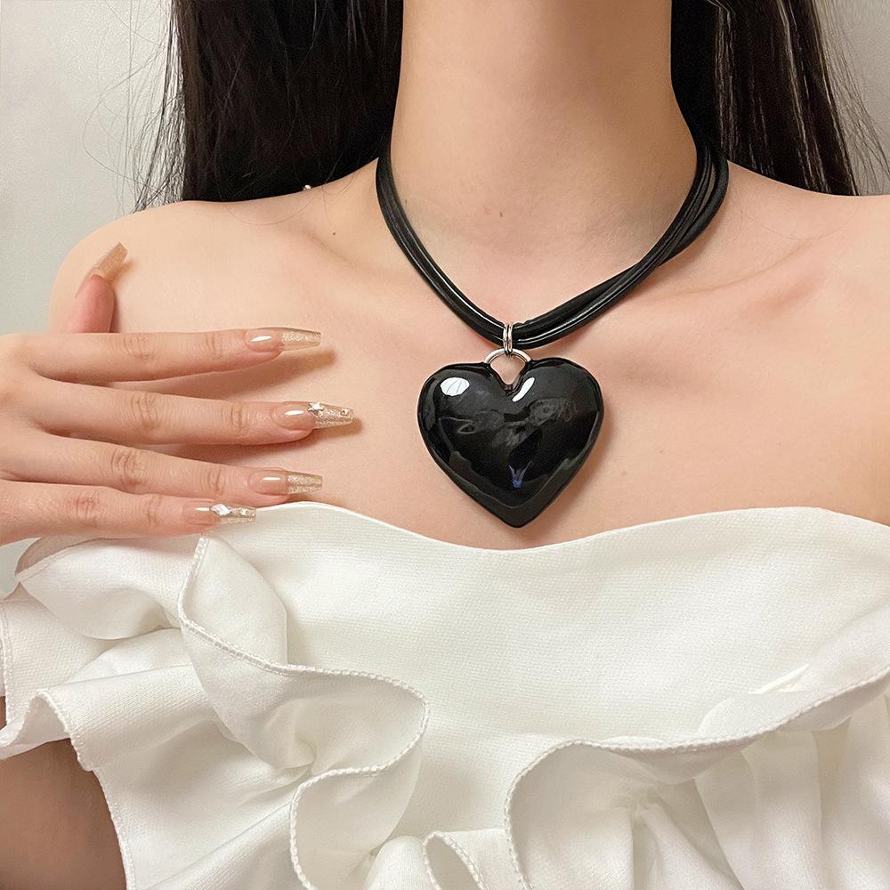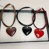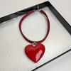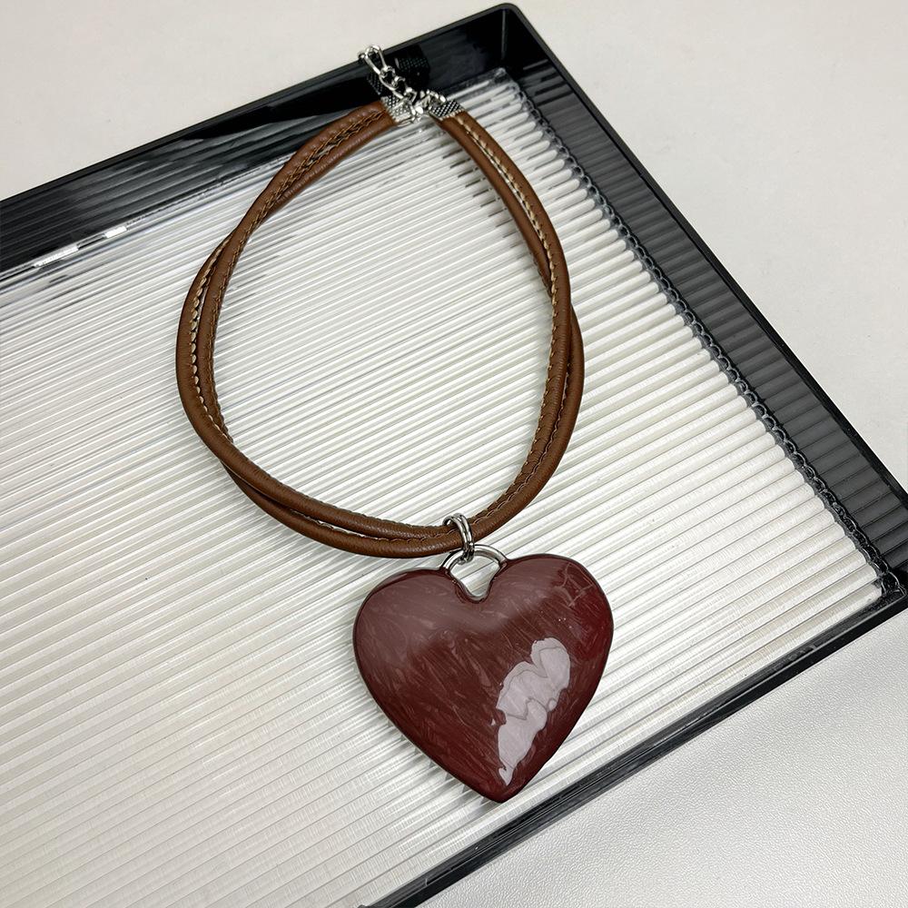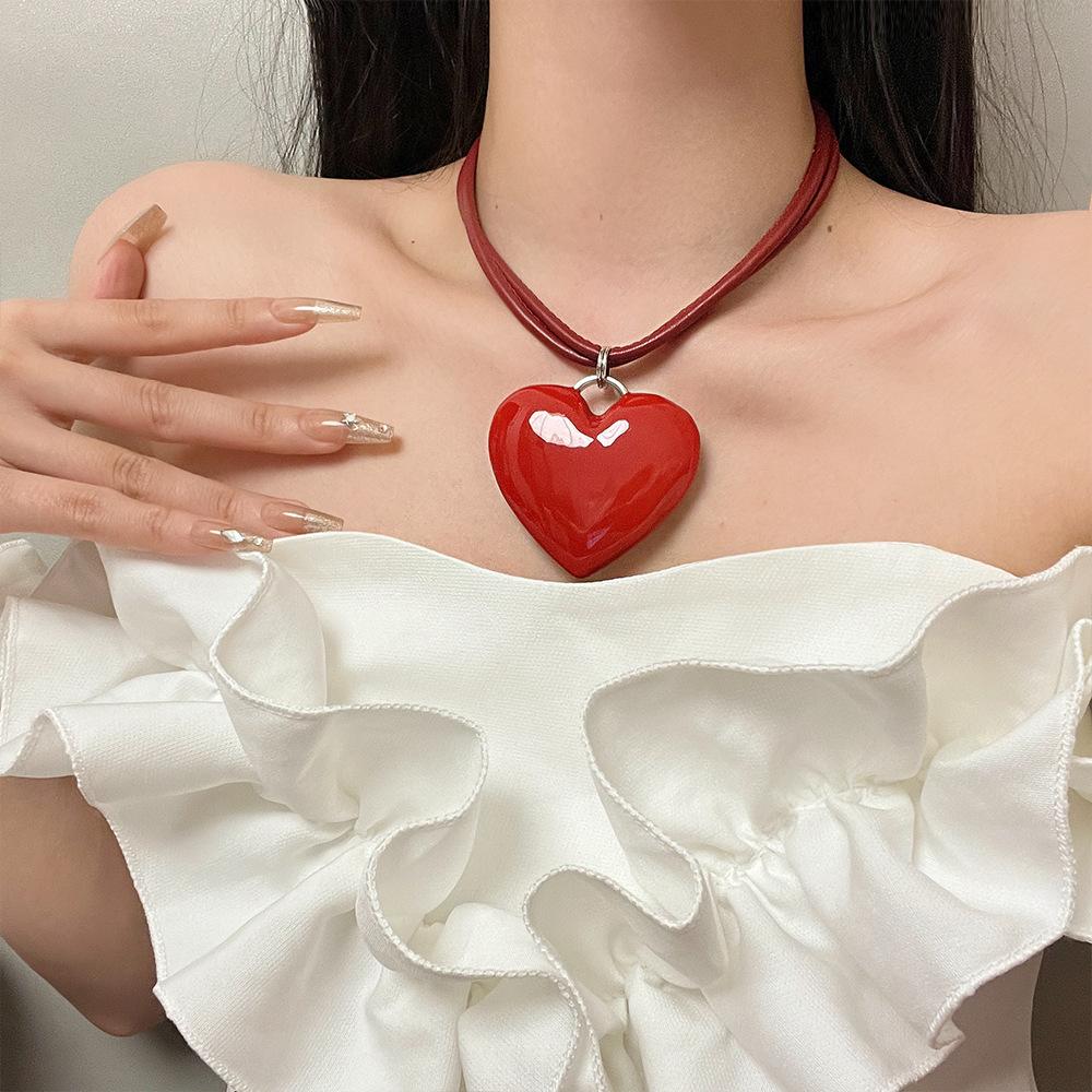 Collar de cuerda de cuero doble con doble corazón rojo exagerado retro para mujer, cadena de clavícula de alta gama, nuevo diseño