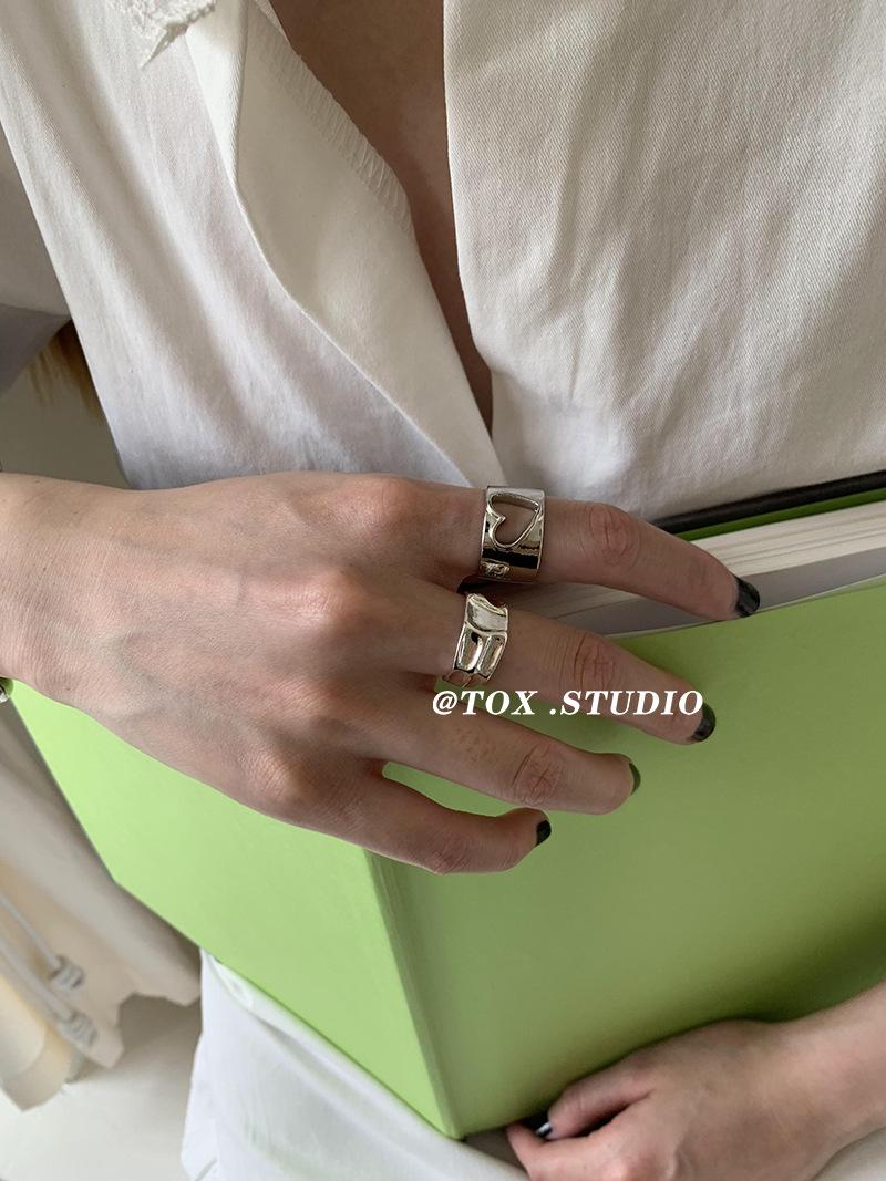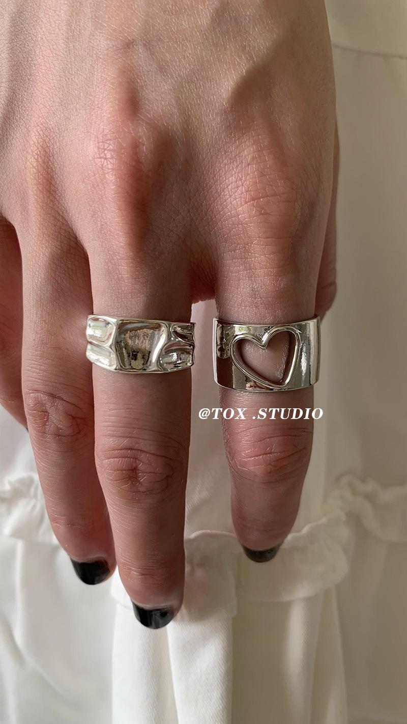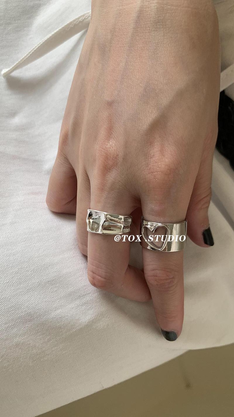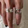 Anillo de Amor Dulce Cool Hueco Irregular para Mujer Geométrico de Ala Ancha Moda Personalidad Plata S925 Chapado Abierto Anillo de Comida Moderno