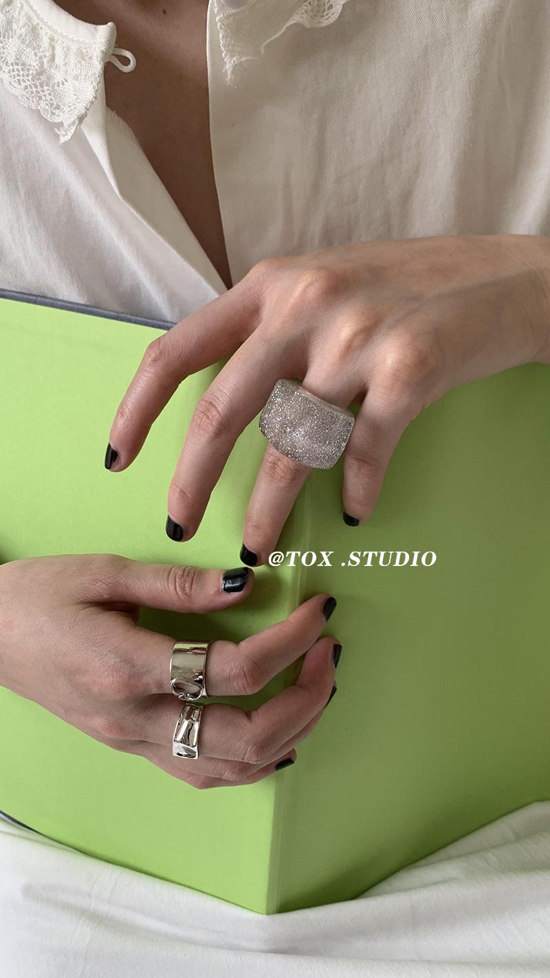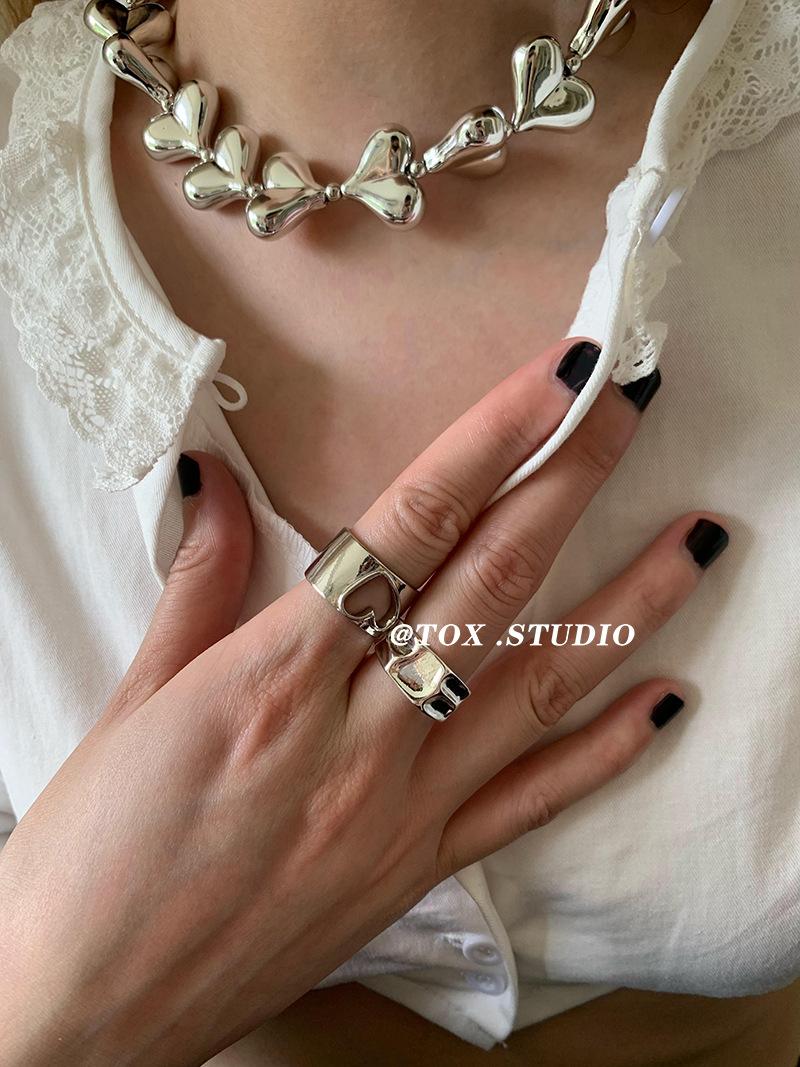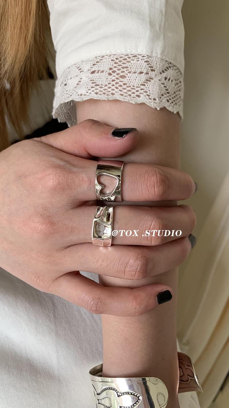 Anillo de Amor Dulce Cool Hueco Irregular para Mujer Geométrico de Ala Ancha Moda Personalidad Plata S925 Chapado Abierto Anillo de Comida Moderno