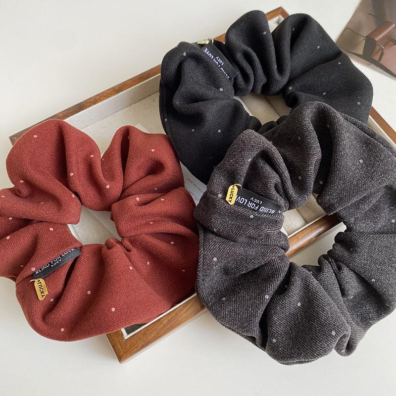 Coletero de satén retro francés con volantes para el pelo de intestino grueso, de terciopelo otoñal, de alta calidad, de felpa para mujer