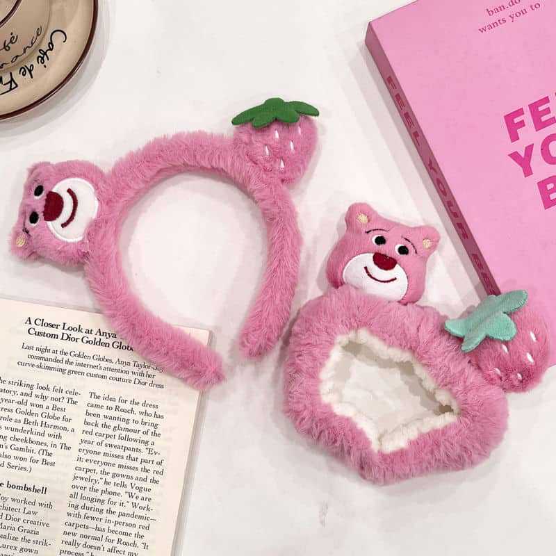 Banda para el cabello con forma de oso de peluche de fresa para celebrar en Internet, ideal para niñas, para otoño e invierno, para lavarse la cara, nuevo estilo, para aplicar mascarilla, combina con todo.
