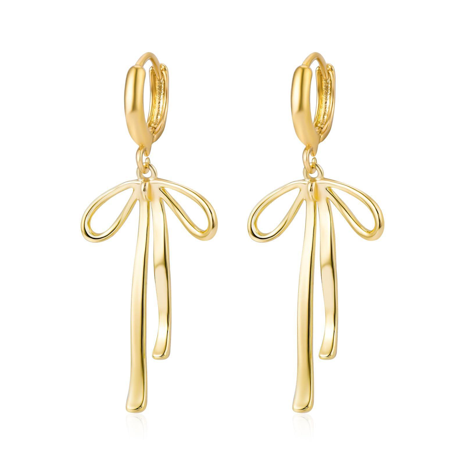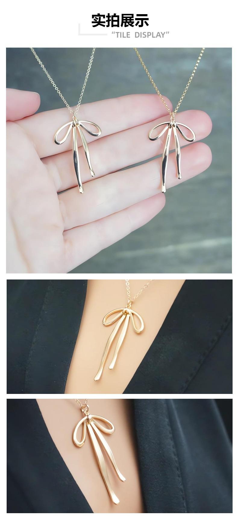 Collar con colgante de lazo de moda transfronterizo europeo y americano con baño de oro auténtico de latón