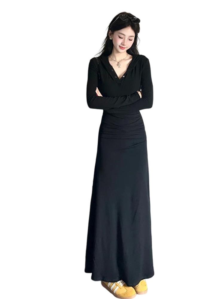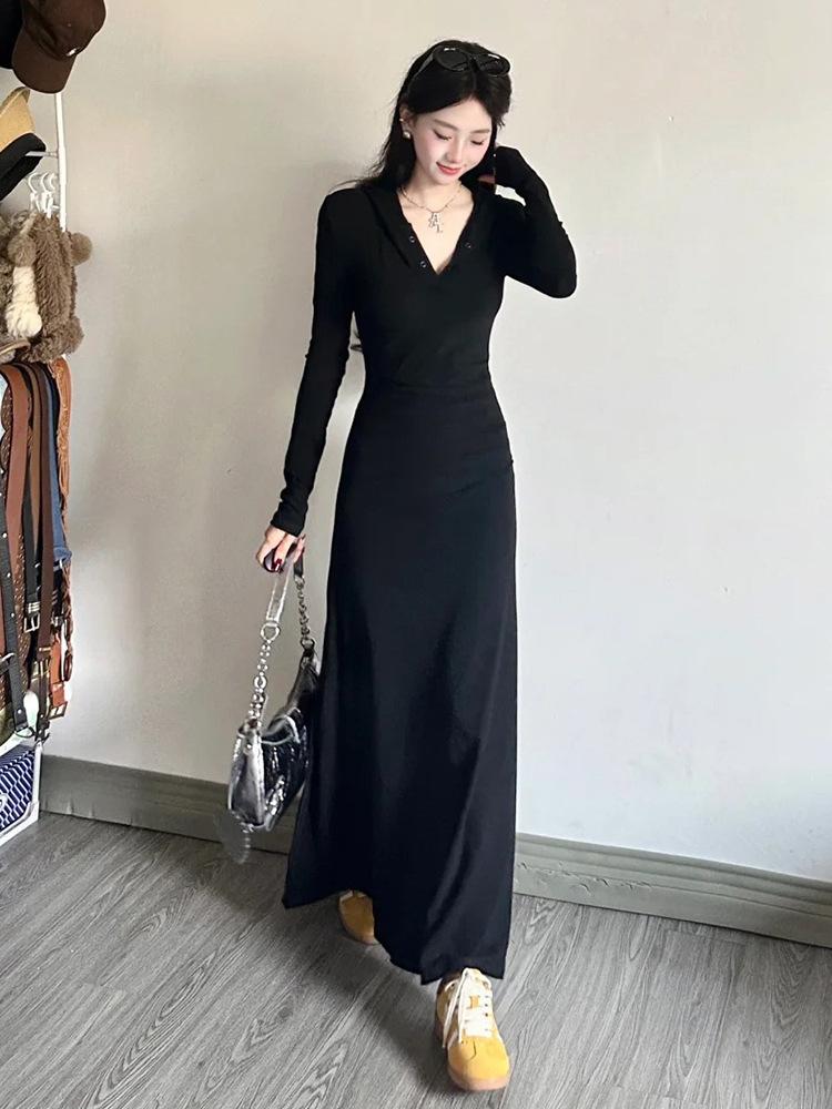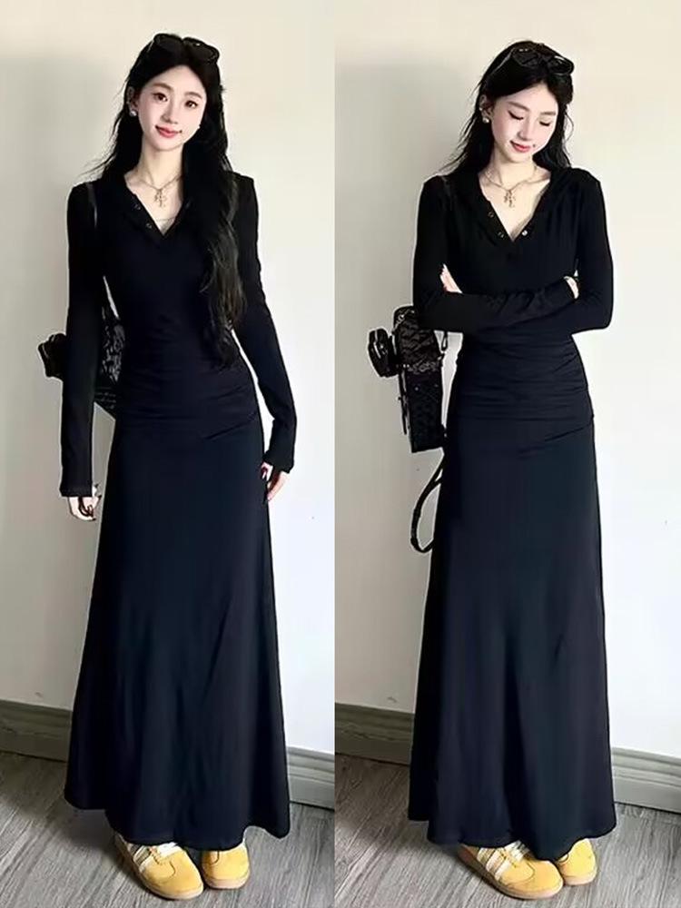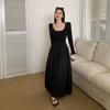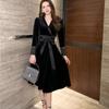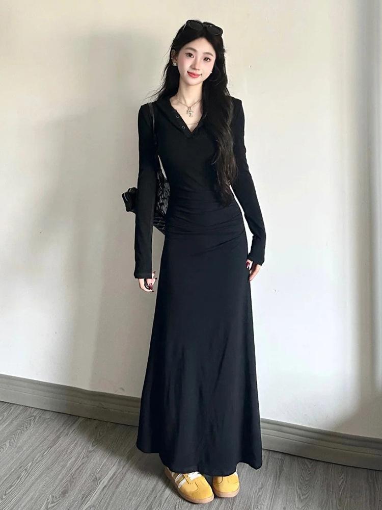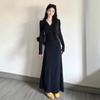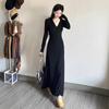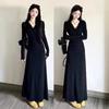 Vestido de manga larga estilo Hepburn negro de primavera y otoño para mujer, vestido elegante con escote en V y cadera de estilo francés transfronterizo coreano nuevo